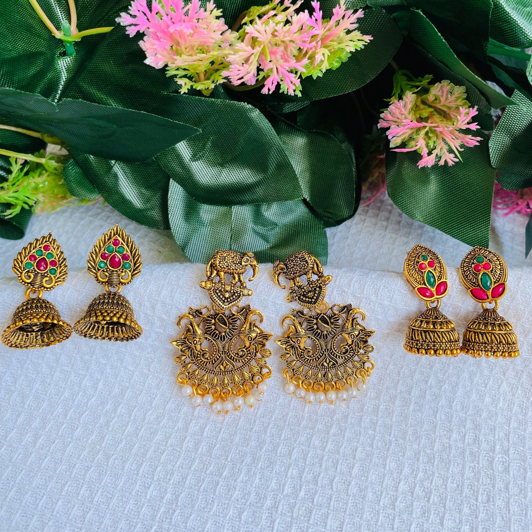 Elevate Your Ethnic Look With This Stunning Traditional Jhumka Earrings Set. Featuring Intricate Antique Gold Detailing, This Set Includes Earrings Adorned With Vibrant Pink And Green Stones, Along With Elegant Faux Pearls. Designed With A Timeless Charm, These Jhumkas Perfectly Blend Tradition And Sophistication, Making Them Ideal For Weddings, Festive Occasions, And Cultural Celebrations. Lightweight Yet Eye-Catching