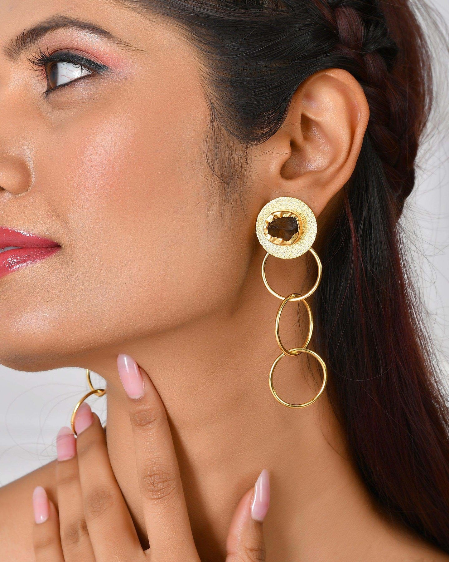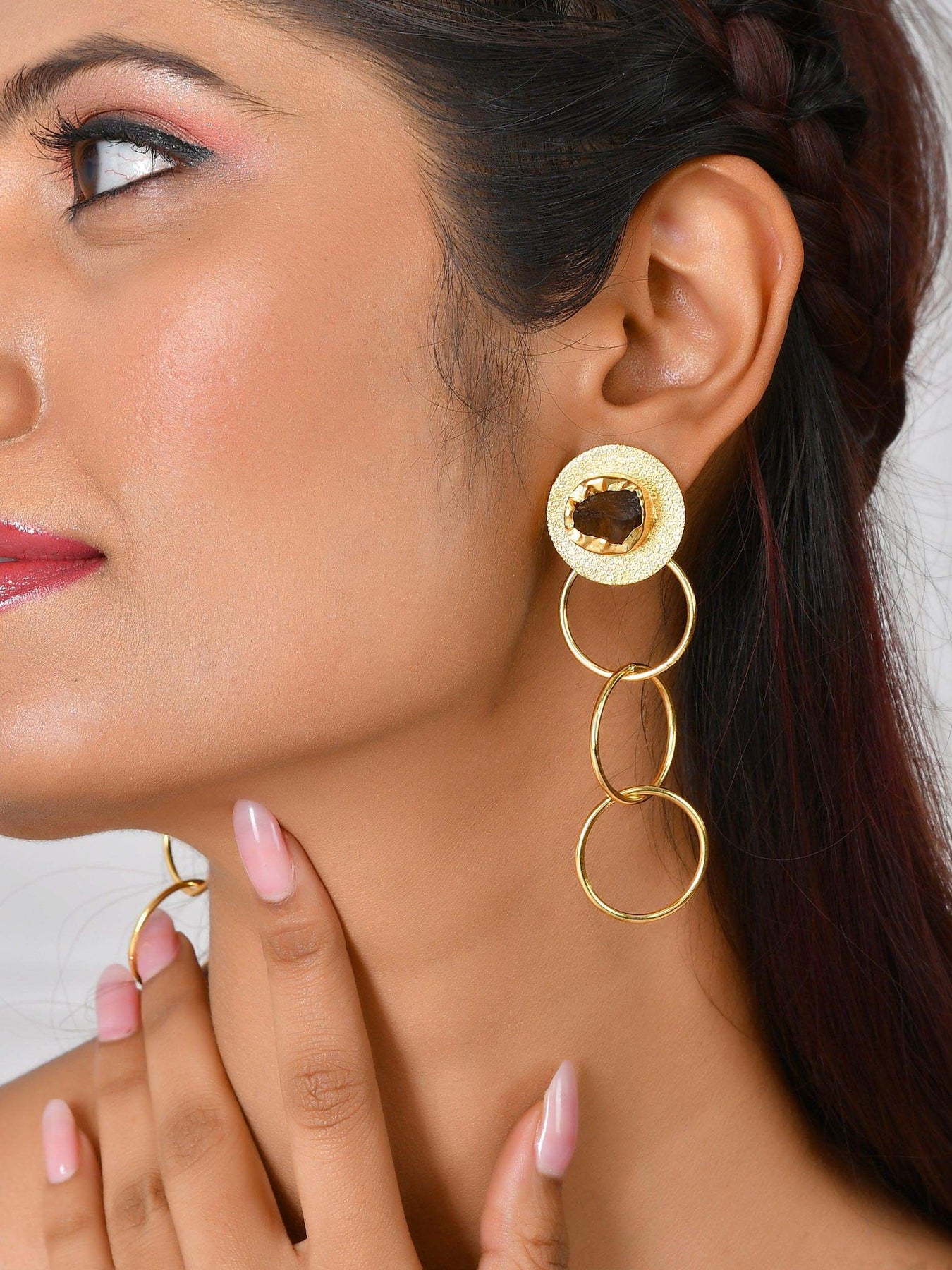 Overlapped Circle Stone Studded Earring