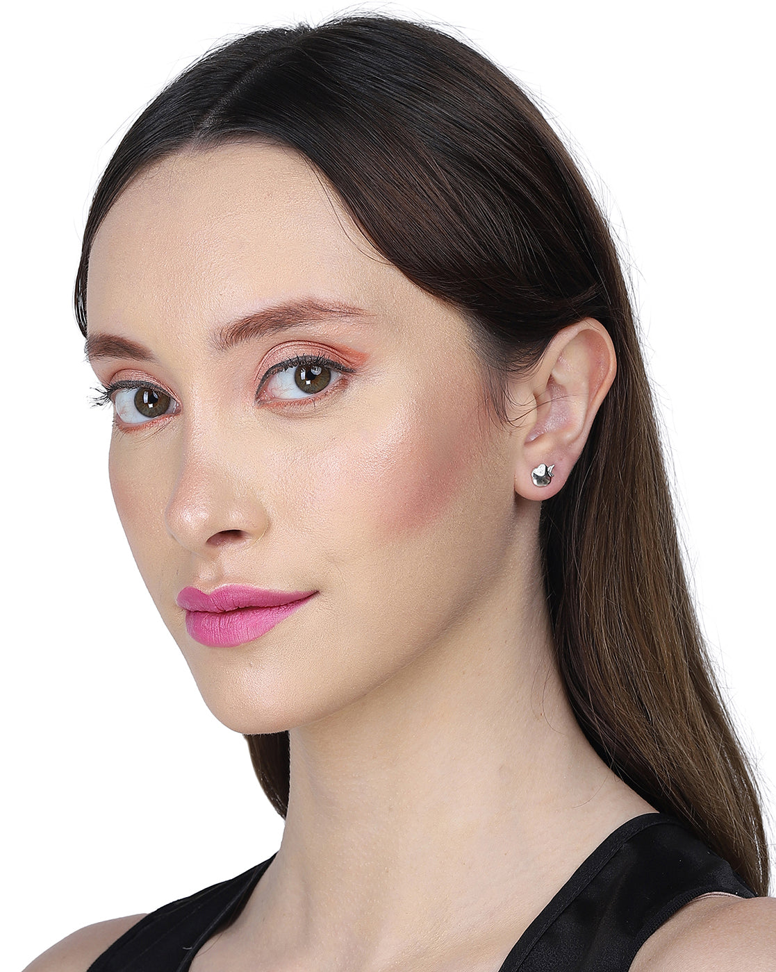 Women's 925 Sterling Silver Cz Studded Contemporary Studs With Silver Plating