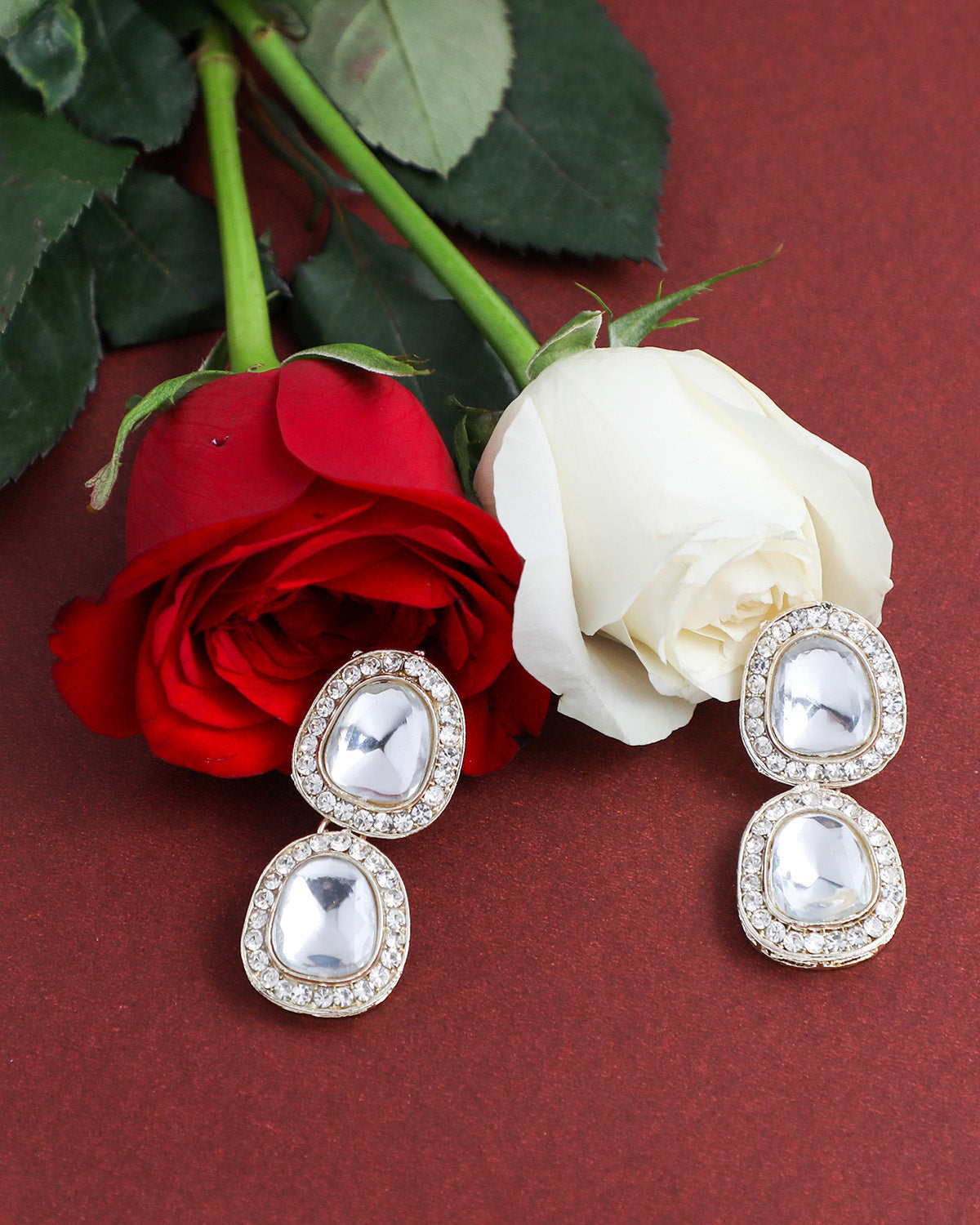 Introducing our exquisite Silver-Plated Stone Studded Earrings a captivating blend of sophistication and brilliance. Meticulously crafted with precision, these earrings feature a timeless design adorned with carefully chosen stones that add a touch of glamour to your ensemble. The silver-plated setting provides a sleek and elegant backdrop, enhancing the overall allure of the earrings. The combination of stones and silver plating makes these earrings a versatile accessory for various occasions.