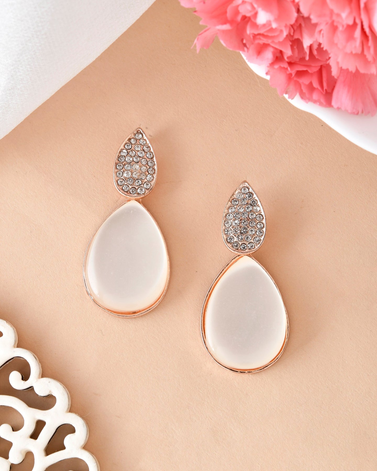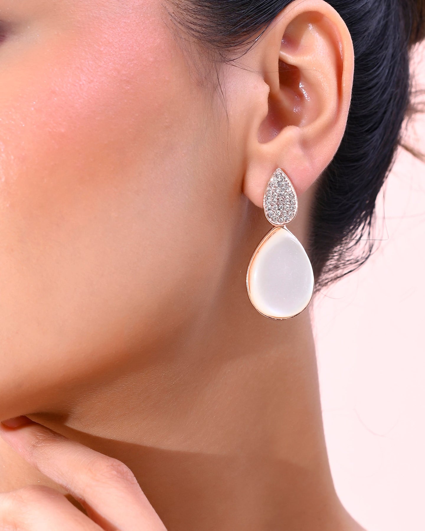 Women's Gold Plated Cz-Studded Korean Drop Earrings