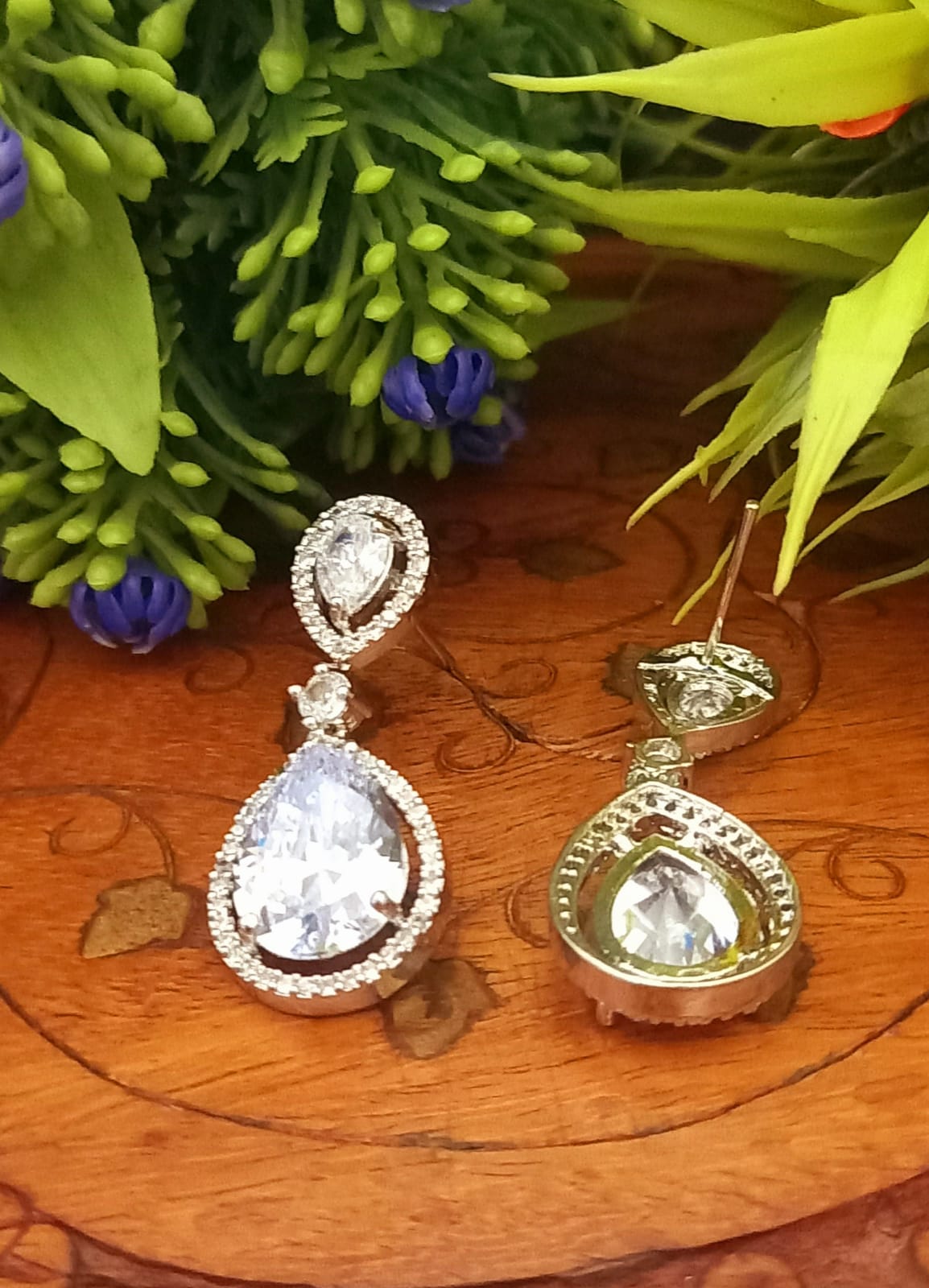 Women's White Colour Indian Jewellery American Diamond White Polish Earrings Danglers With Shiny Cut Stone