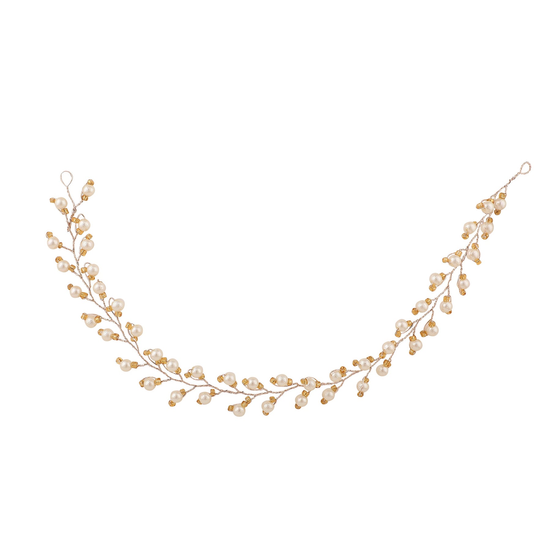 Women's Statement Gold Plated Leaf Design Peal Studded Foldable Hair Accessory