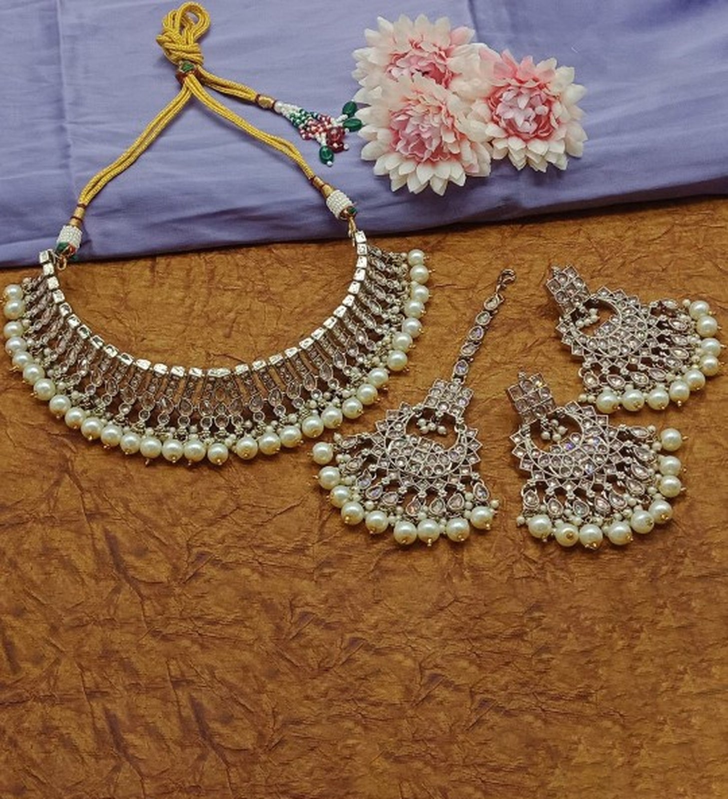 Elevate Your Ethnic Ensemble With This Stunning Indian Jewelry Set Featuring A Choker Necklace And Matching Earrings. This Exquisite Set Combines Traditional Craftsmanship With Timeless Elegance, Perfect For Weddings, Festivals, And Special Occasions.
