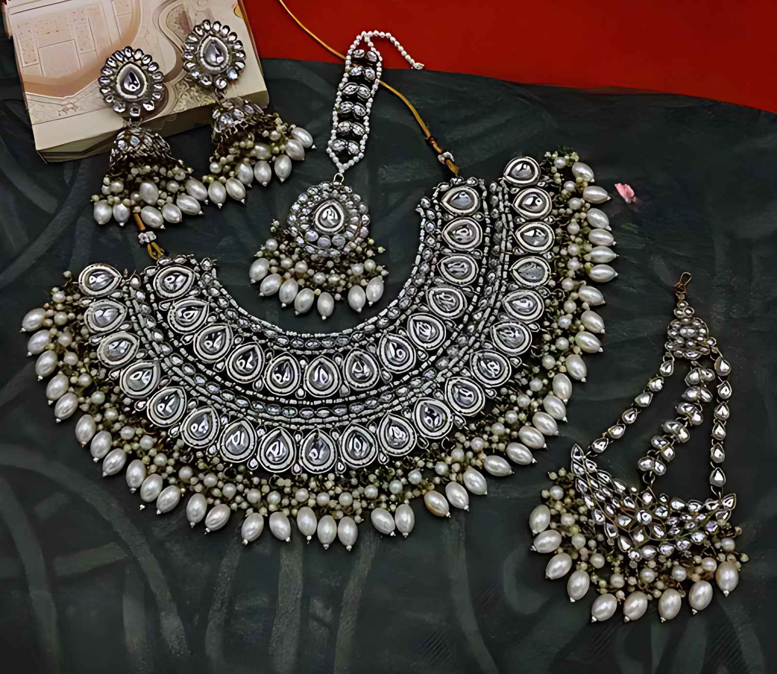 Pack Contains :1 Necklace/1 Pair Of Earrings/1 Mangtikka/ 1 Hair Accessoary
