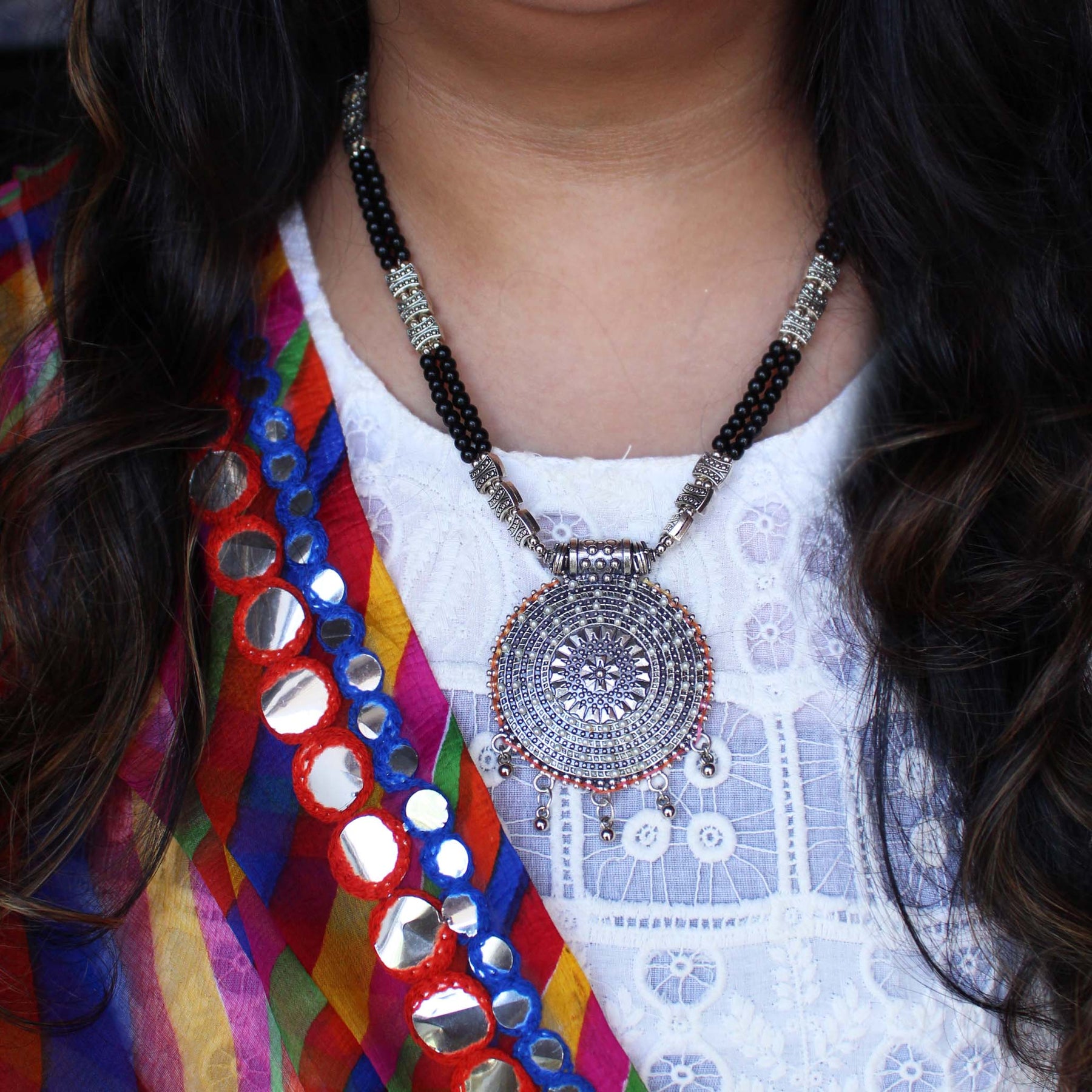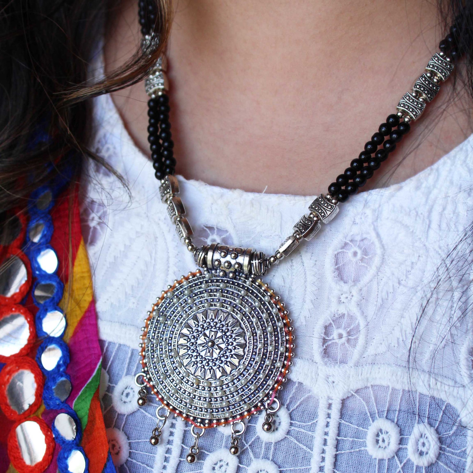 This Necklace Features A Stunningly Detailed Design Based On The Ancient Dana Chakra Symbol. It Is A Unique Piece That Is Sure To Make A Statement.