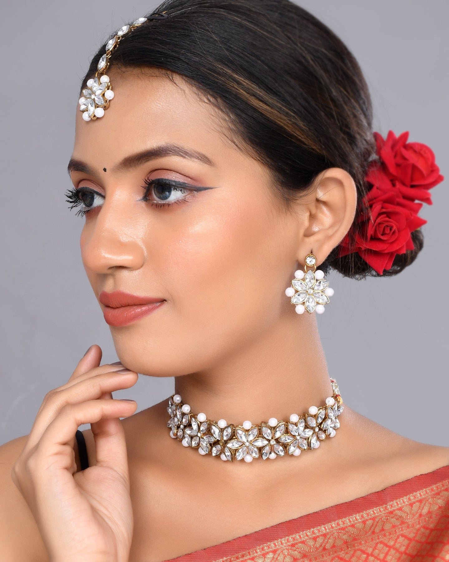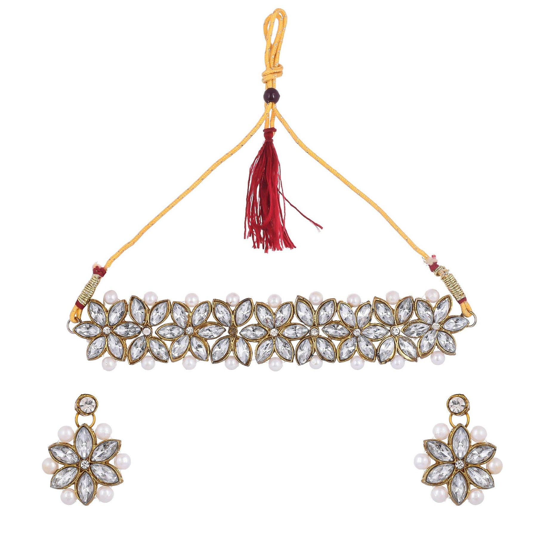 Women's Shine Beads Ethnic Neck Chick Set With Earring