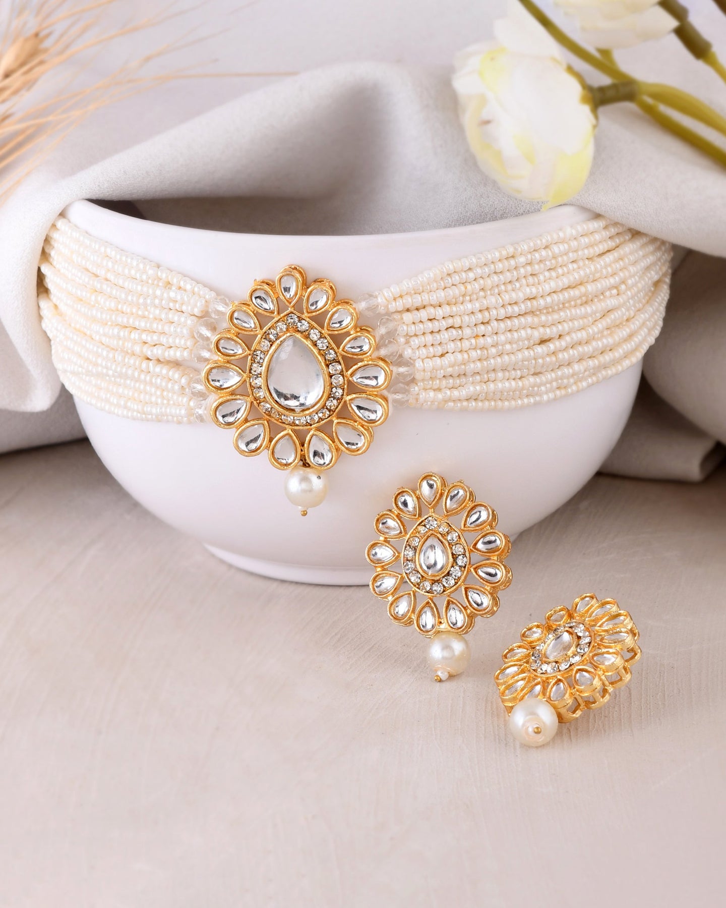 This handmade layered necklace set comes with two pretty matching pairs of designer earrings for women.