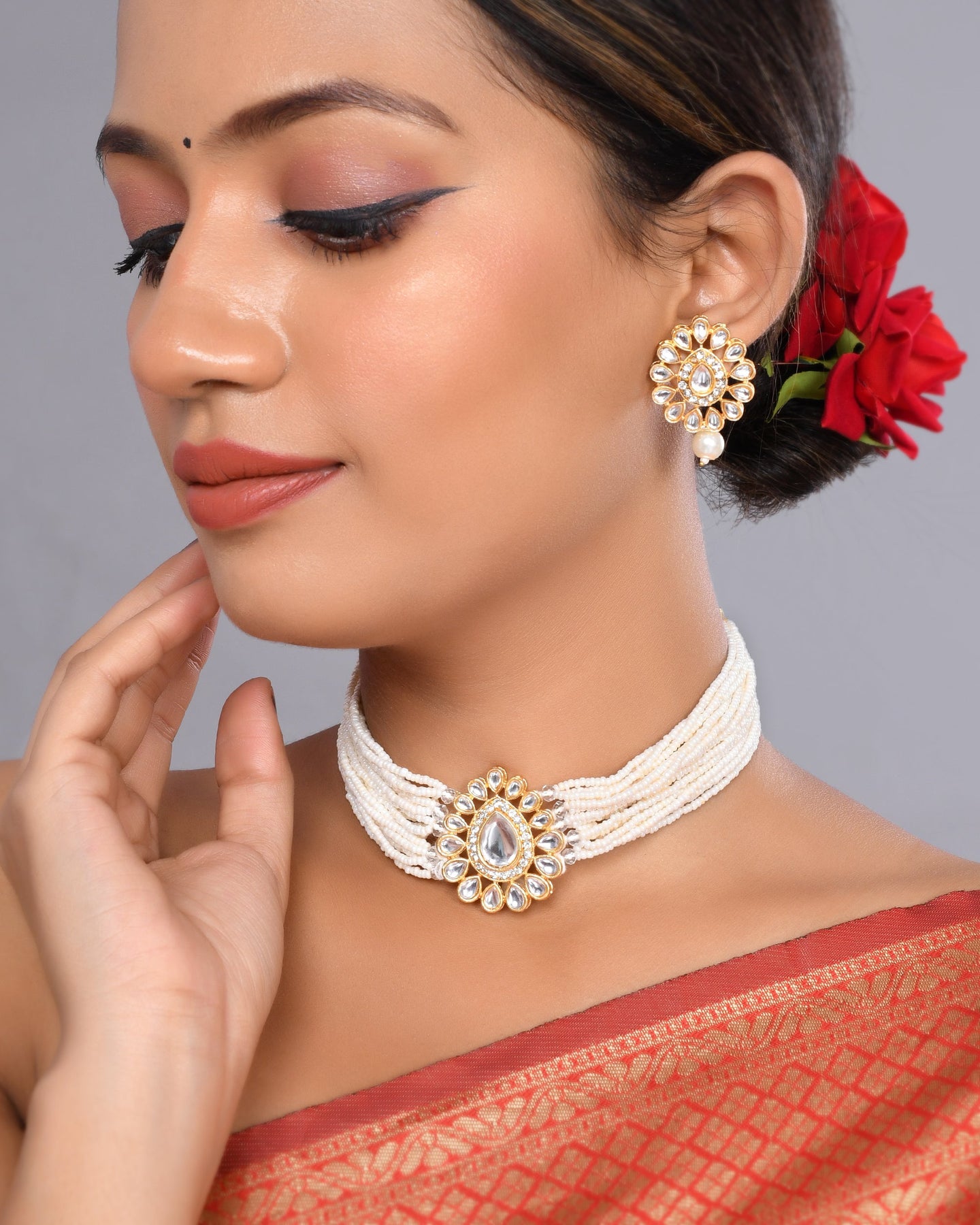 This Chick set with earrings for women is made of Stone beads and silken thread, which is durable and long-lasting.