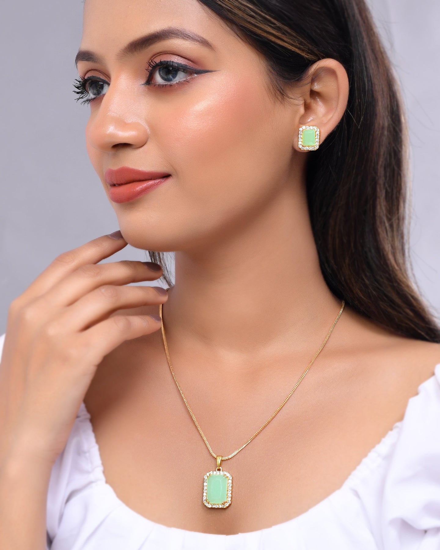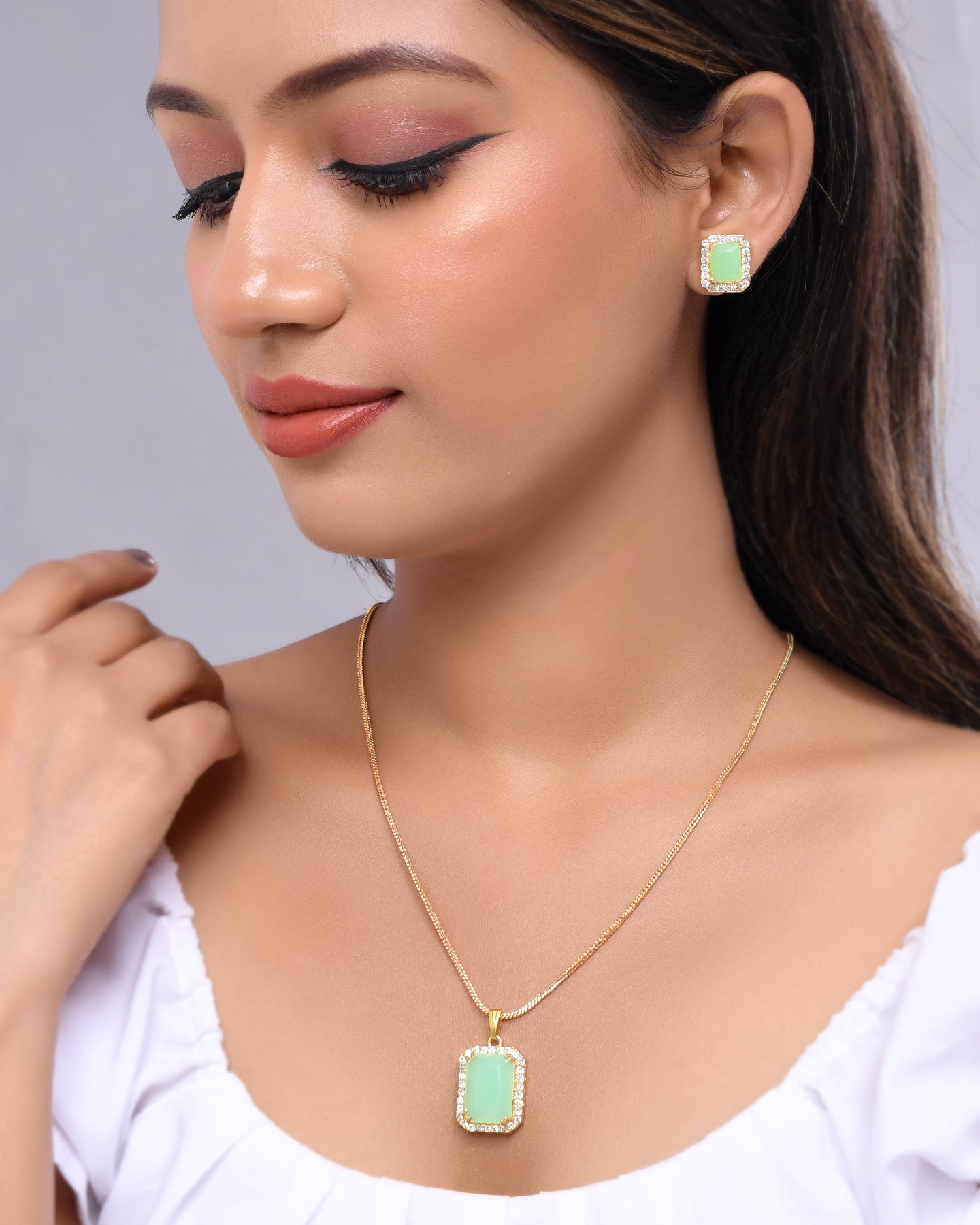 This Pandent Set With Earrings For Women Is Made Of Stone Beads Which Is Durable And Long-Lasting.
