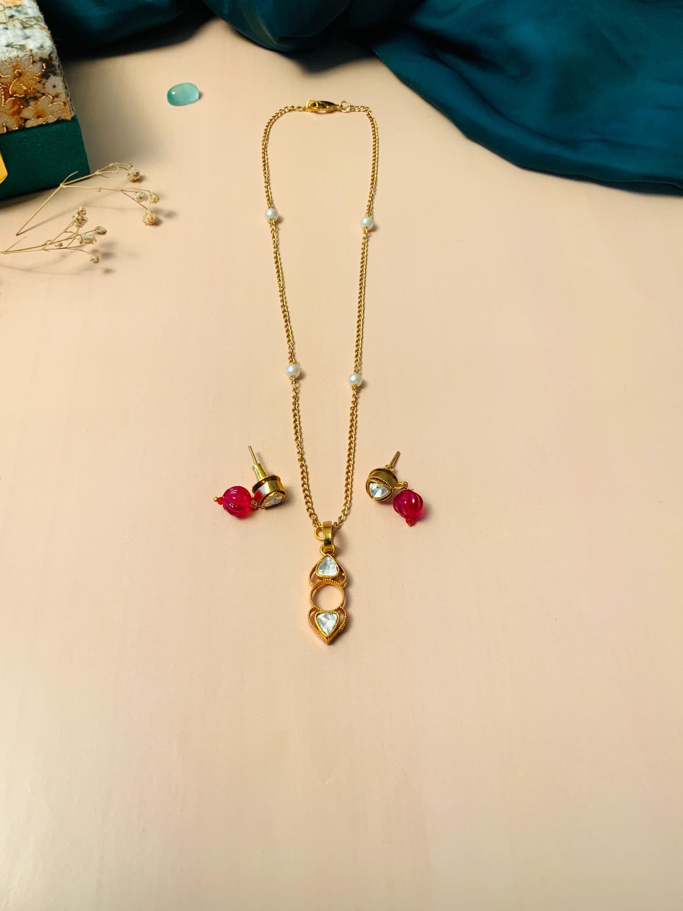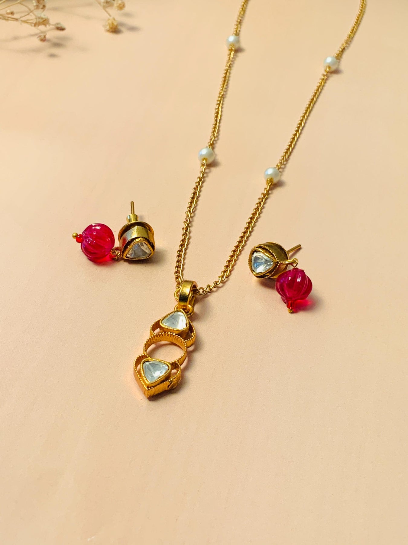 Women's Stunning Gold Plated Polki Pendant Set