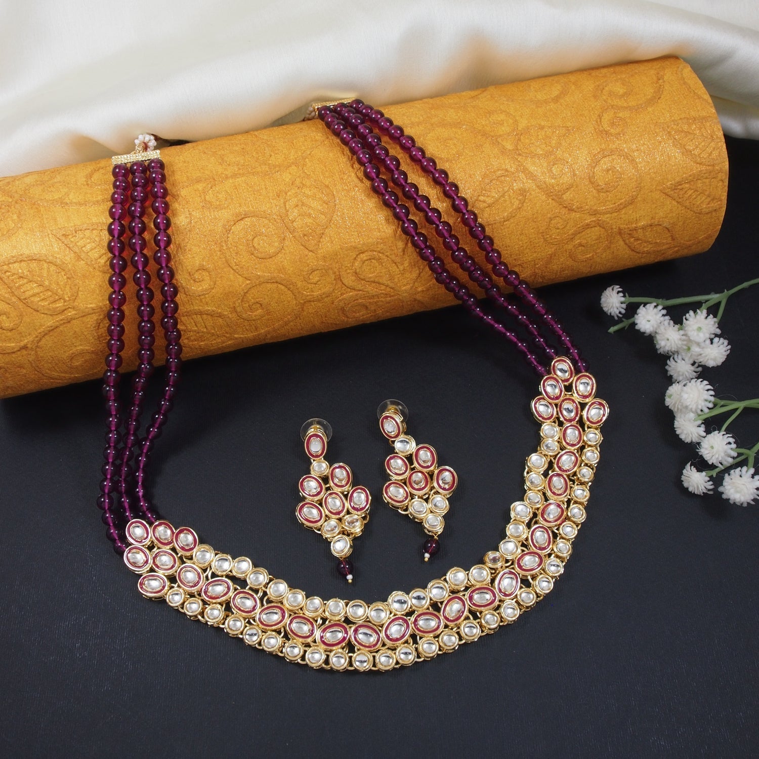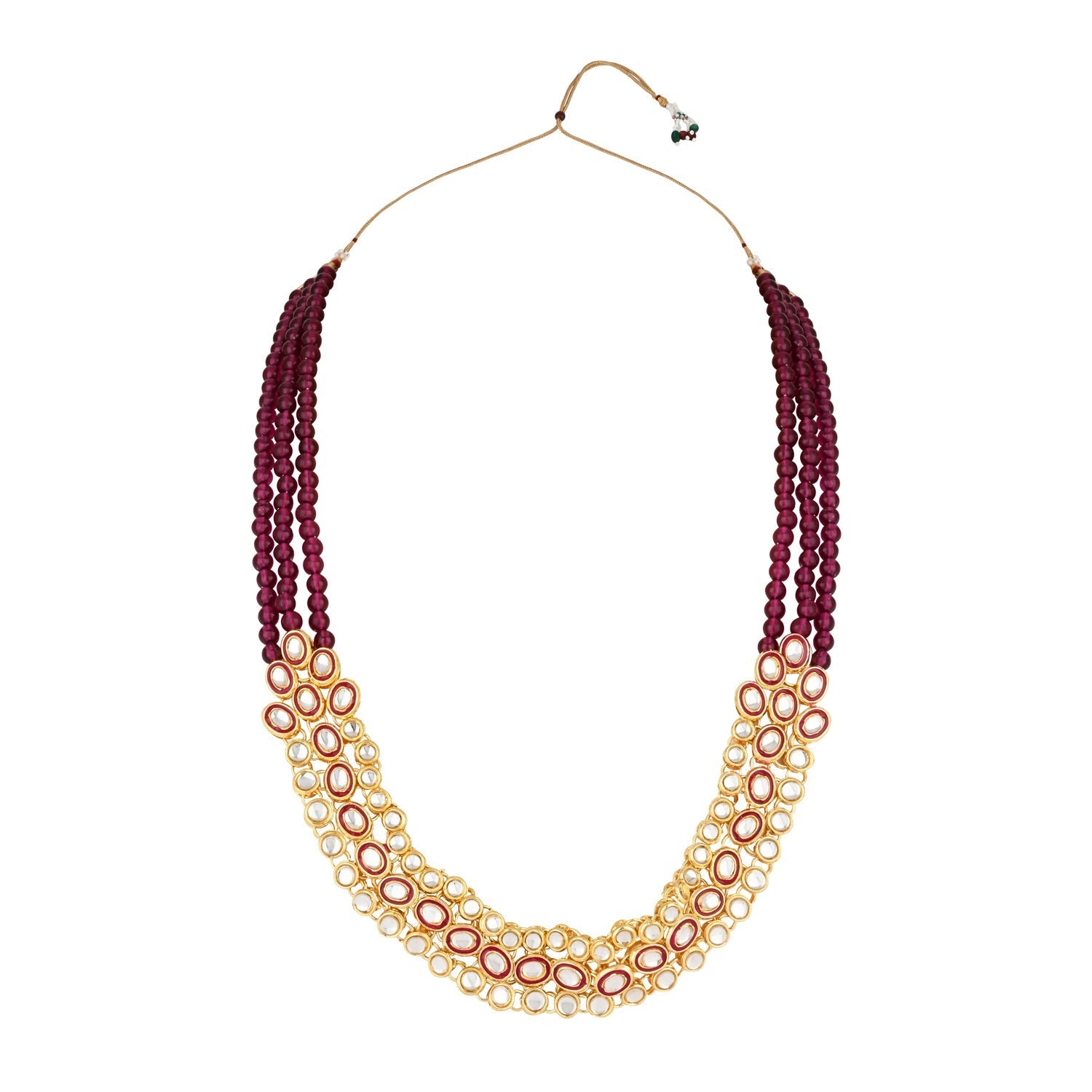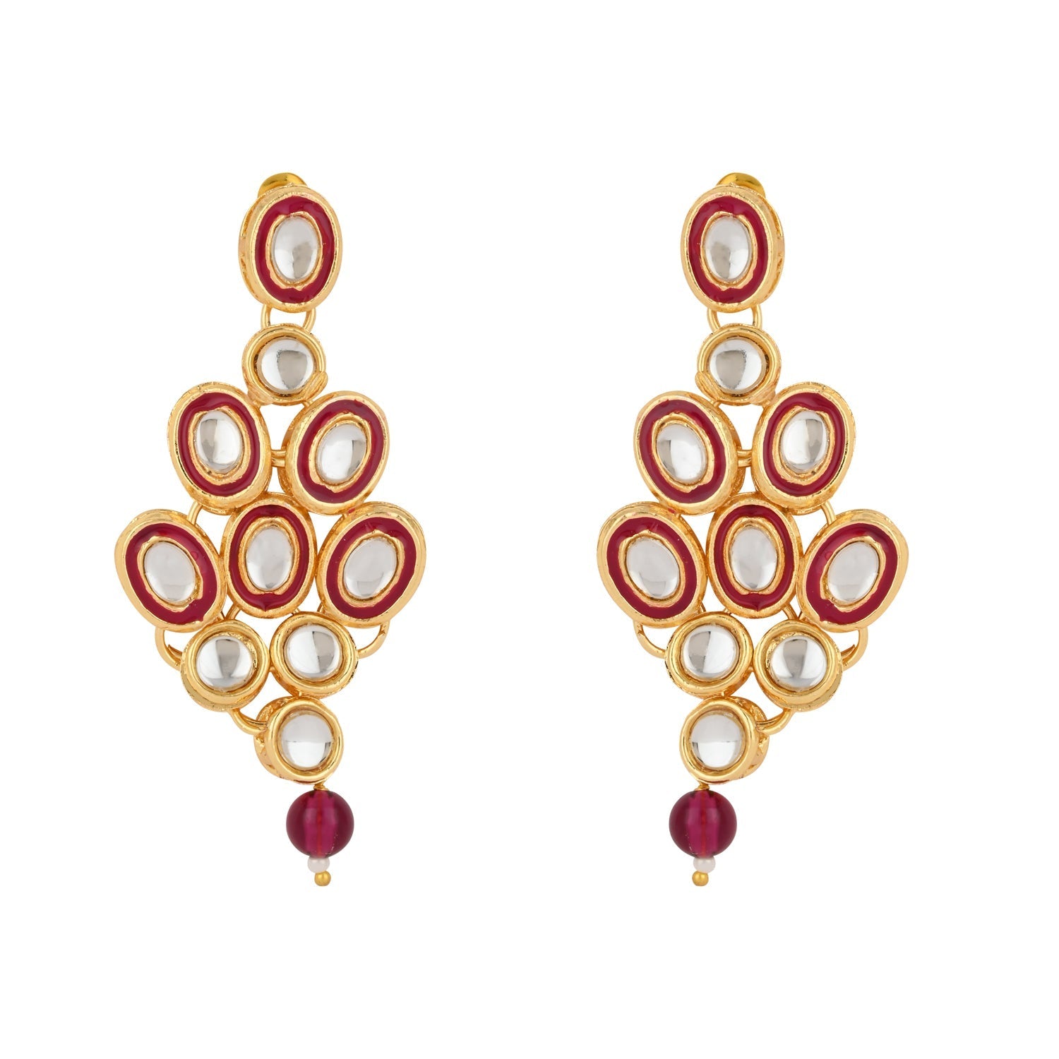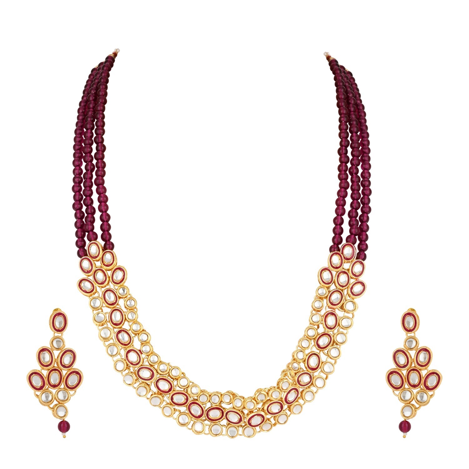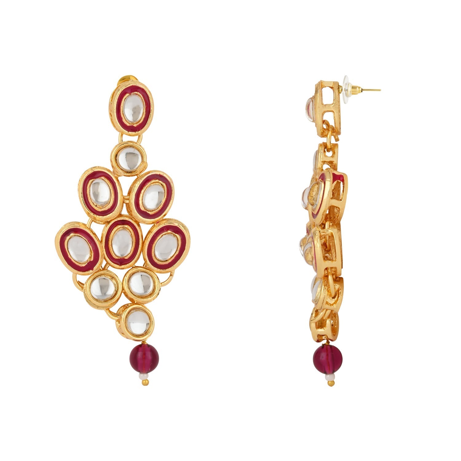The I Jewels 18K Gold Plated Traditional Stunning Meenakari Kundan Studded Pearl Necklace Jewellery Set with Earrings is a beautiful and traditional accessory designed for women and girls. The set includes a pearl necklace and a pair of matching earrings, all plated in 18K gold for a luxurious look. The necklace features meenakari work with kundan studded in the center, which adds a touch of glamour and sophistication to the piece. The pearls are strung together on a gold-plated chain, providing a classic and timeless look. The earrings are also studded with kundan, complementing the necklace perfectly. This set is perfect for traditional occasions such as weddings, festivals, and other cultural events. It adds a touch of elegance to any traditional outfit, making the wearer stand out in a crowd. The high-quality materials and traditional design make this set a valuable addition to any jewelry collection.
