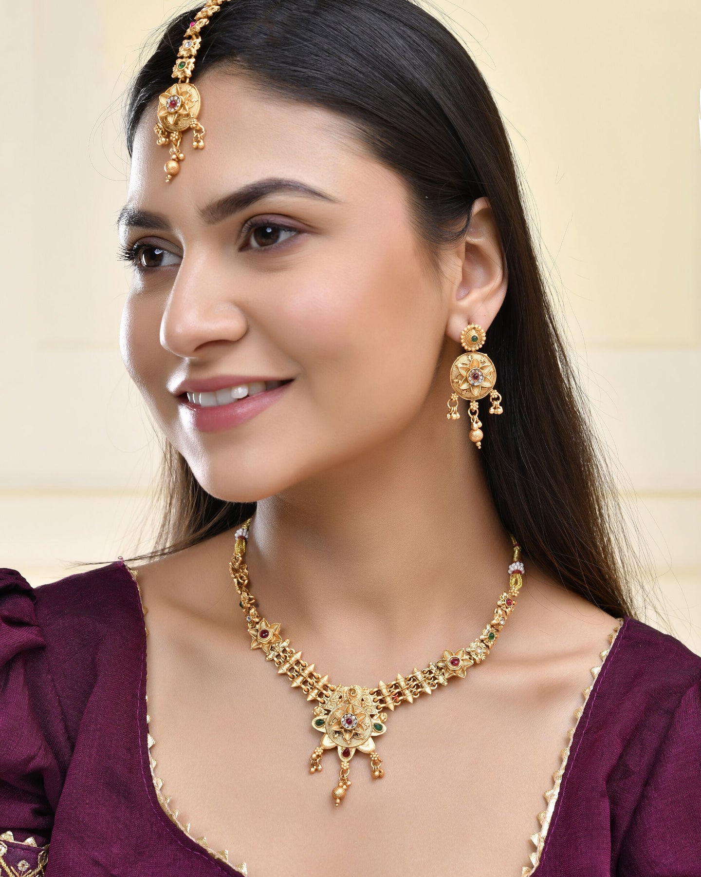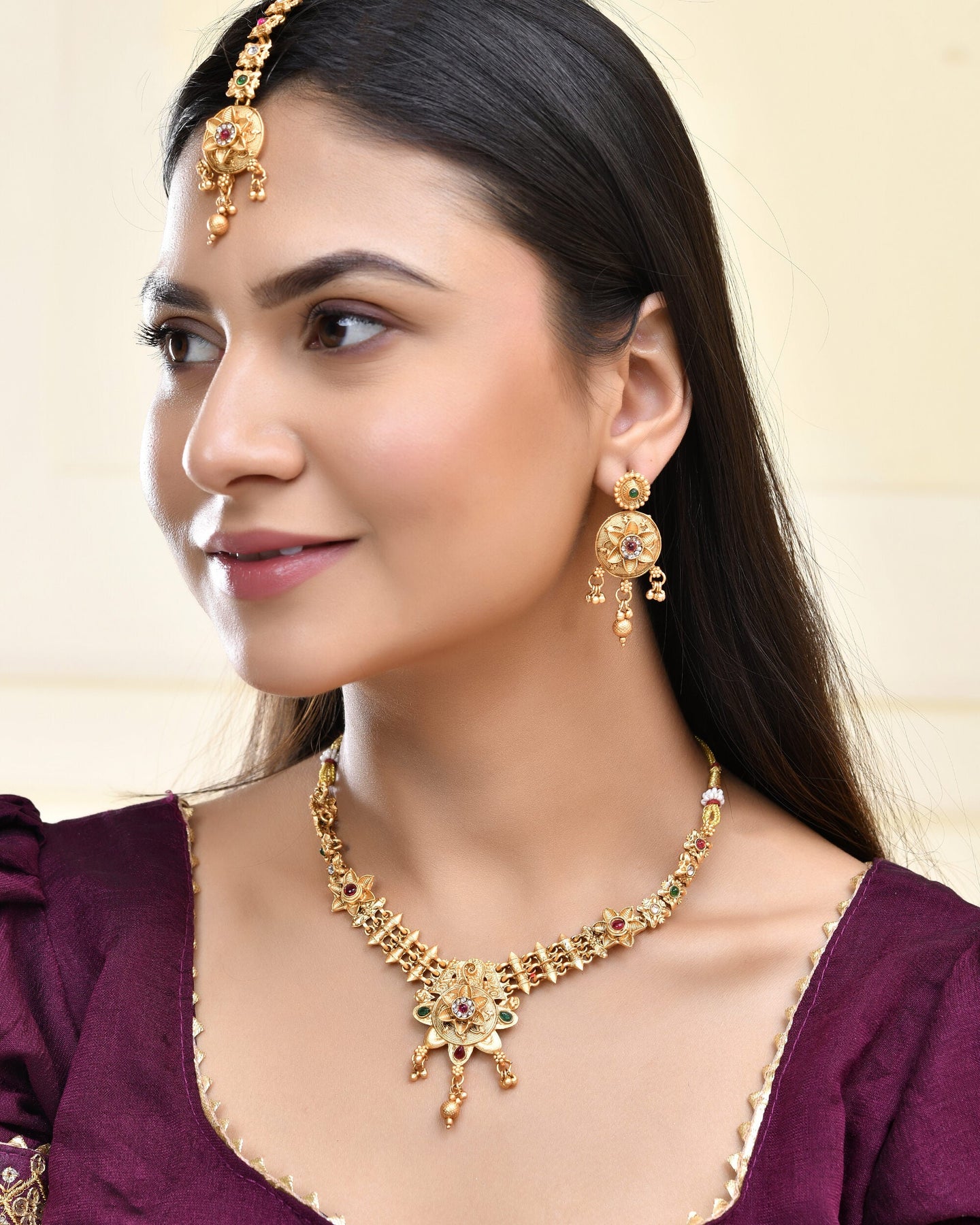 Pack Contains :1 Necklace And 2 Earrings And 1 Mangtika