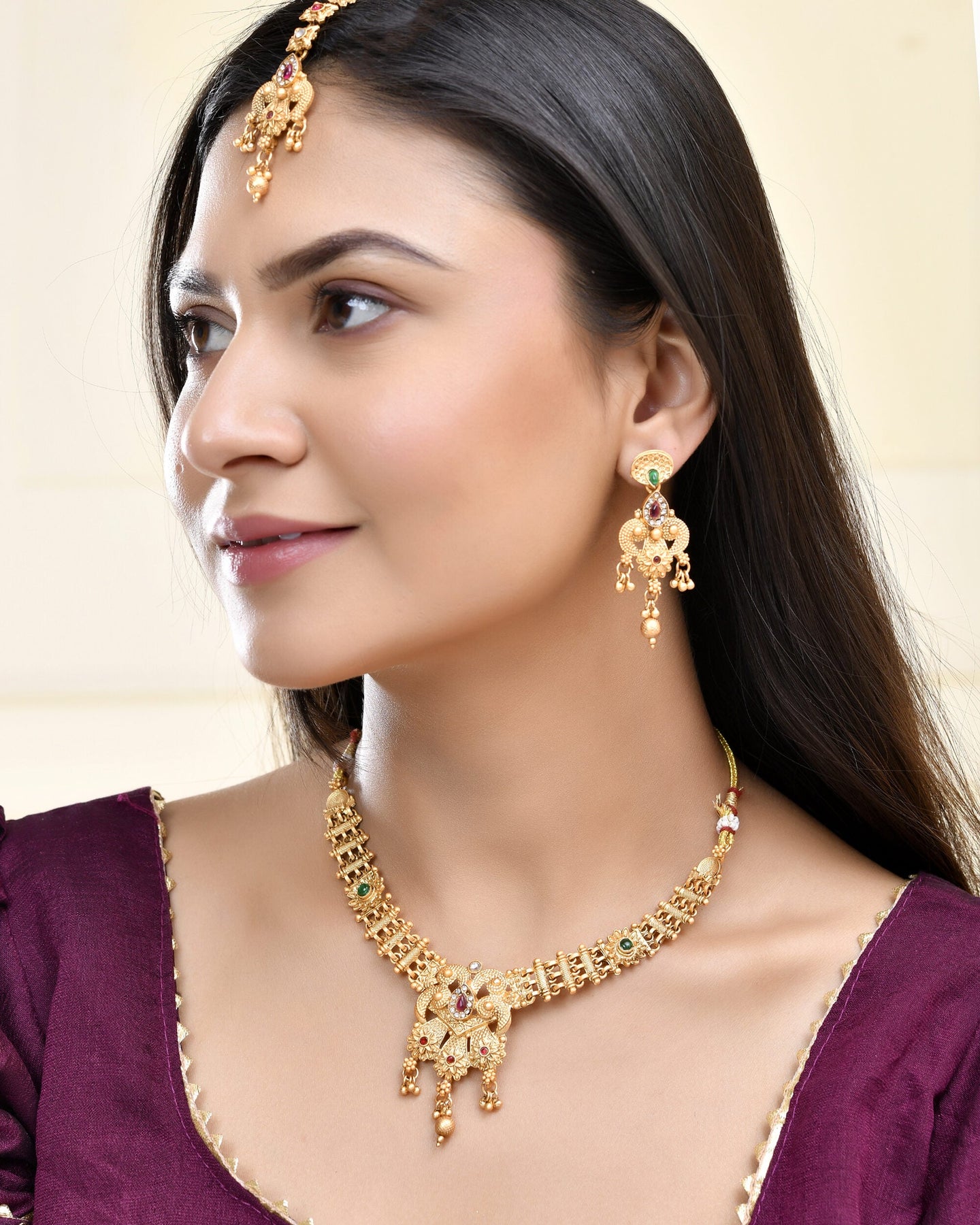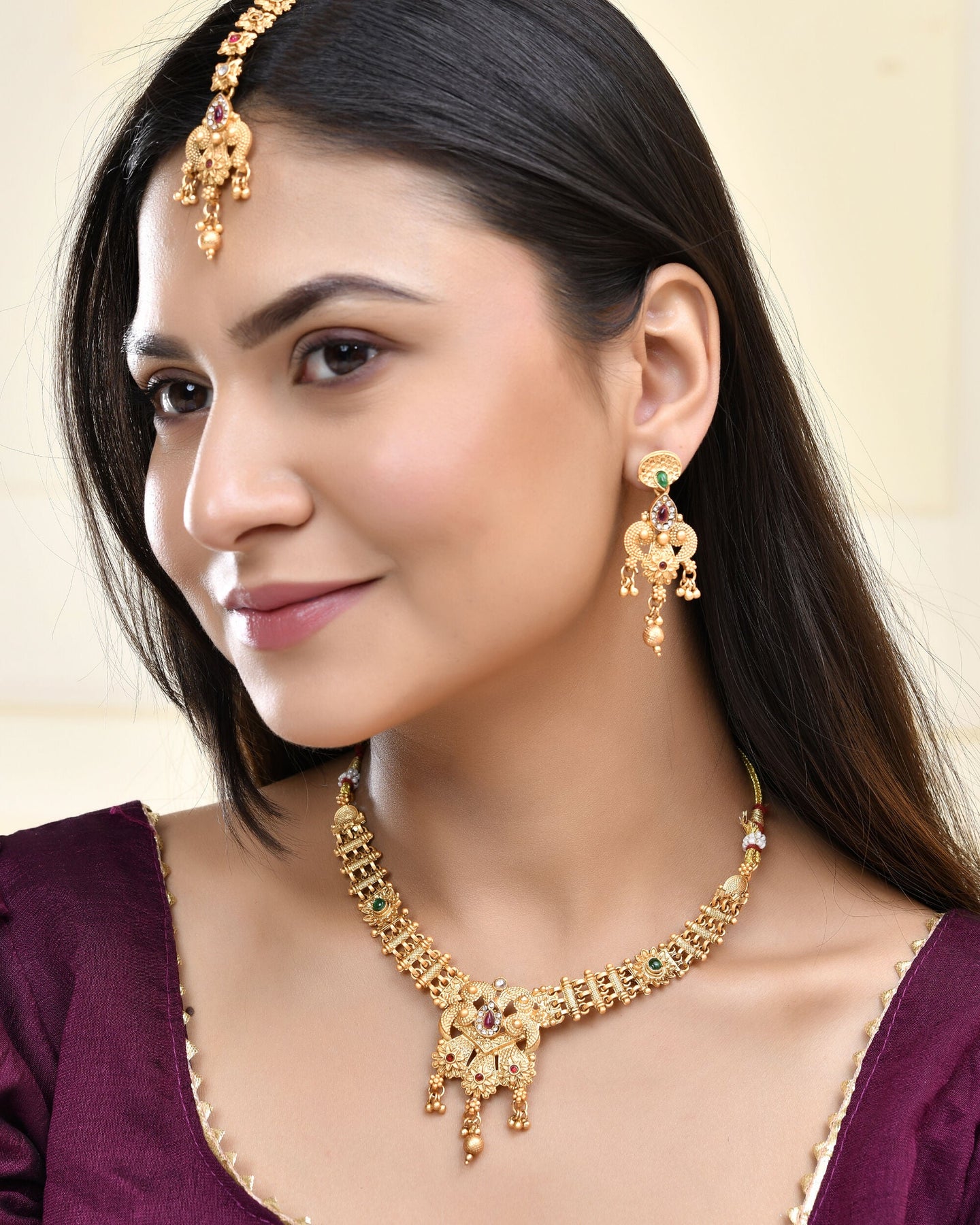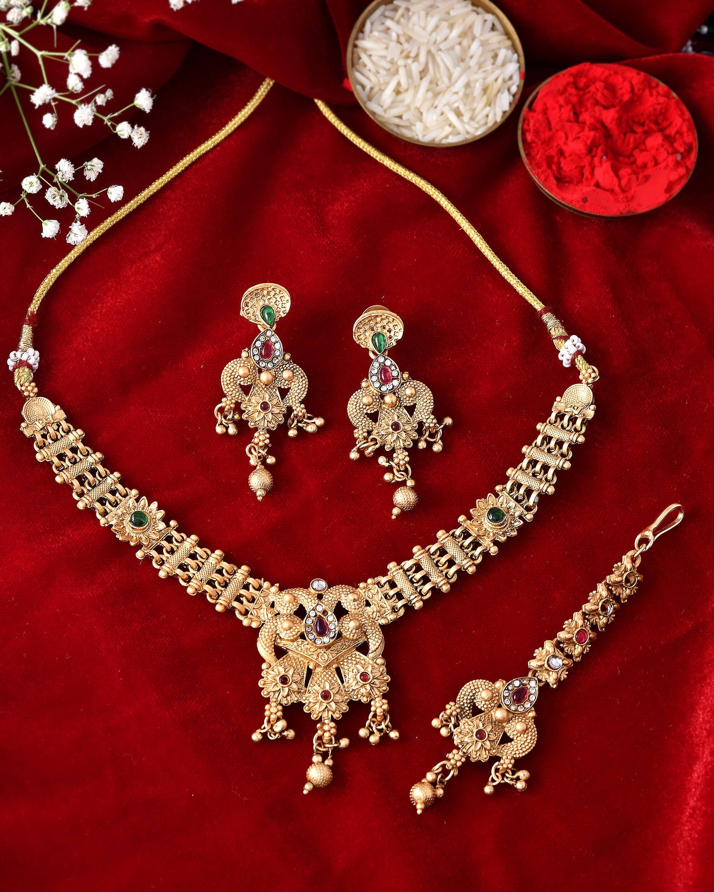 Pack Contains :1 Necklace And 2 Earrings And 1 Mangtika