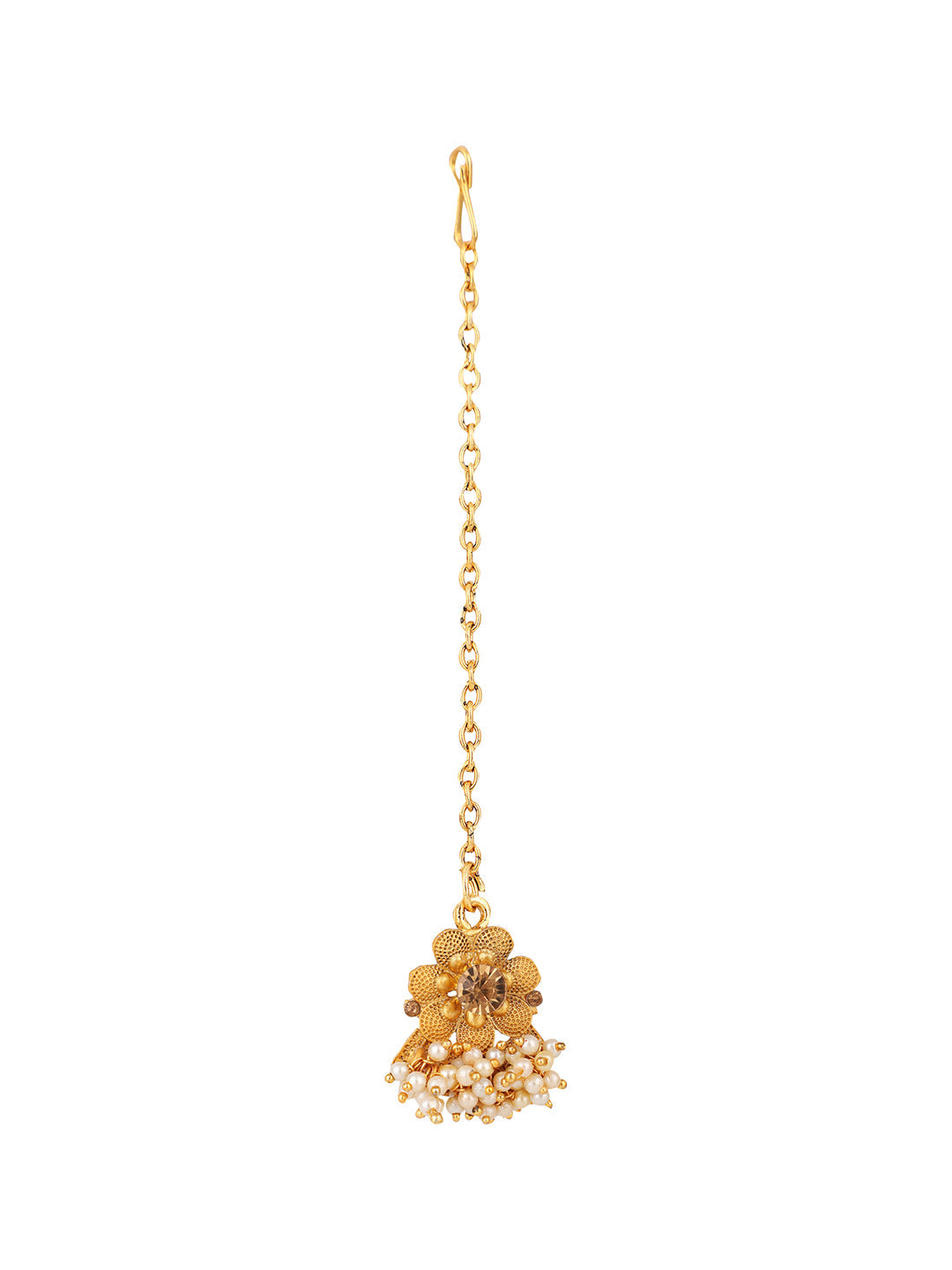 Designer Gold Plated Traditional Matte Finish Necklace With Earring Maangtika