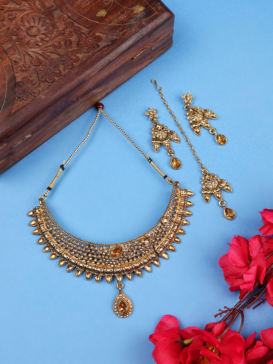 Pack Contains :1 Necklace, 2 Earrings And 1 Maangtika