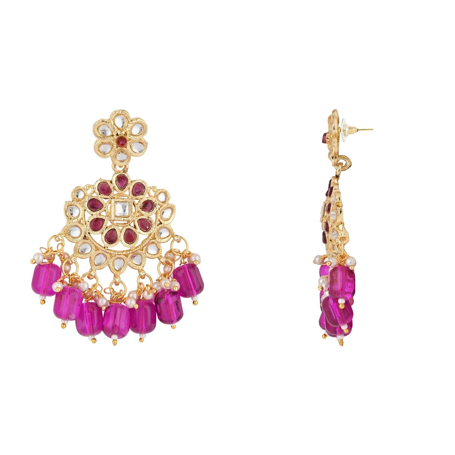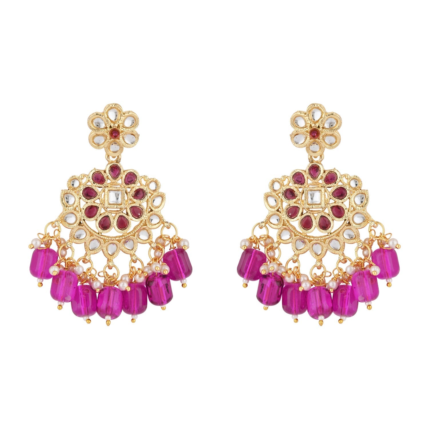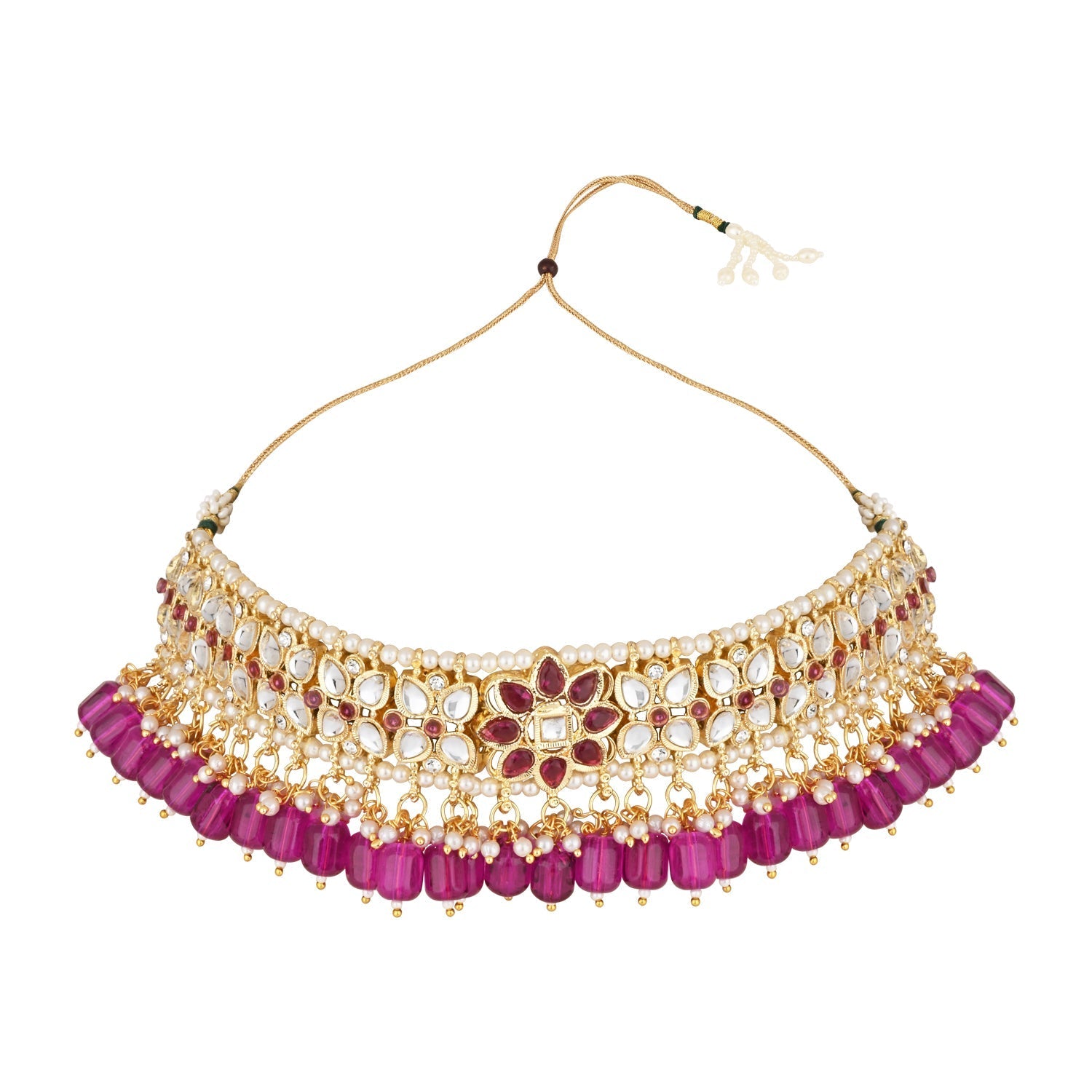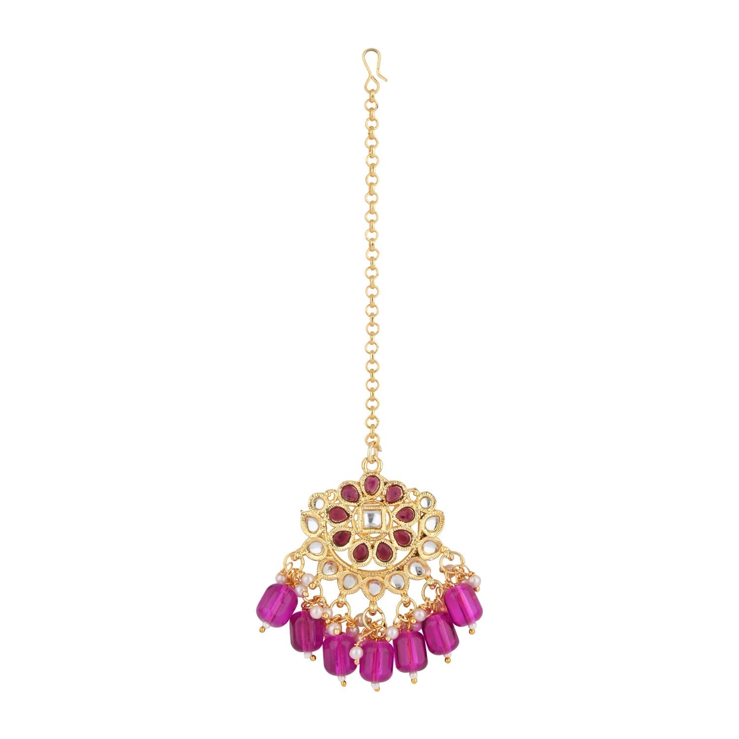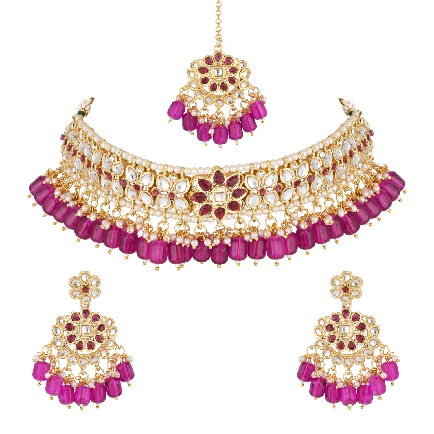 This exquisite traditional Pearl Kundan studded choker necklace set by I Jewels is the perfect addition to your jewelry collection. Plated in 18k gold, the set features a stunning choker necklace, matching earrings, and a maang tikka, all adorned with intricate Pearl and Kundan work. The timeless design and attention to detail make this set a must-have for any formal event or occasion. The high-quality materials and expert craftsmanship ensure that this set will last for years to come, making it a great investment for any jewelry collection. Whether you're a bride-to-be or simply looking to add some glamour to your wardrobe, this necklace set is sure to turn heads. Give yourself or a loved one the gift of timeless beauty with this exquisite jewelry set.