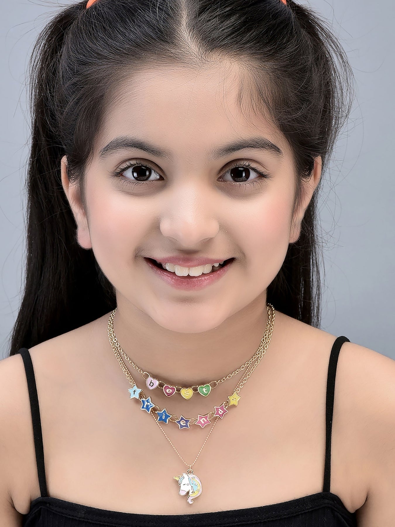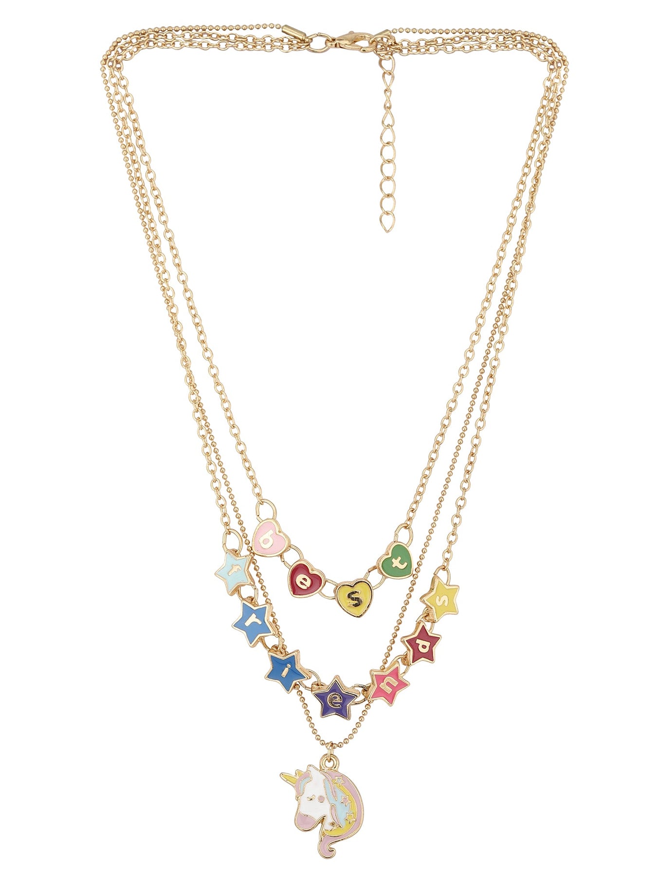 Carlton London Girls Multicoloured Gold-Plated Layered Necklace