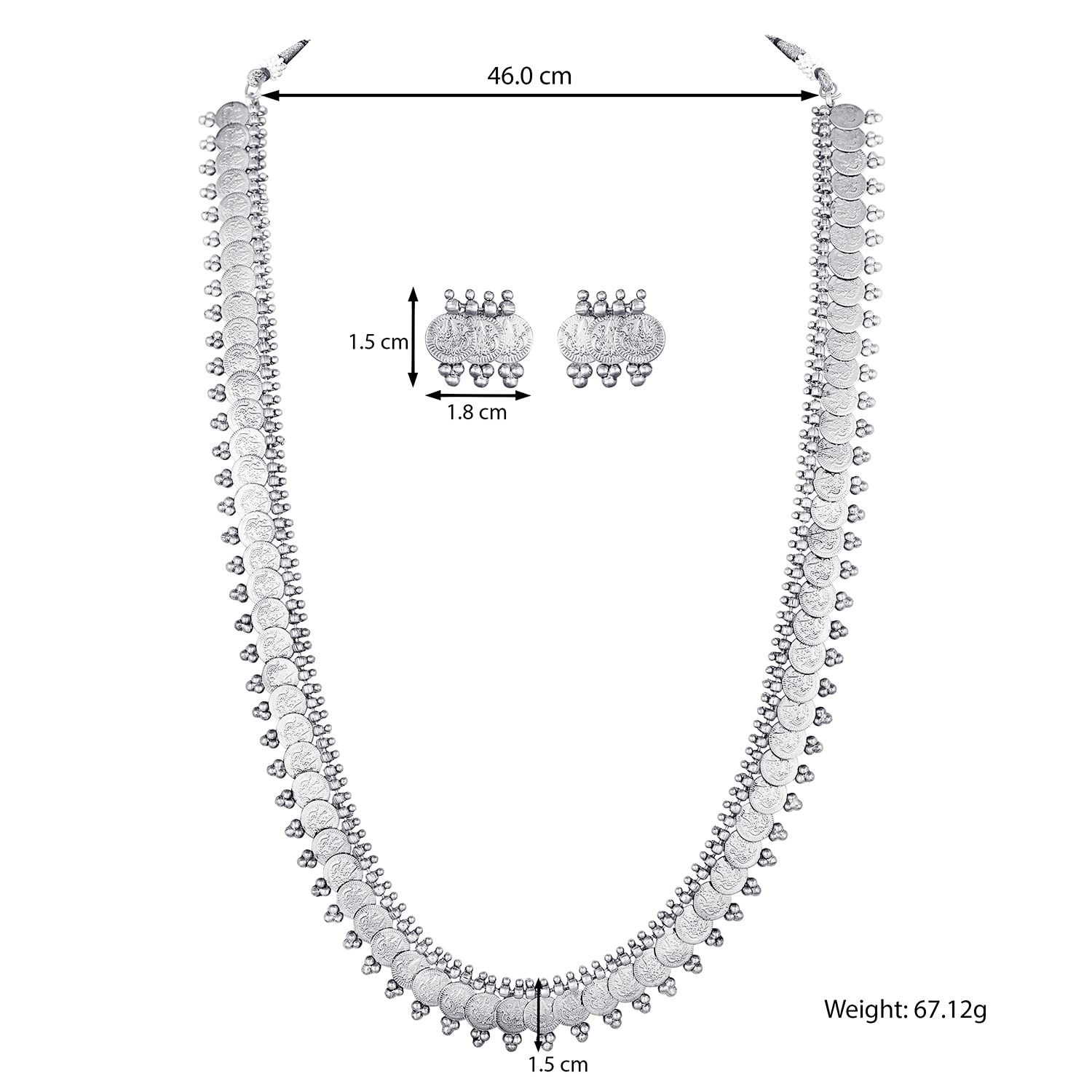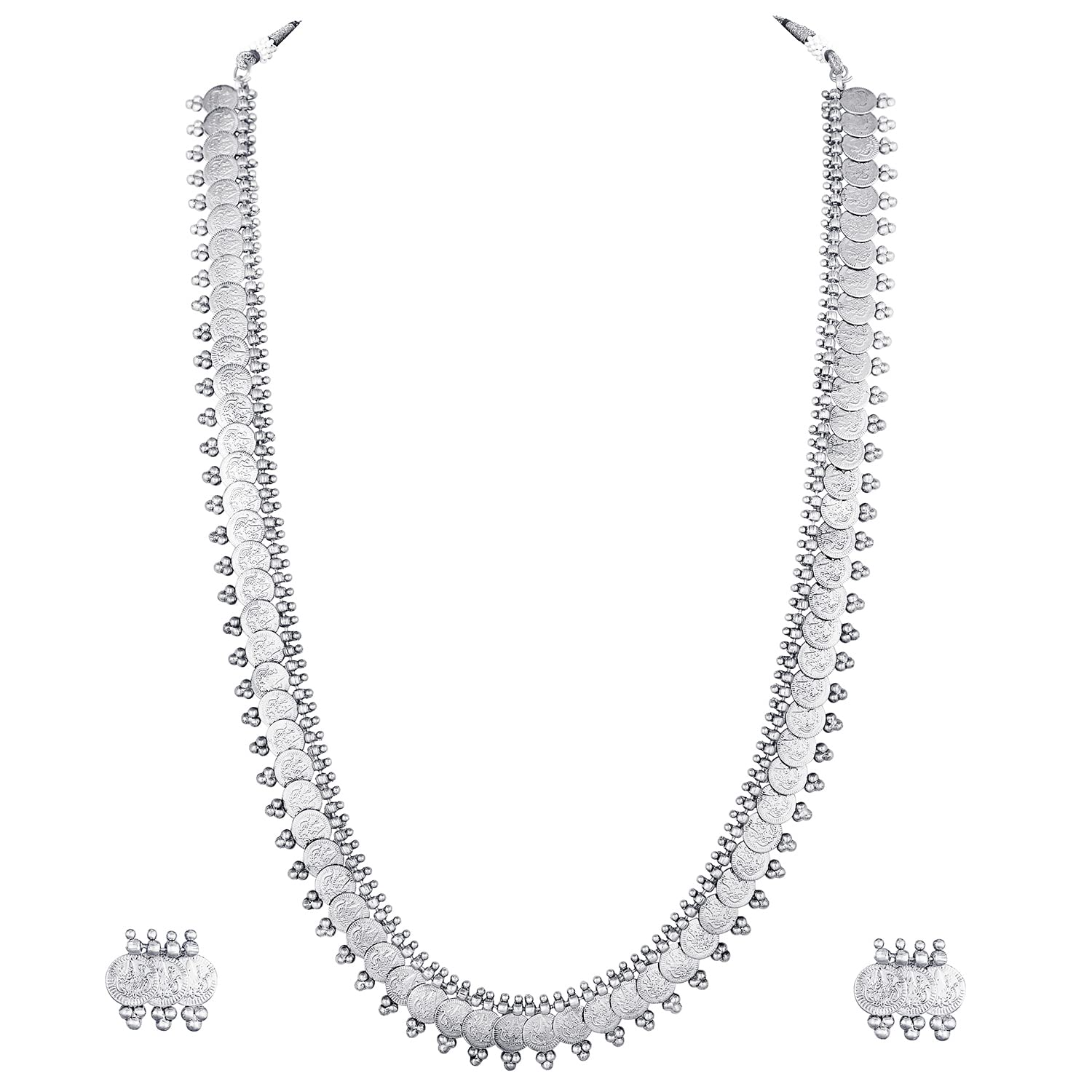 This jewellery set is crafted in rhodium plating and consists of a necklace, and a pair of earrings. Style this necklace set with a saree or a salwar suit to enhance the look. This jewelry set is a great option and a perfect pick for your wedding functions. Be assured to find a variety of contemporary and traditional designs in the mesmerising collection that we offer.