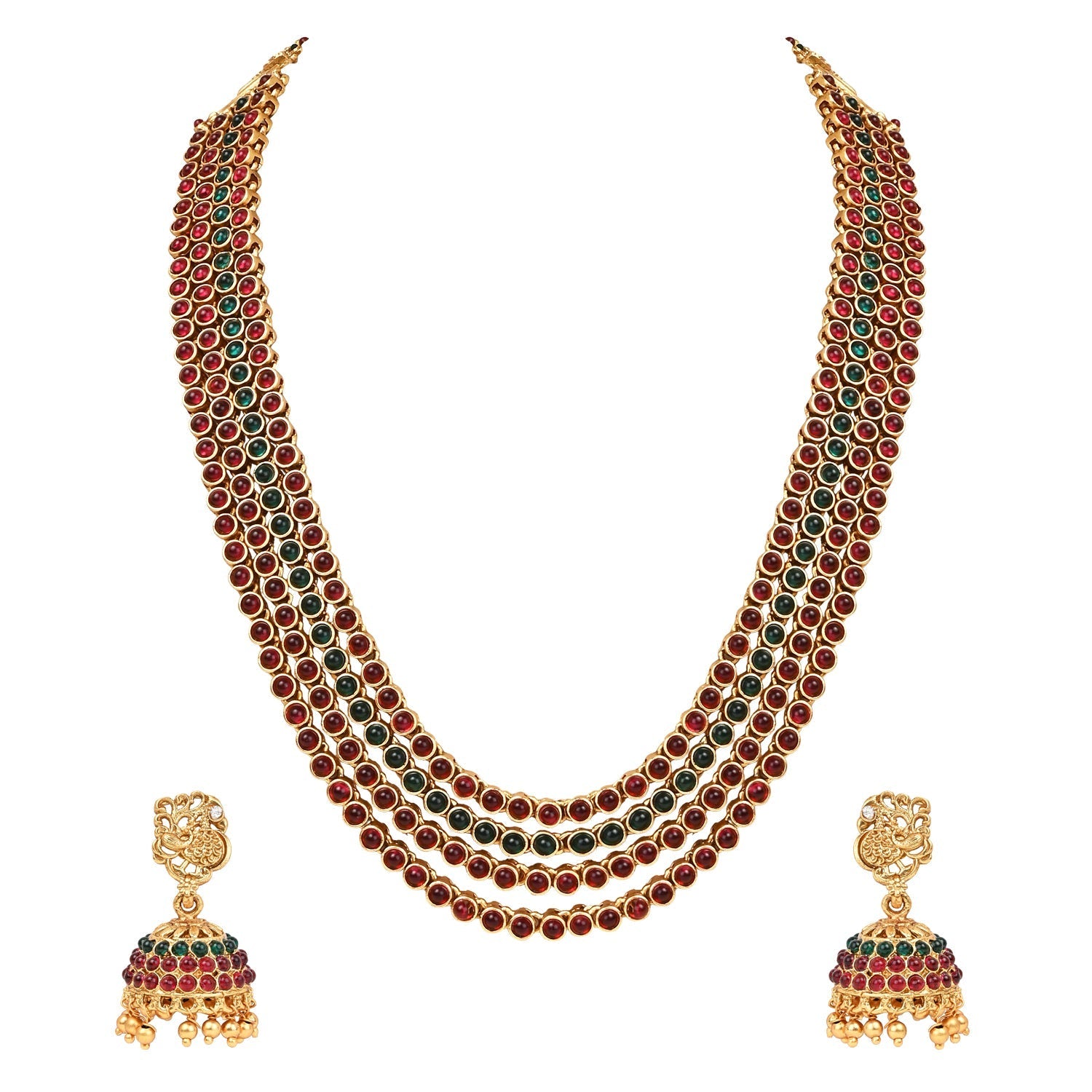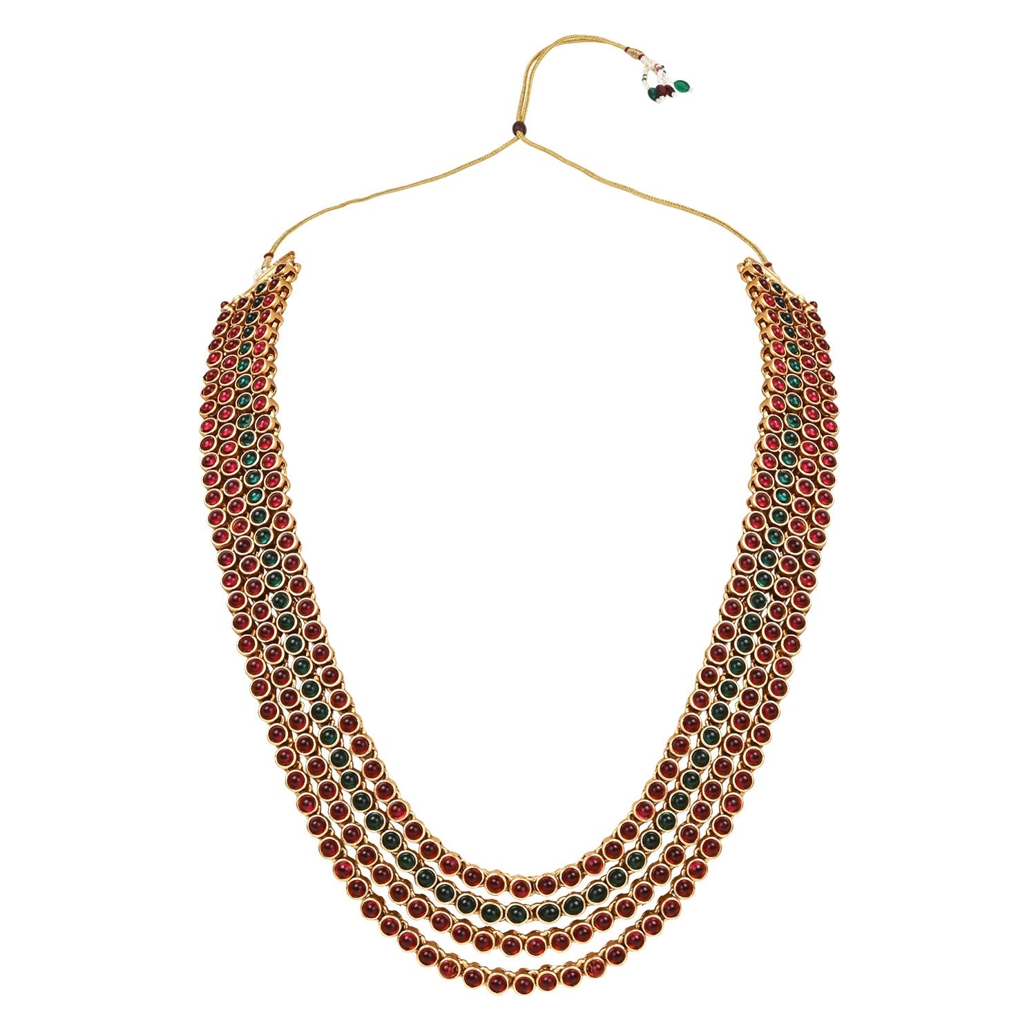 Elevate Your Style With The Gold-Plated Traditional Multi-Layered Ruby Stone Necklace Set. This Exquisite Handcrafted Jewelry Ensemble Is Designed To Add A Touch Of Timeless Elegance To Your Look. The Multi-Layered Necklace Features Radiant Ruby Stones Set In A Luxurious Gold-Plated Finish. Paired With Matching Earrings, This Set Is The Perfect Choice For Women And Girls Who Appreciate Classic, Traditional Jewelry With A Modern Twist. Embrace The Allure Of Ruby And Make A Statement At Any Occasion With This Stunning Jewelry Set From .