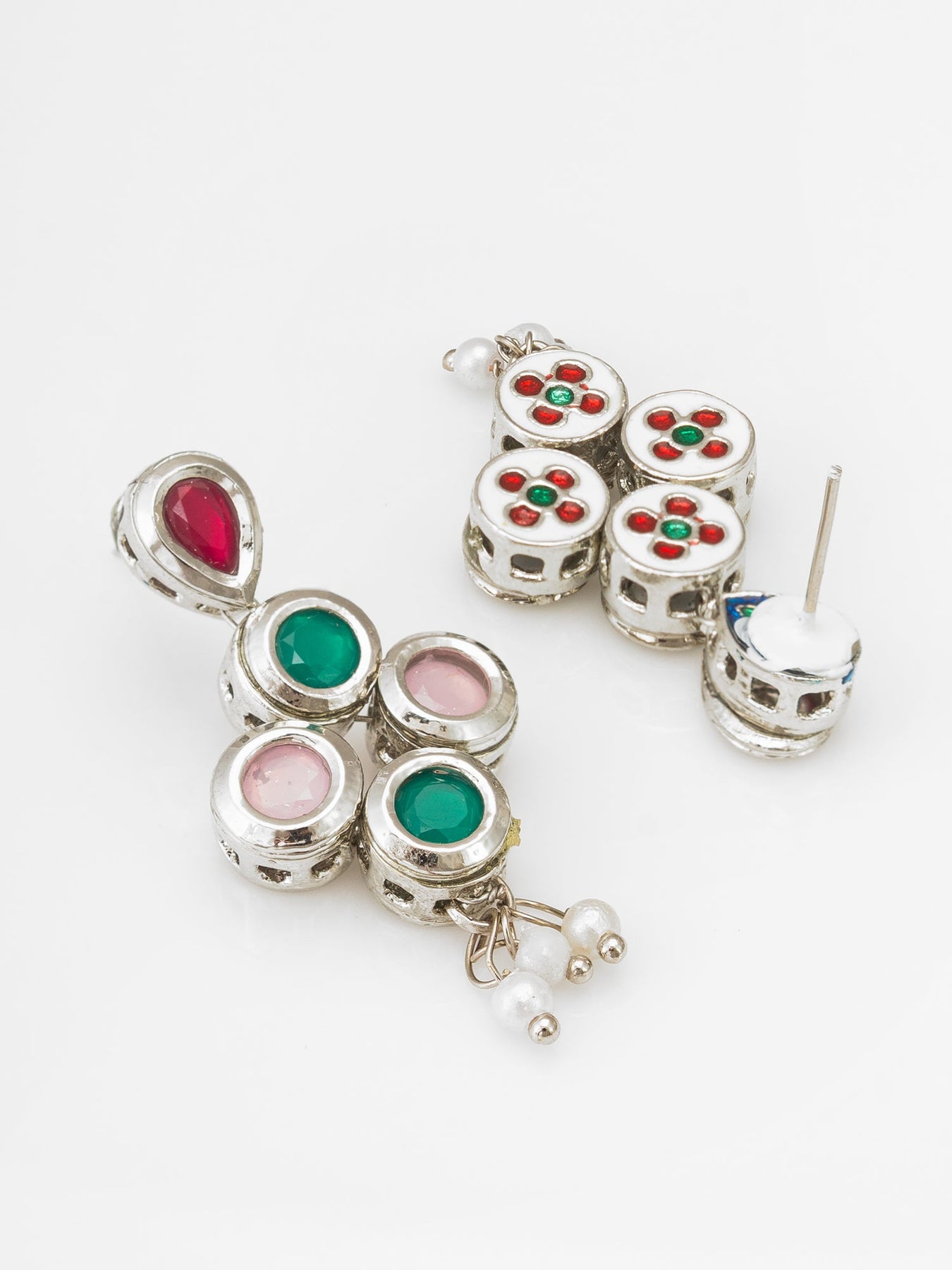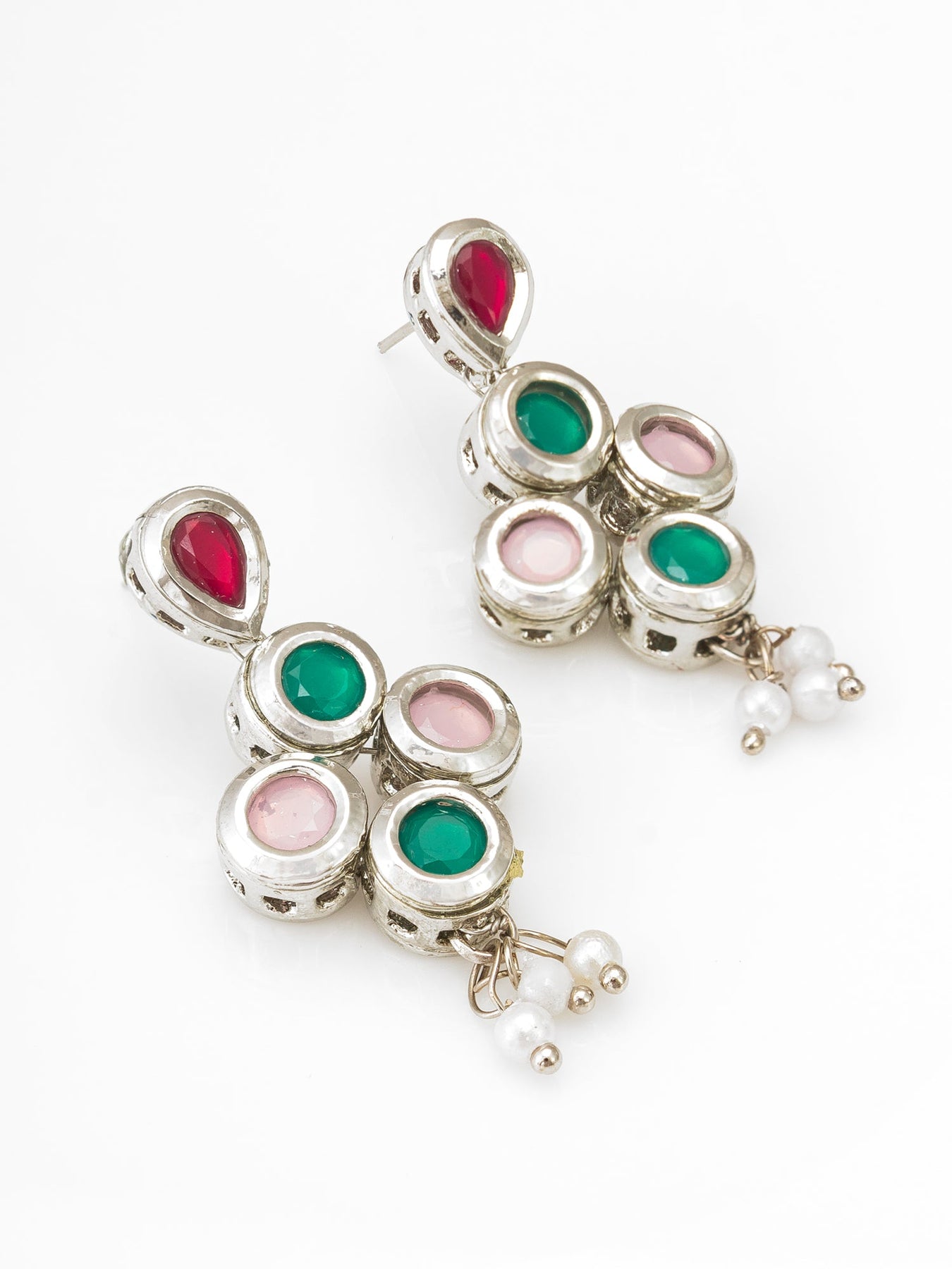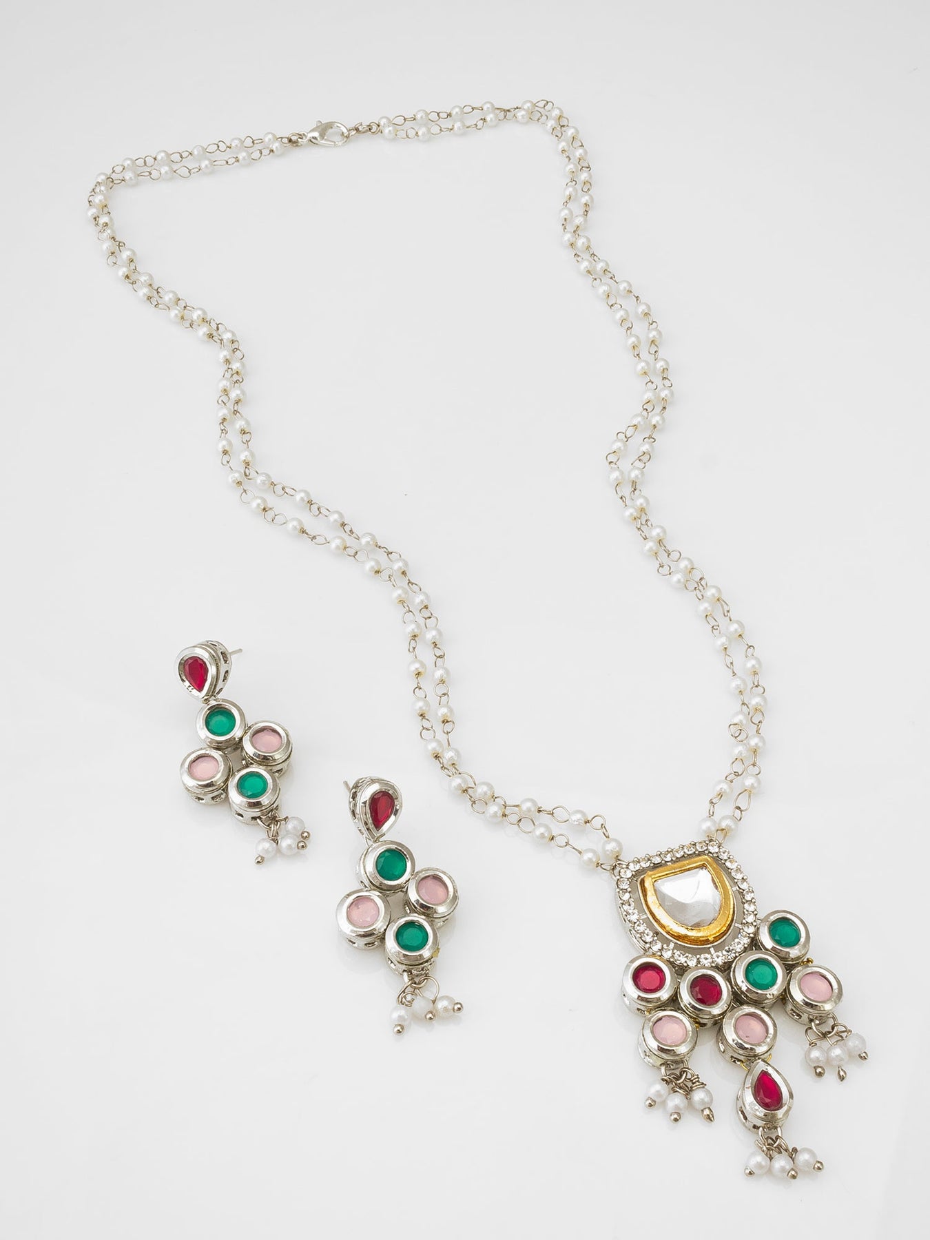 This Exquisite Necklace And Earrings Set Features Stunning Green And Pink Kundan Stones, Adding A Touch Of Elegance And Sophistication To Any Outfit. The Intricate Design And Vibrant Colors Make This Set A Perfect Accessory For Special Occasions Or Everyday Wear. Made With High-Quality Materials, This Kundan Jewelry Set Is Sure To Make A Statement And Elevate Your Style.