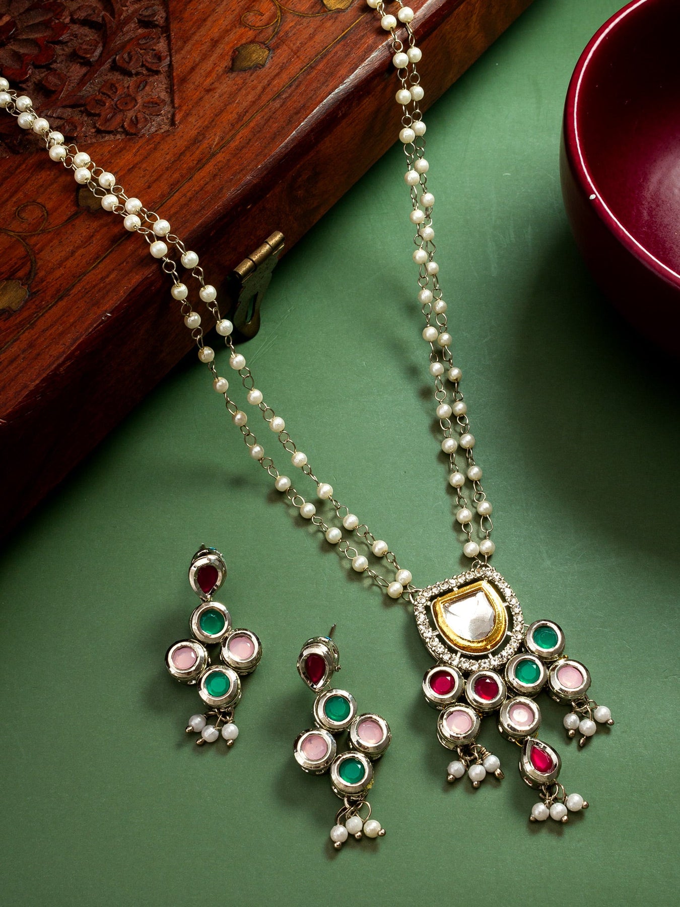 Women's Elegant Kundan Pearl Traditional Necklace Set