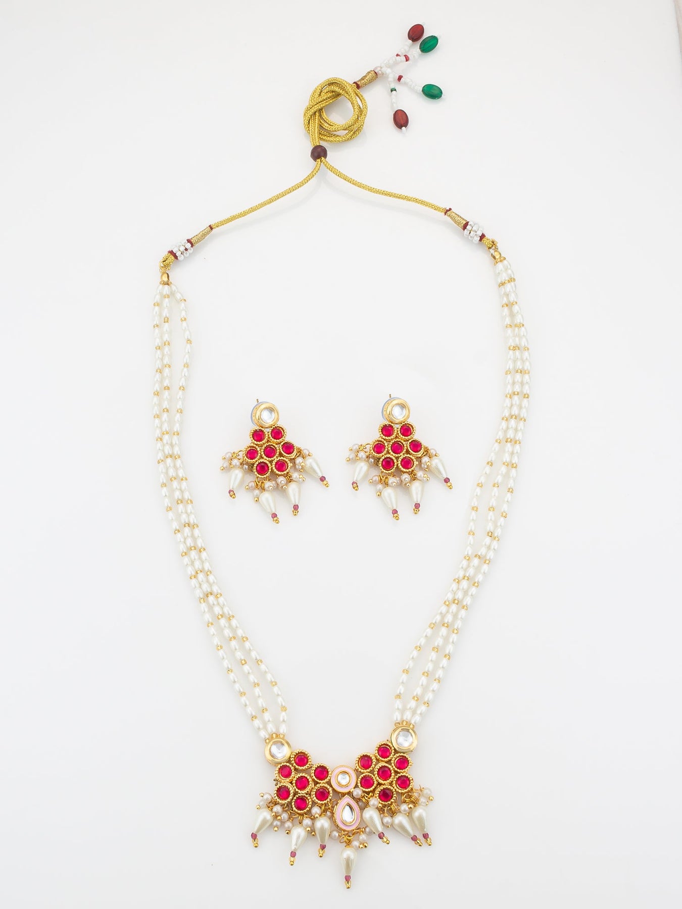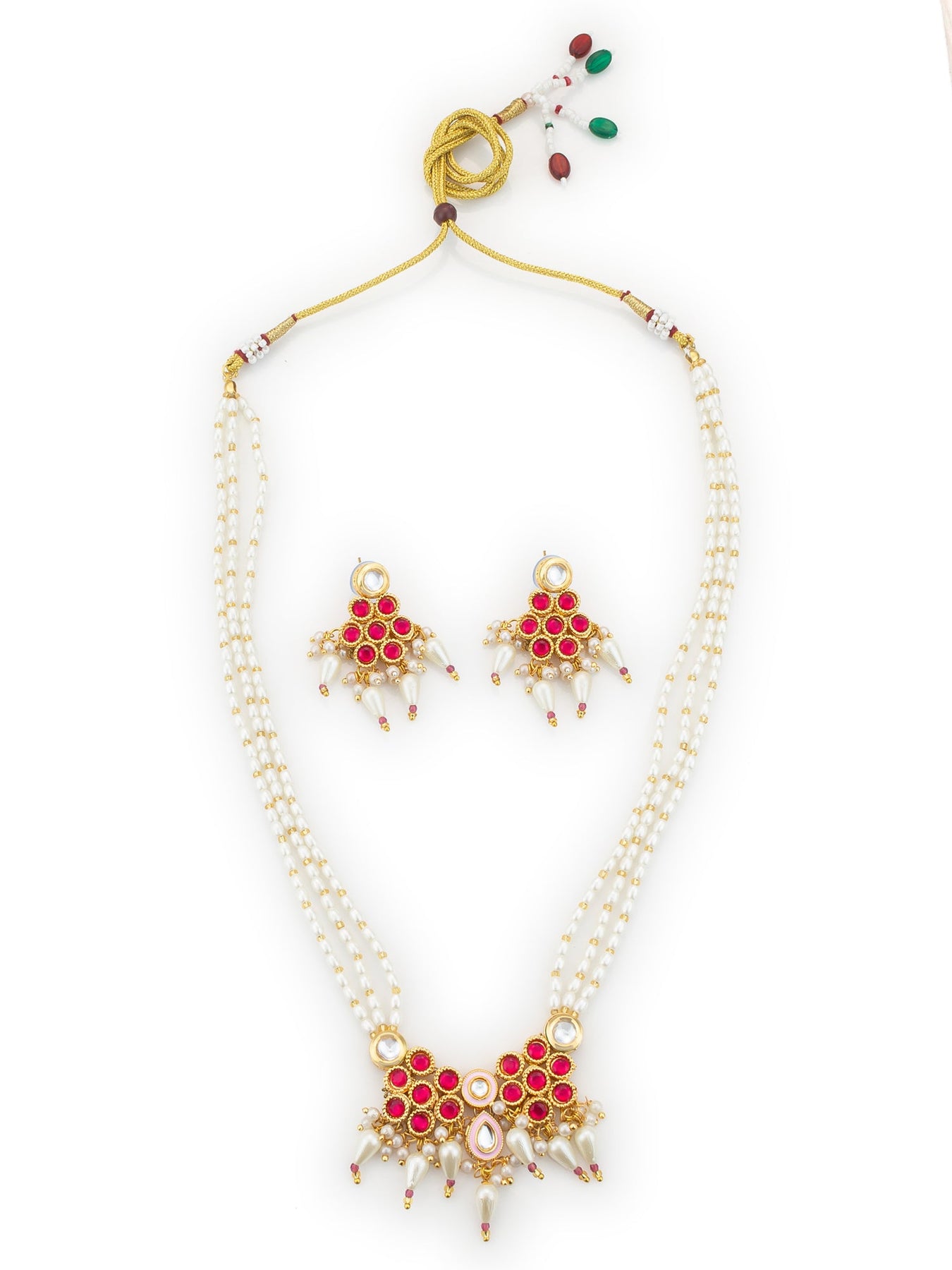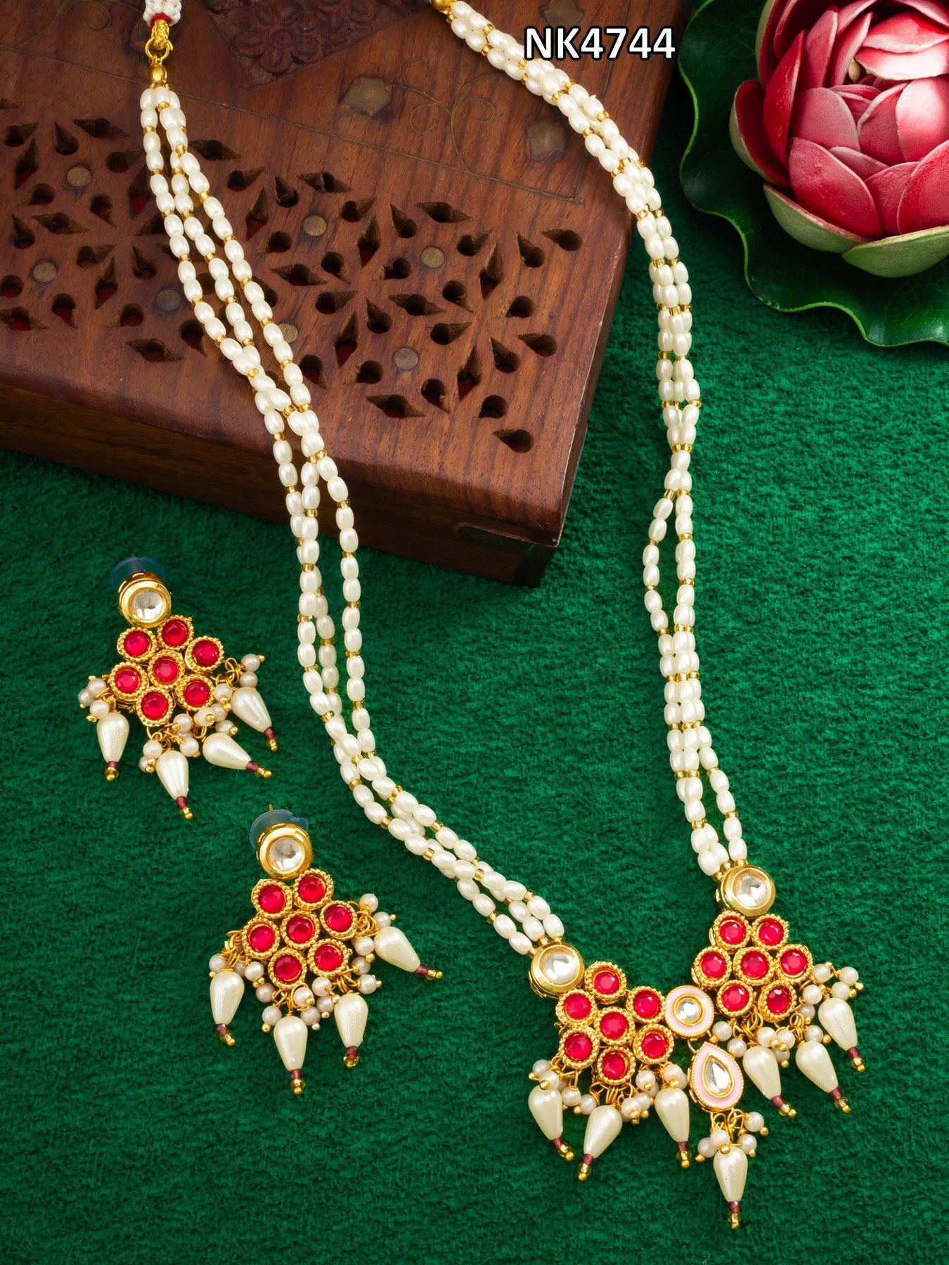 This Stunning Red And White Necklace And Earrings Set, Featuring Exquisite Meenakari Work That Beautifully Complements The Vibrant Colors. This Elegant Ensemble Is Designed To Make A Statement, Perfect For Both Casual Outings And Special Occasions. The Intricate Craftsmanship Ensures A Unique Touch, While The Harmonious Color Combination Adds A Pop Of Sophistication To Any Outfit.