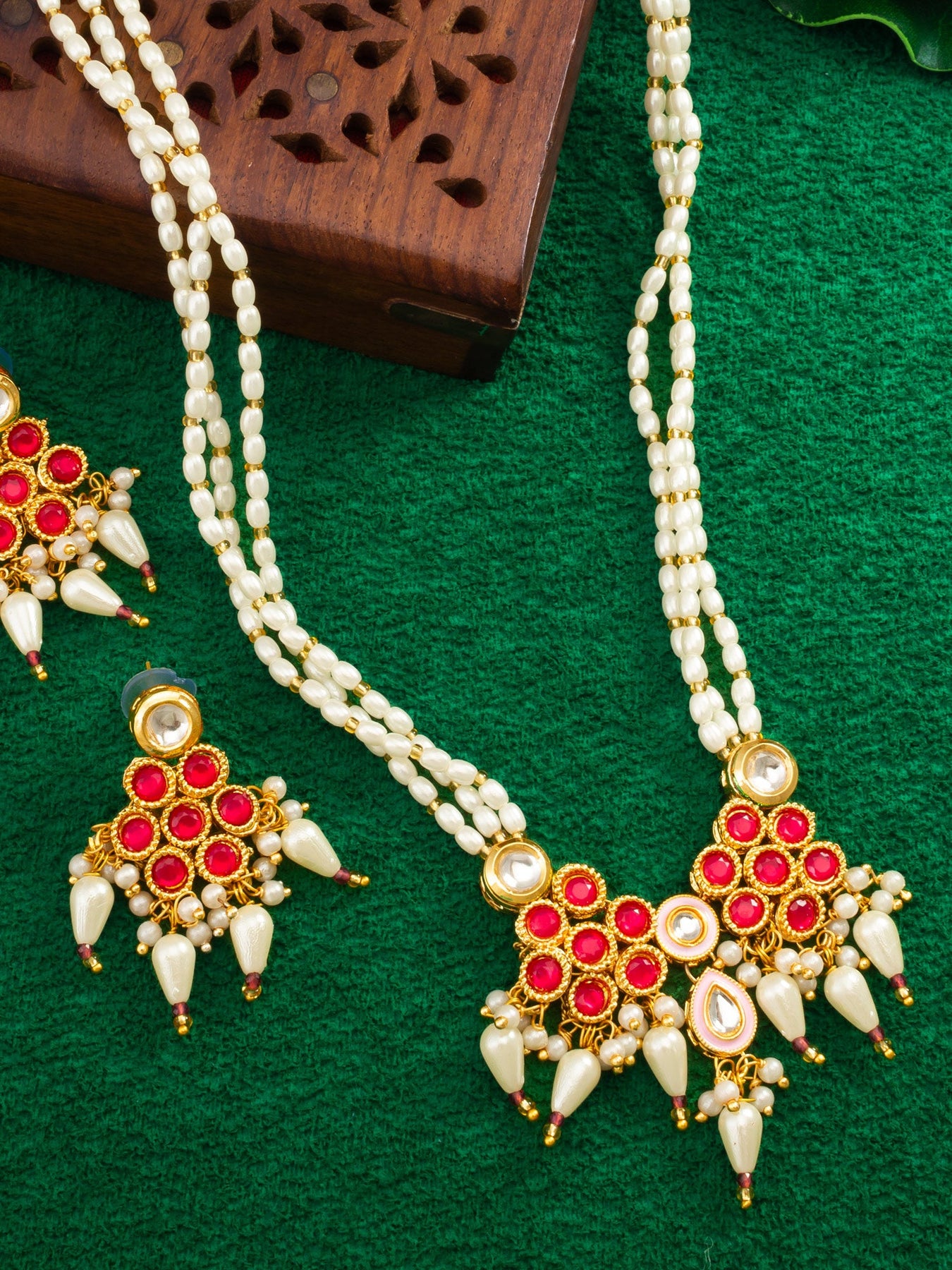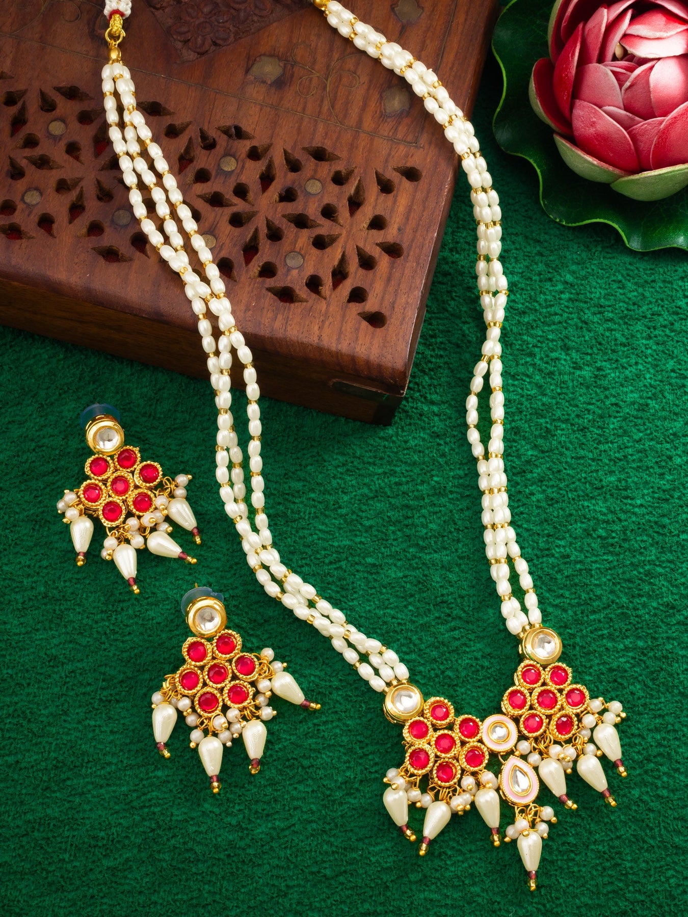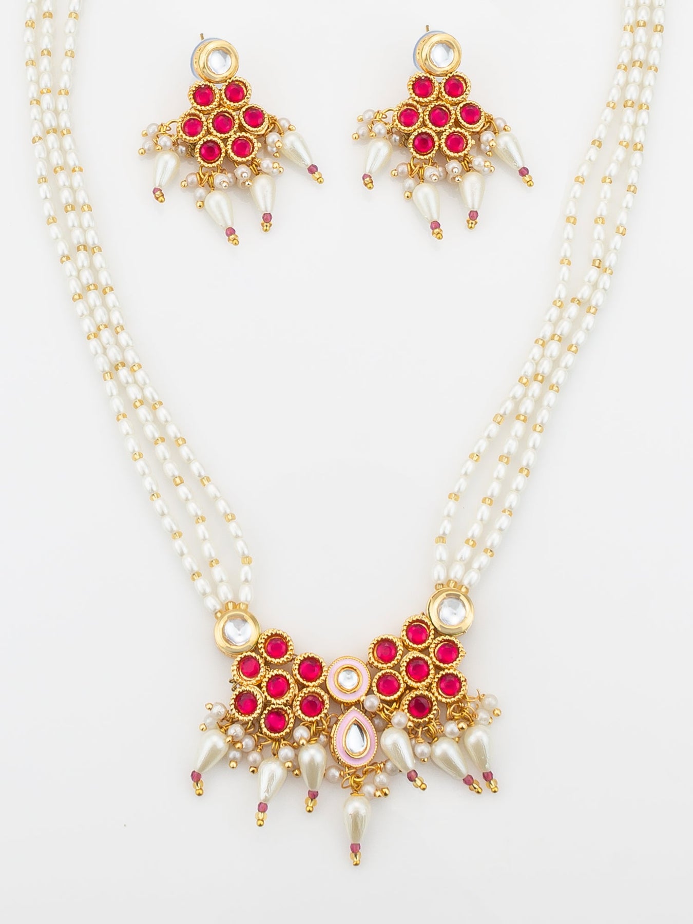 This Stunning Red And White Necklace And Earrings Set, Featuring Exquisite Meenakari Work That Beautifully Complements The Vibrant Colors. This Elegant Ensemble Is Designed To Make A Statement, Perfect For Both Casual Outings And Special Occasions. The Intricate Craftsmanship Ensures A Unique Touch, While The Harmonious Color Combination Adds A Pop Of Sophistication To Any Outfit.