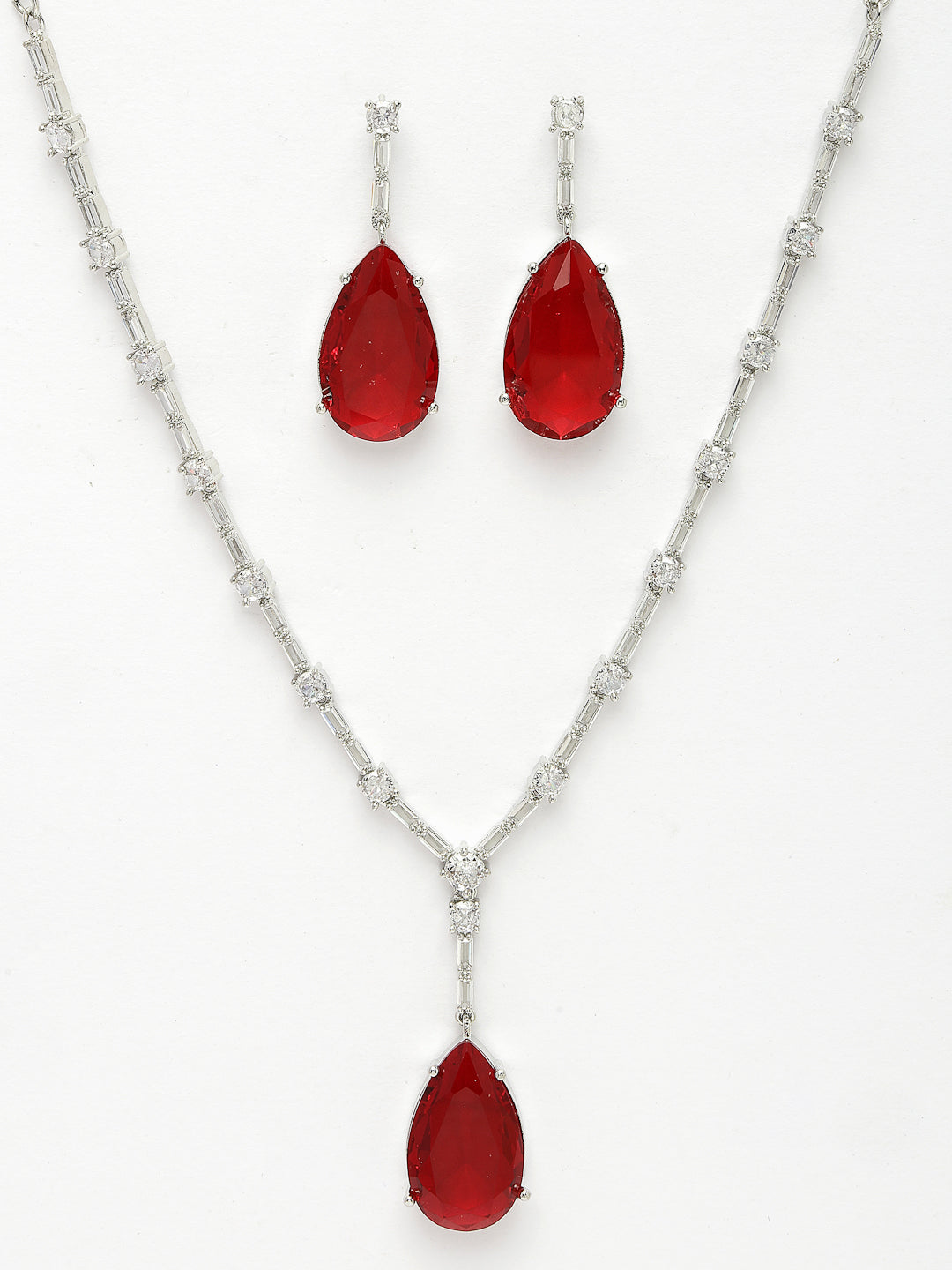 Style Note: Elevate your attire with the bold allure of the NVR Women Red & Silver-Plated Artificial Stones Studded Handcrafted Jewellery Set. With its vibrant red hues and silver-plated accents, this set exudes sophistication and confidence. Perfect for special occasions such as weddings, parties, or holiday celebrations, this handcrafted jewellery set adds a touch of glamour and elegance to your ensemble, ensuring you shine with poise and style.
