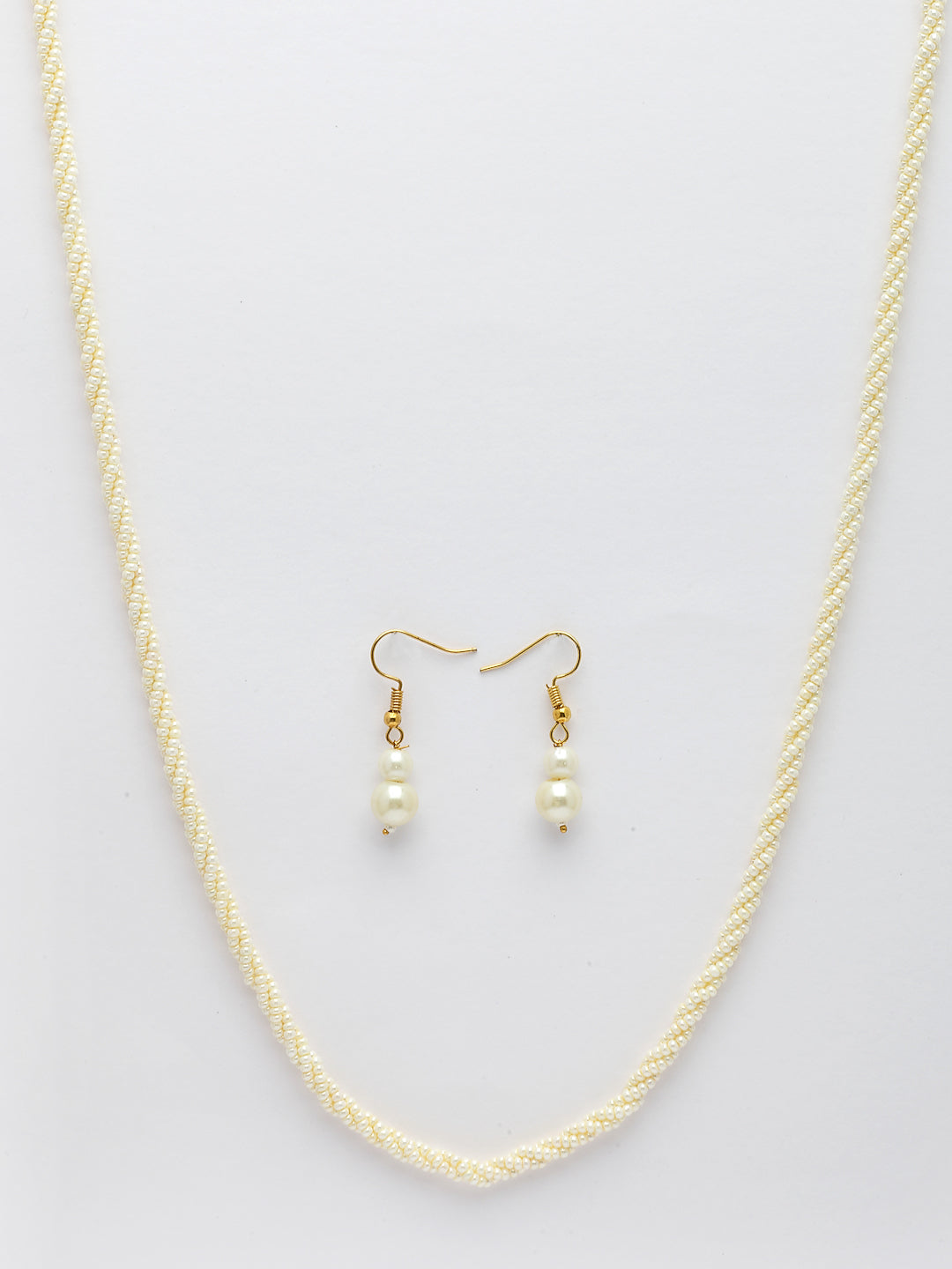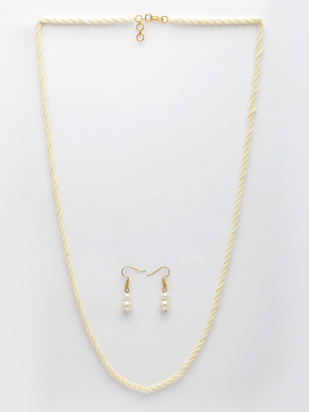 Style Note: The Nvr Women's White Pearl Gold-Plated Long Necklace With Earrings Set Combines Classic Elegance With A Modern Touch. The Long Necklace Features Lustrous White Pearls Beautifully Accented By A Gold-Plated Chain, Creating A Sophisticated And Timeless Look. Paired With Matching Gold-Plated Earrings Adorned With Pearls, This Set Adds A Refined Touch To Any Ensemble. Perfect For Special Occasions Or Enhancing Everyday Outfits, The Necklace's Length And The Earrings' Delicate Design Offer Versatile Styling Options. Lightweight And Comfortable, This Set Is Ideal For Those Who Appreciate Understated Luxury And Classic Charm With A Contemporary Edge.