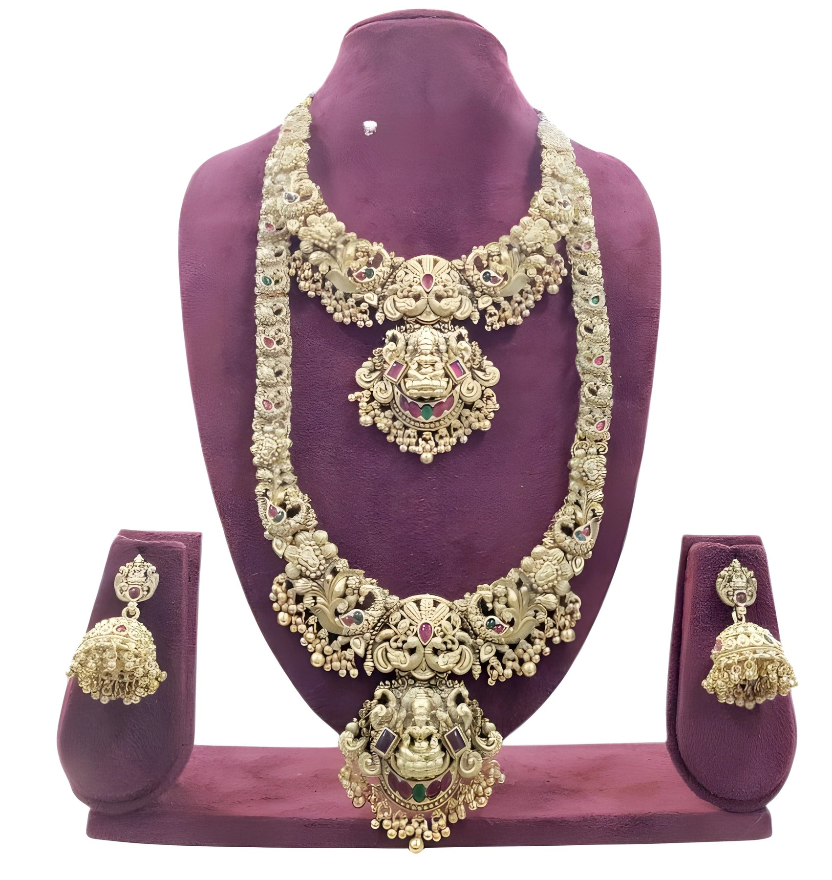 Elevate Your Ethnic Ensemble With This Extraordinary Two-Tier Temple Jewelry Masterpiece, A Breathtaking Celebration Of Traditional Indian Craftsmanship And Divine Artistry. Each Intricate Detail Tells A Story Of Cultural Richness And Spiritual Symbolism.