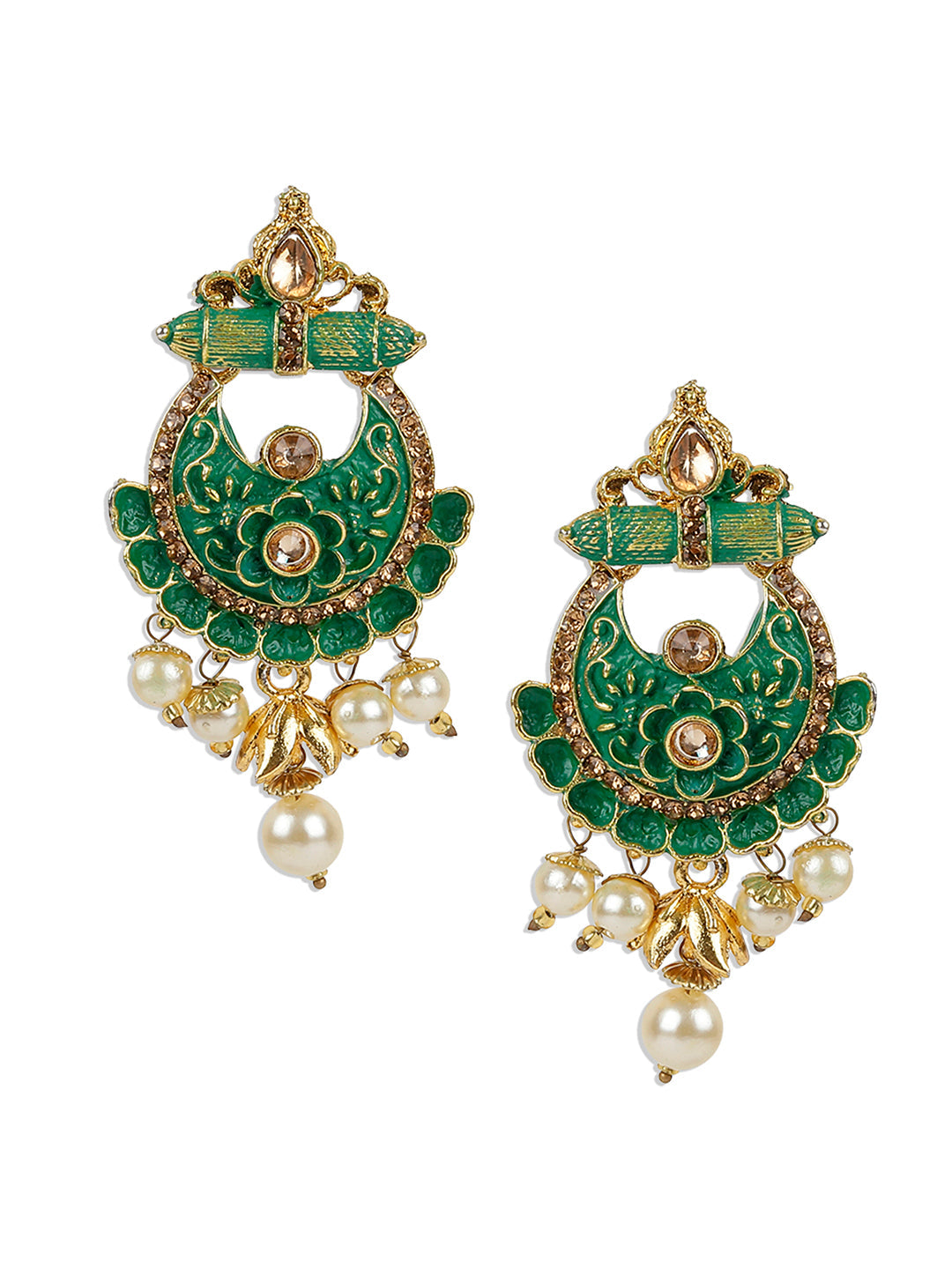 Antique Matte Gold Finish Meenakari Pearl Jewellery
