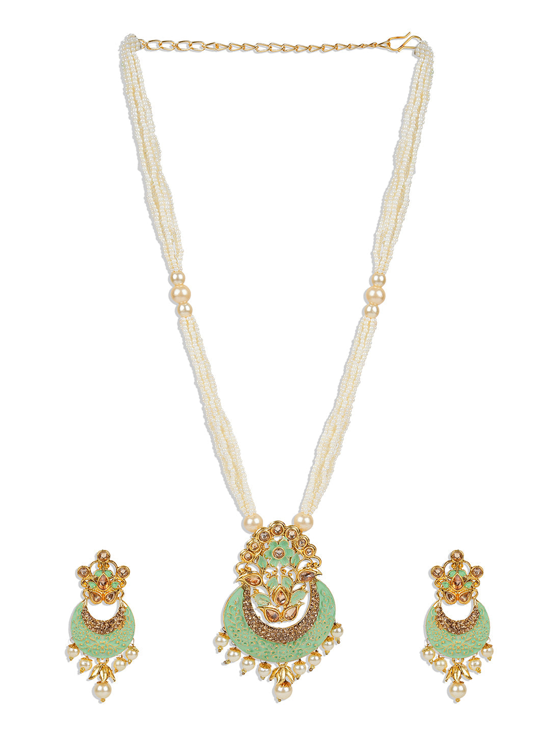 Antique Matte Gold Finish Meenakari Pearl Jewellery