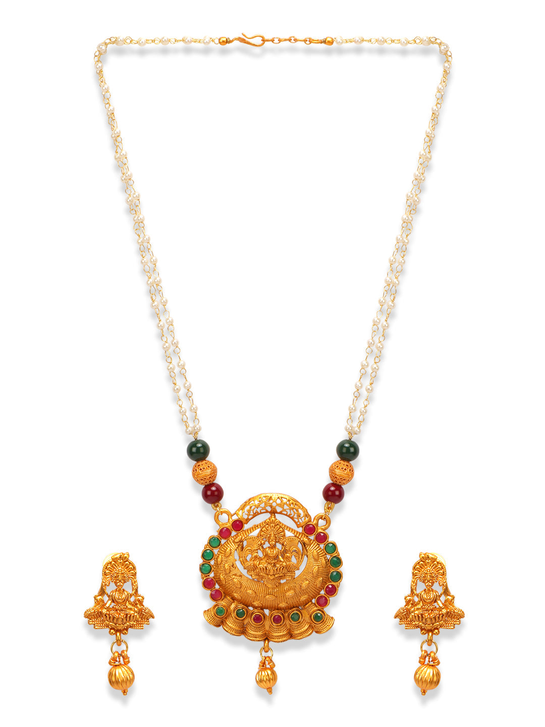 Gold Plated Maa Laxmi Stone Studded Necklace With Earrrings For Women And Girls