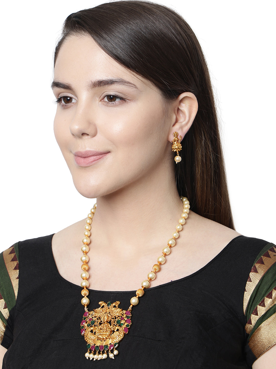 Jewelry Adds Lavishing Look To Any Clothing. Any Fabulous Outfit Is Incomplete Without Matching Jewelry. A Woman Is Completely Dressed With Wearing Matching Jewelry. So It Can Be Rightfully Said That In Order To Dress Completely, A Lady Needs Fashion Jewelry. What Makes The Temple Jewelry Unique From The Other Pieces Of Jewellery Is The Religious Sentiment. The Metalwork That You See In Temple Jewelry Pieces Is Extraordinary. Club This Temple Jewelry With Silk Saree For The Perfect Grace.