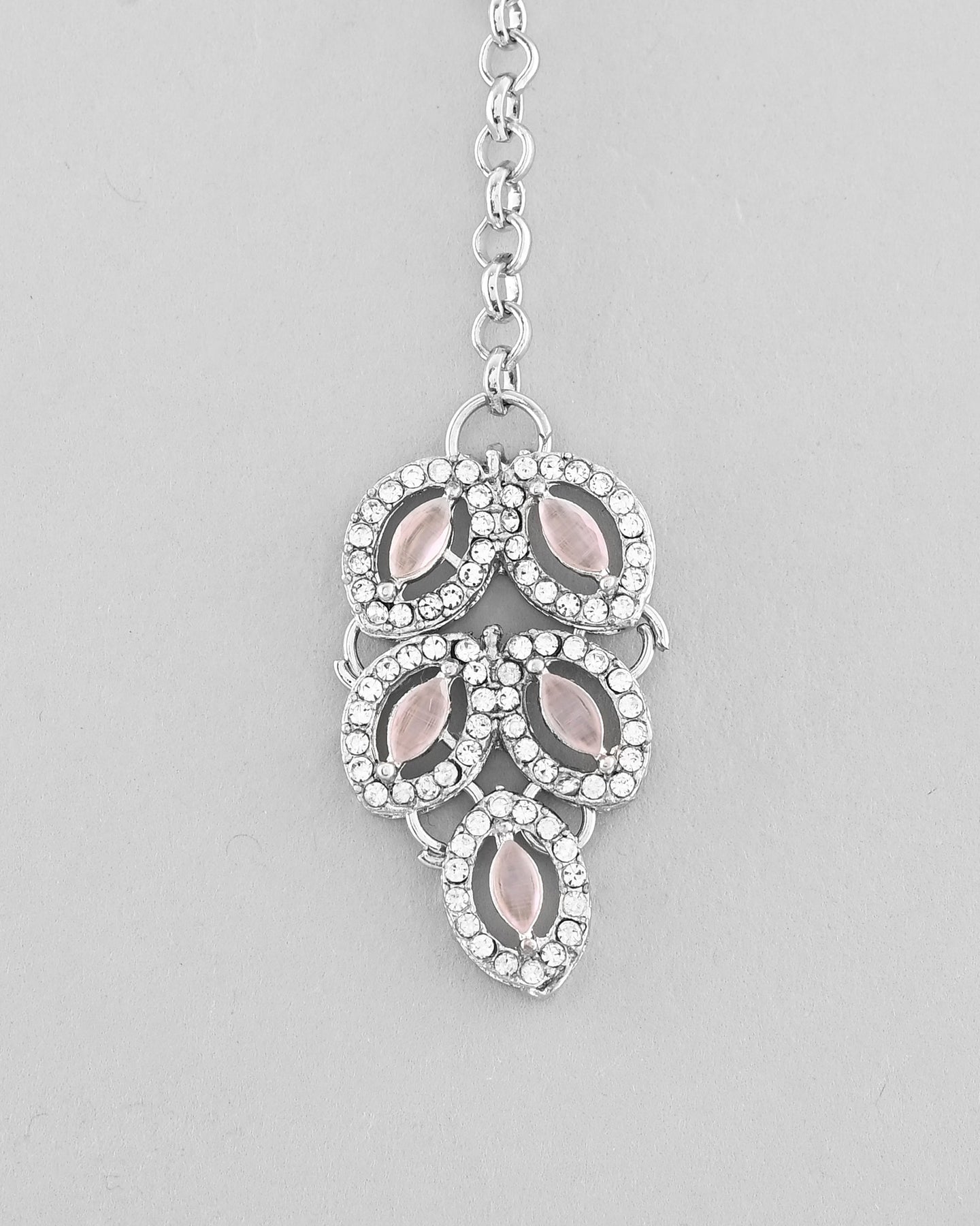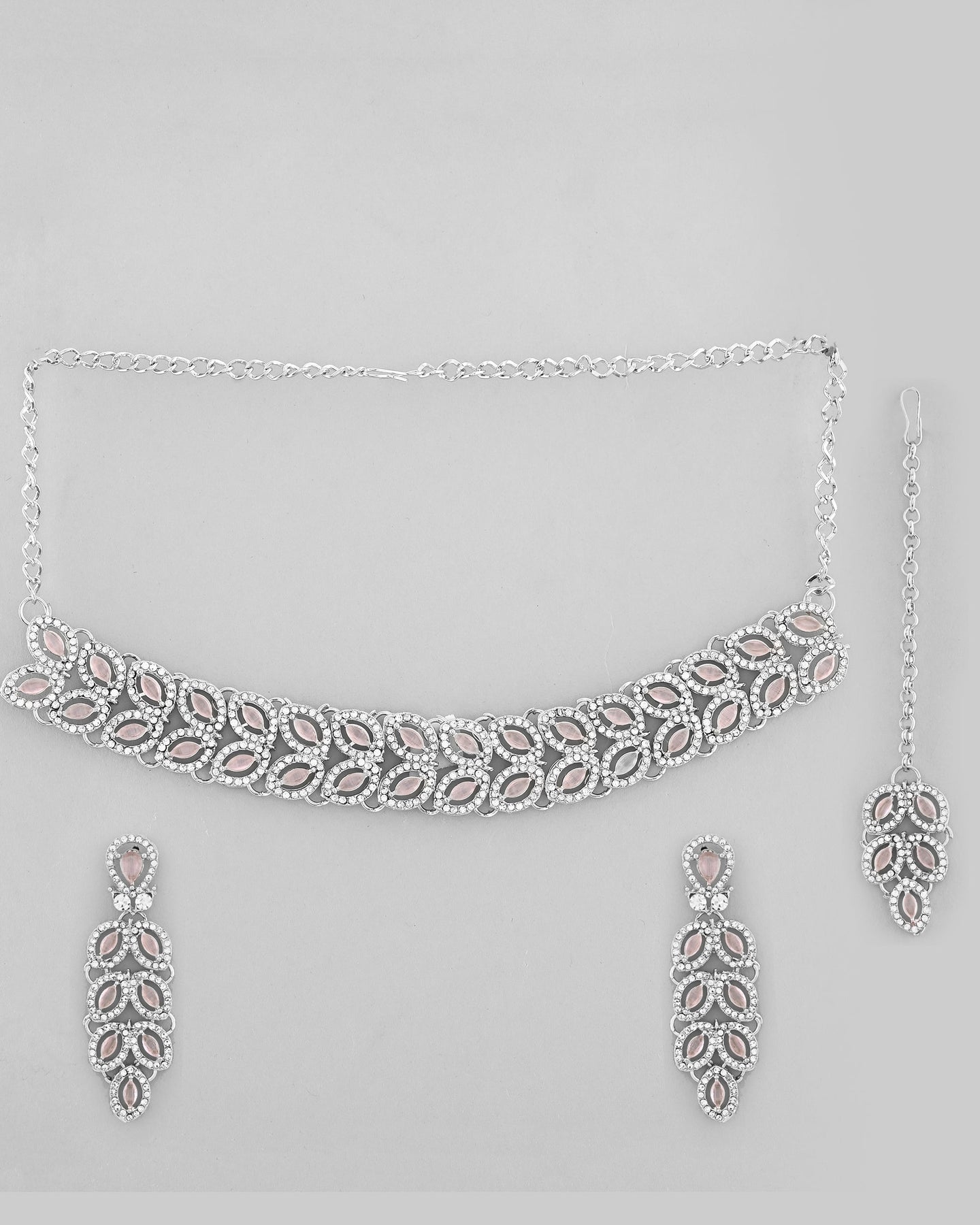 Women's Silver Plated Baby Pink Ad Stone Studded Designer Jewellery Set With Mangtikka