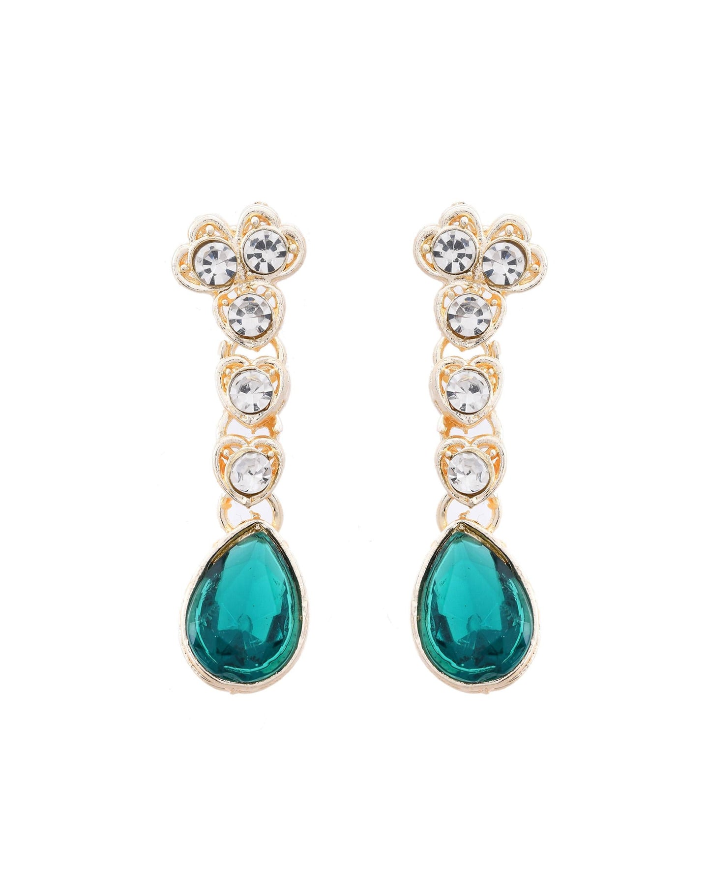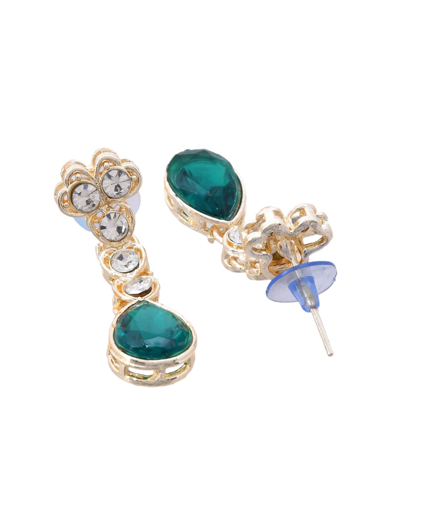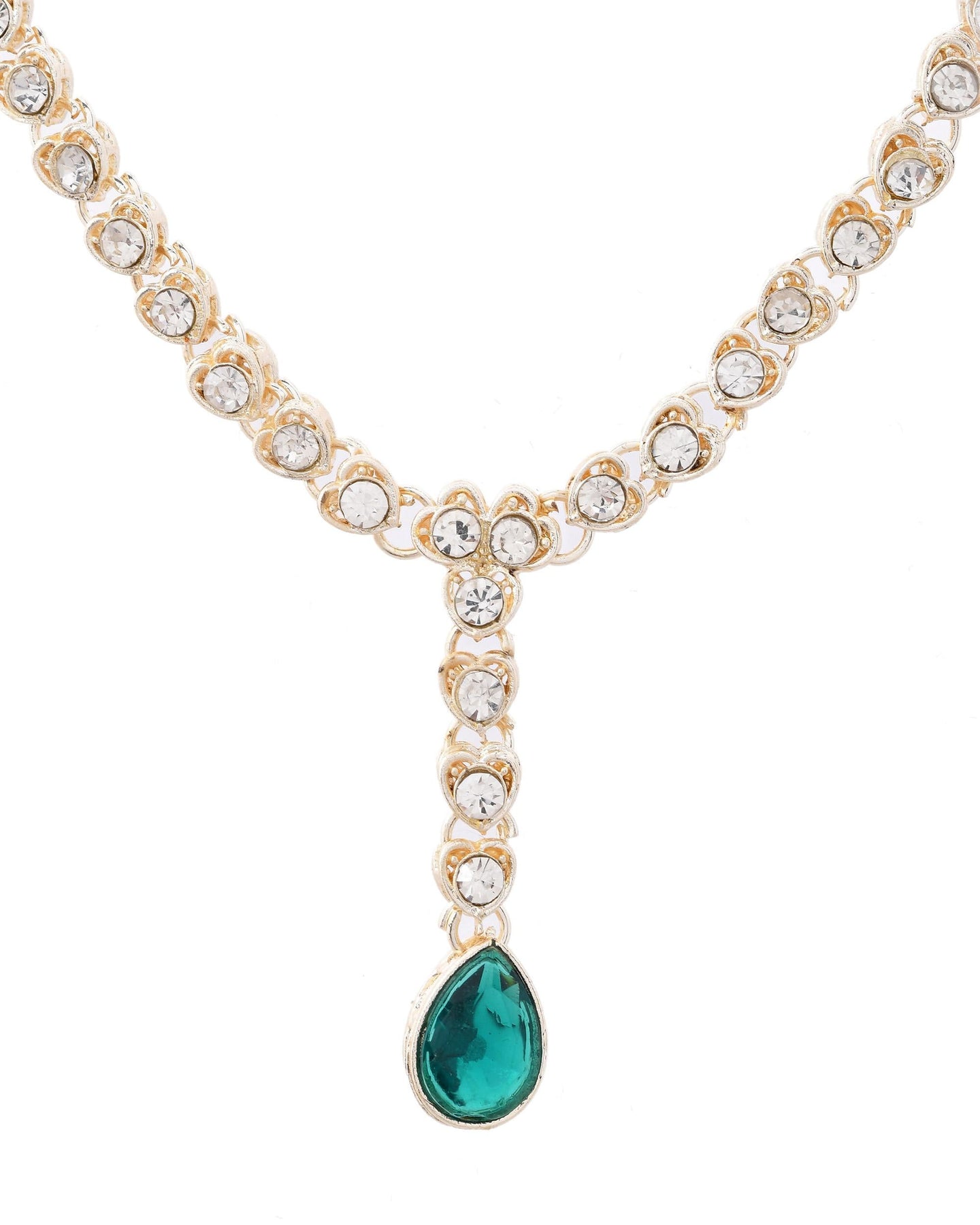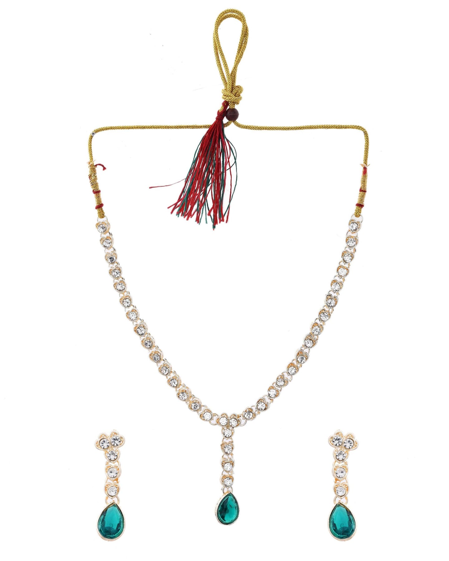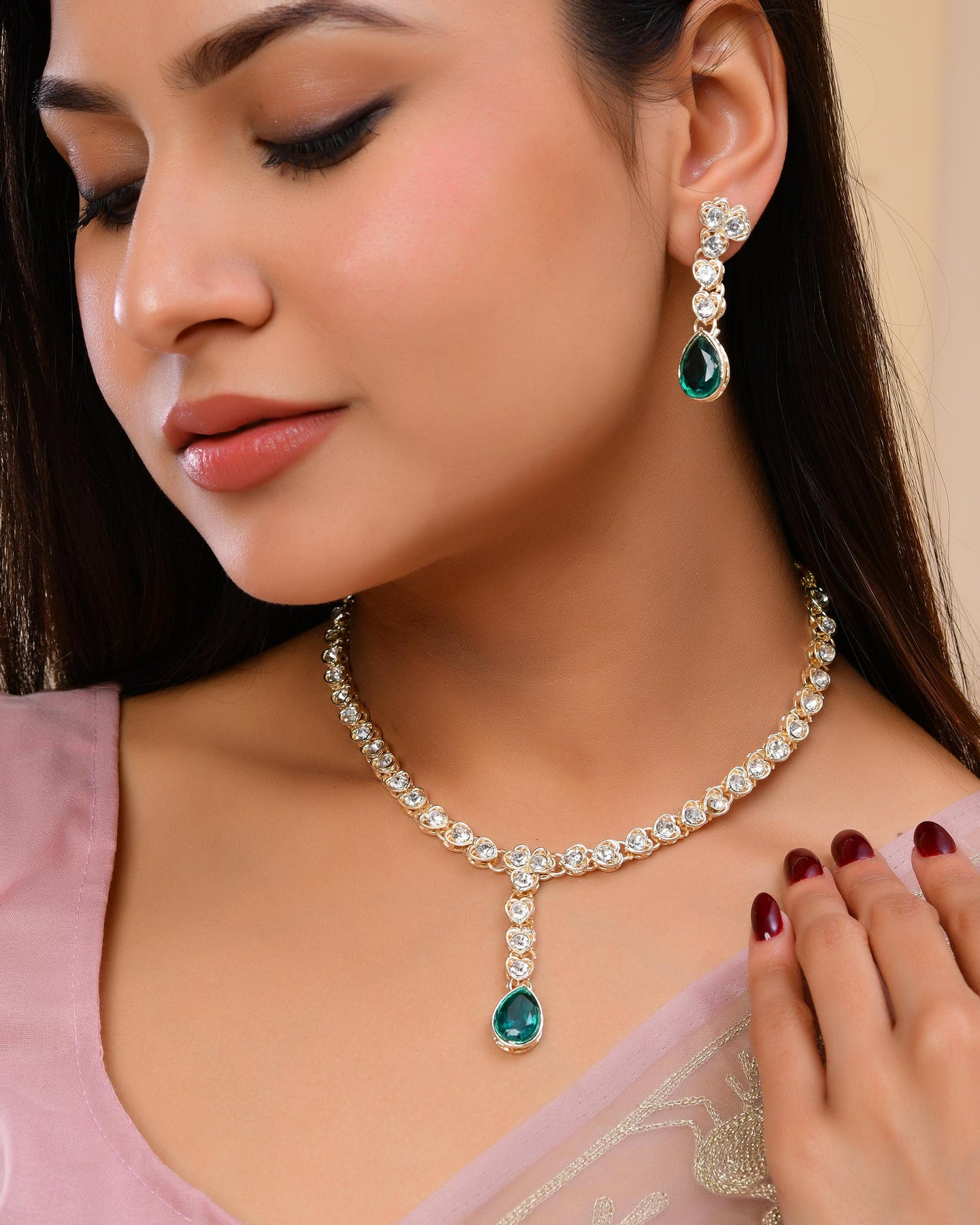 Women's Silver Plated Green Stone Studded Necklace And Earrings Set