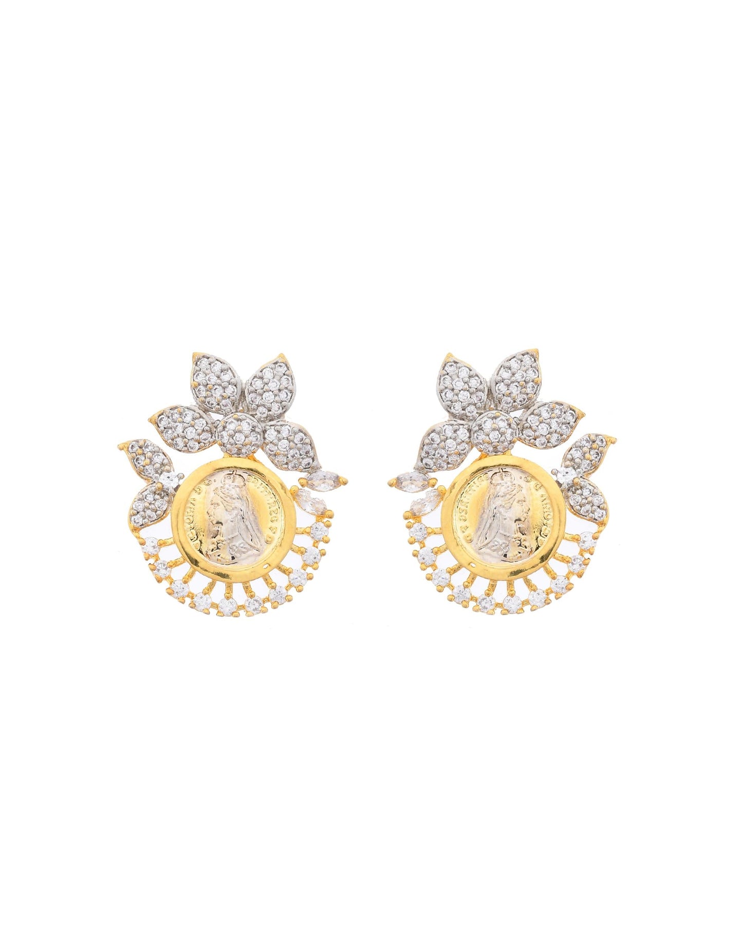 This Dual-Toned Ad-Studded Designer Coin Chain Set Combines Modern Elegance With Traditional Charm. The Intricate Coin Design, Enhanced By Sparkling Ad Stones, Creates A Bold And Sophisticated Look. Perfect For Special Occasions Or Casual Wear, This Set Adds A Unique And Versatile Touch To Any Outfit, Offering Timeless Beauty With A Contemporary Edge.