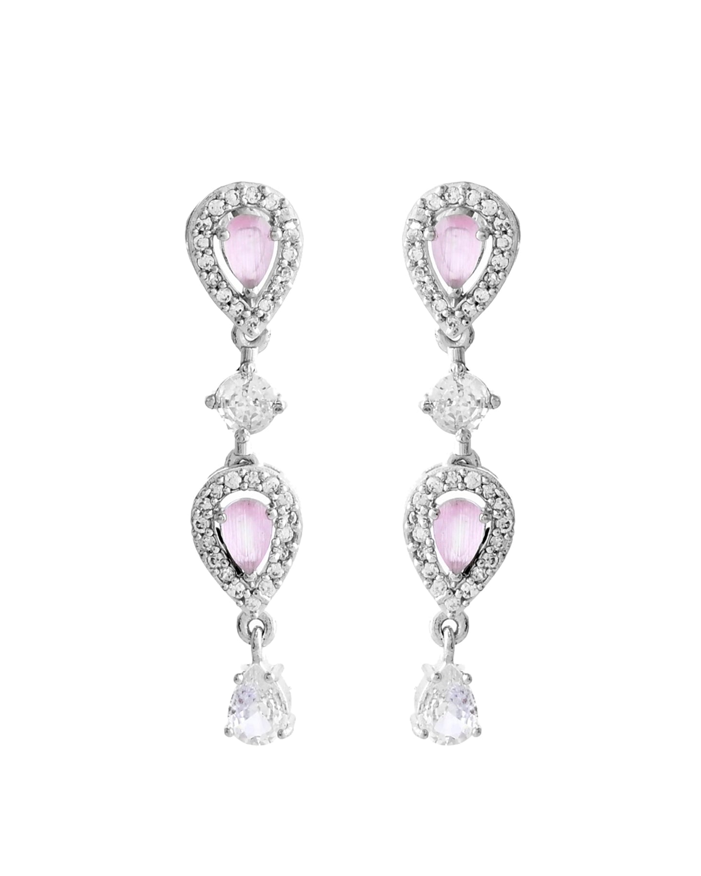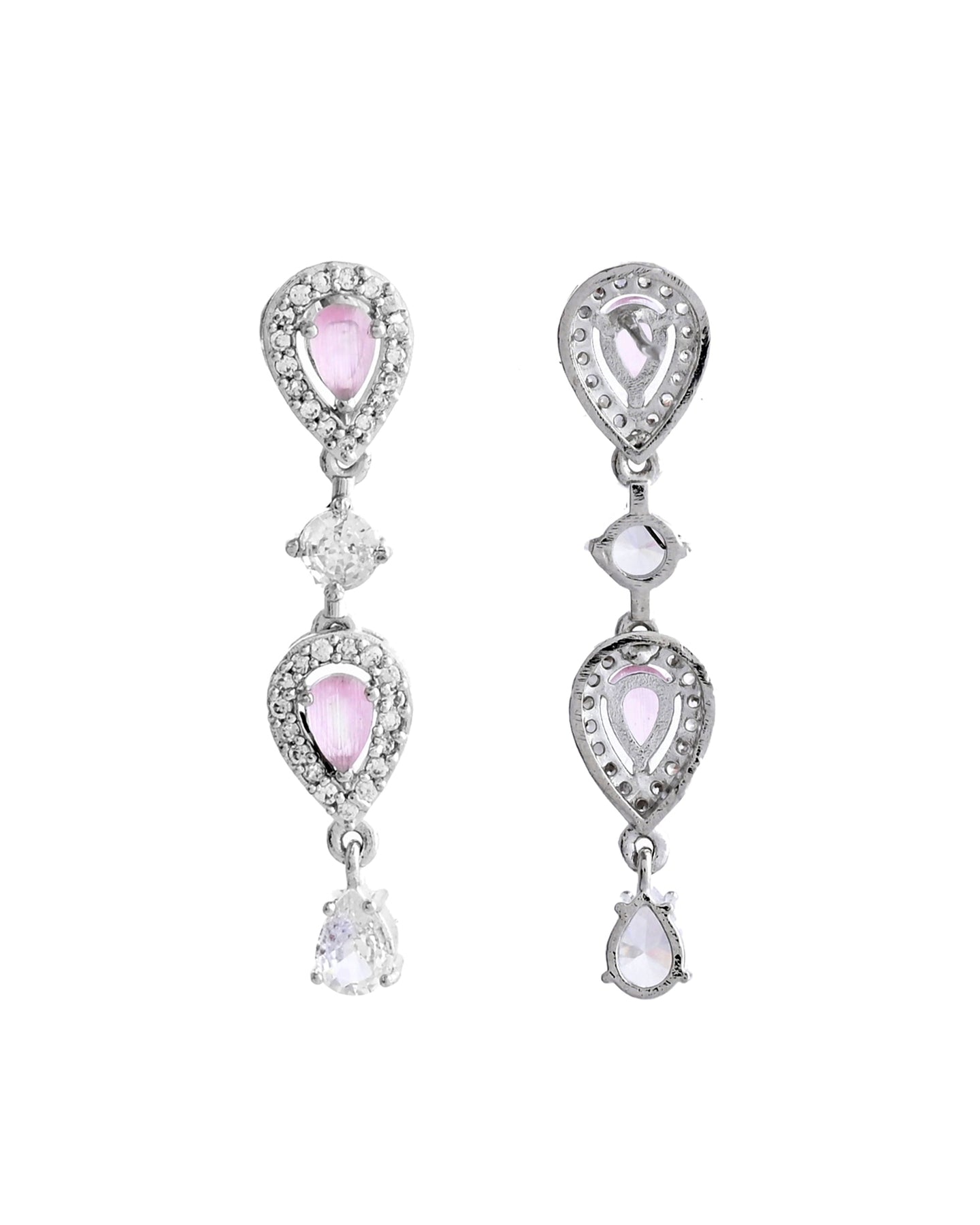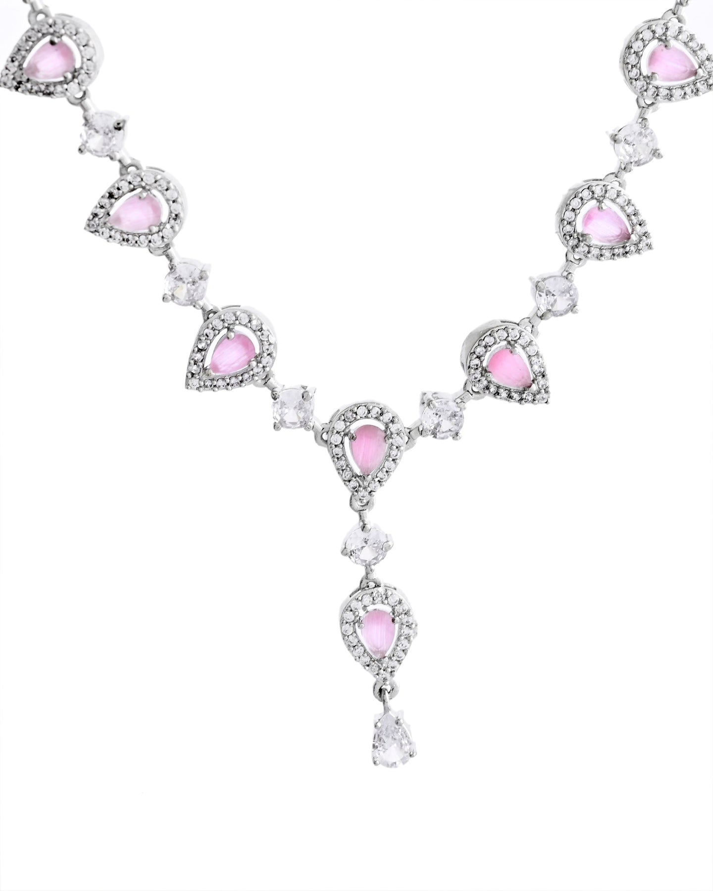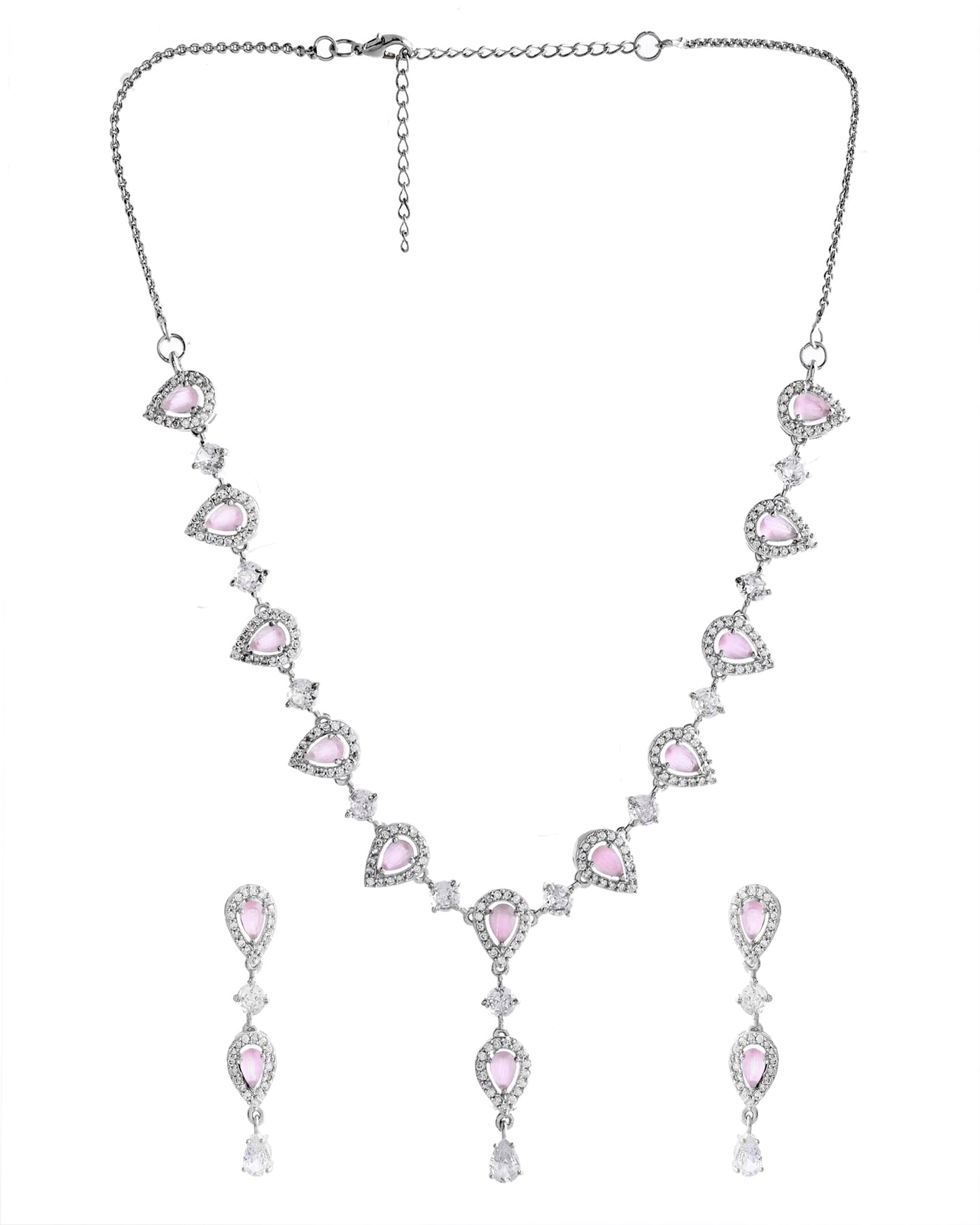 Women's Silver Plated Baby Pink Stone Tear Drop Shaped Ad Jewellery Set
