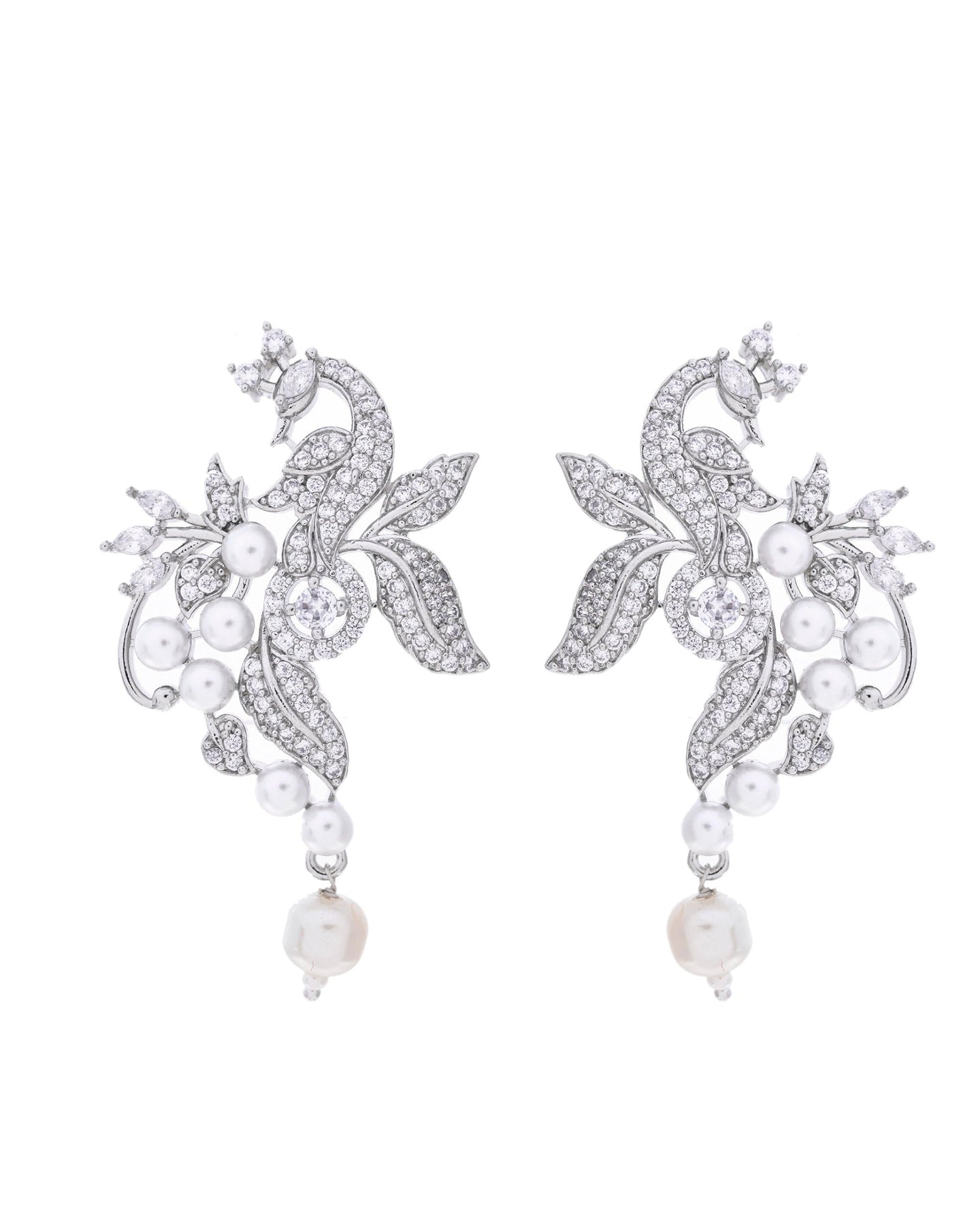 Women's Silver Plated Ad And Pear Studded Peacock Shaped Chain Set