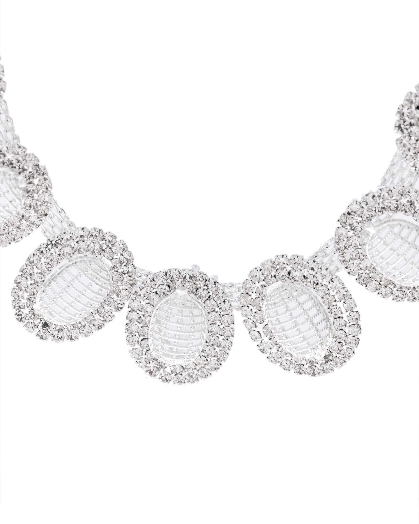 Add Timeless Charm With This Silver-Plated Stones Studded Oval Shaped Jewellery Set. Featuring Elegant Oval-Shaped Designs Adorned With Sparkling Stones, This Set Includes A Matching Necklace And Earrings. Perfect For Weddings, Parties, And Festive Occasions, It Brings A Graceful And Sophisticated Touch To Any Outfit.