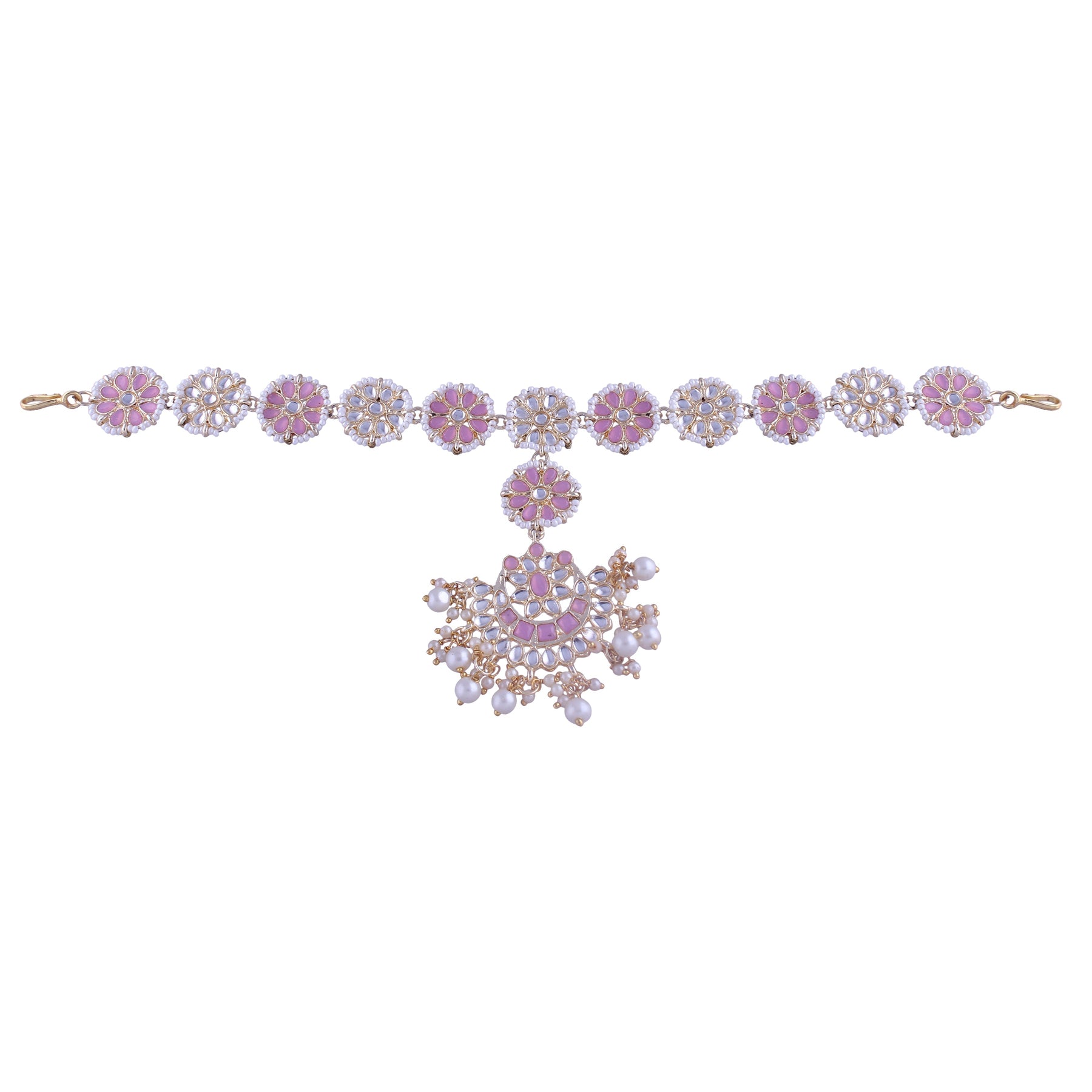 This Is A Stunning And Traditional Piece Of Jewelry That Showcases Intricate Craftsmanship And Luxurious Materials. The Piece Features A Floral Design That Is Inspired By The Traditional Rajasthani Style, Which Is Known For Its Bold And Intricate Motifs. The Base Material Of The Jewelry Is Gold-Plated, Which Adds A Lustrous And Rich Look To The Piece. The Gold Plating Also Ensures That The Piece Is Long-Lasting And Durable. The Floral Design Is Then Embellished With Kundan, A Type Of Traditional Indian Gemstone Setting Technique That Involves Setting Uncut Stones In A Frame Of Gold Plated. The Kundan Stones Used In This Piece Are Of High Quality And Add A Sparkling And Elegant Touch To The Overall Design. In Addition To The Kundan Stones, The Piece Is Also Studded With Pearls, Which Are Known For Their Classic And Timeless Beauty. The Pearls Used In This Piece Are Of High Quality And Have A Lustrous And Smooth Surface That Adds To The Overall Luxurious Look Of The Jewelry. Overall, This Piece Is A Beautiful And Traditional Addition To Any Jewelry Collection. Its Intricate Design, High-Quality Materials, And Attention To Detail Make It A True Work Of Art. Whether Worn For A Special Occasion Or As An Everyday Accessory, This Jewelry Is Sure To Make A Statement And Leave A Lasting Impression.