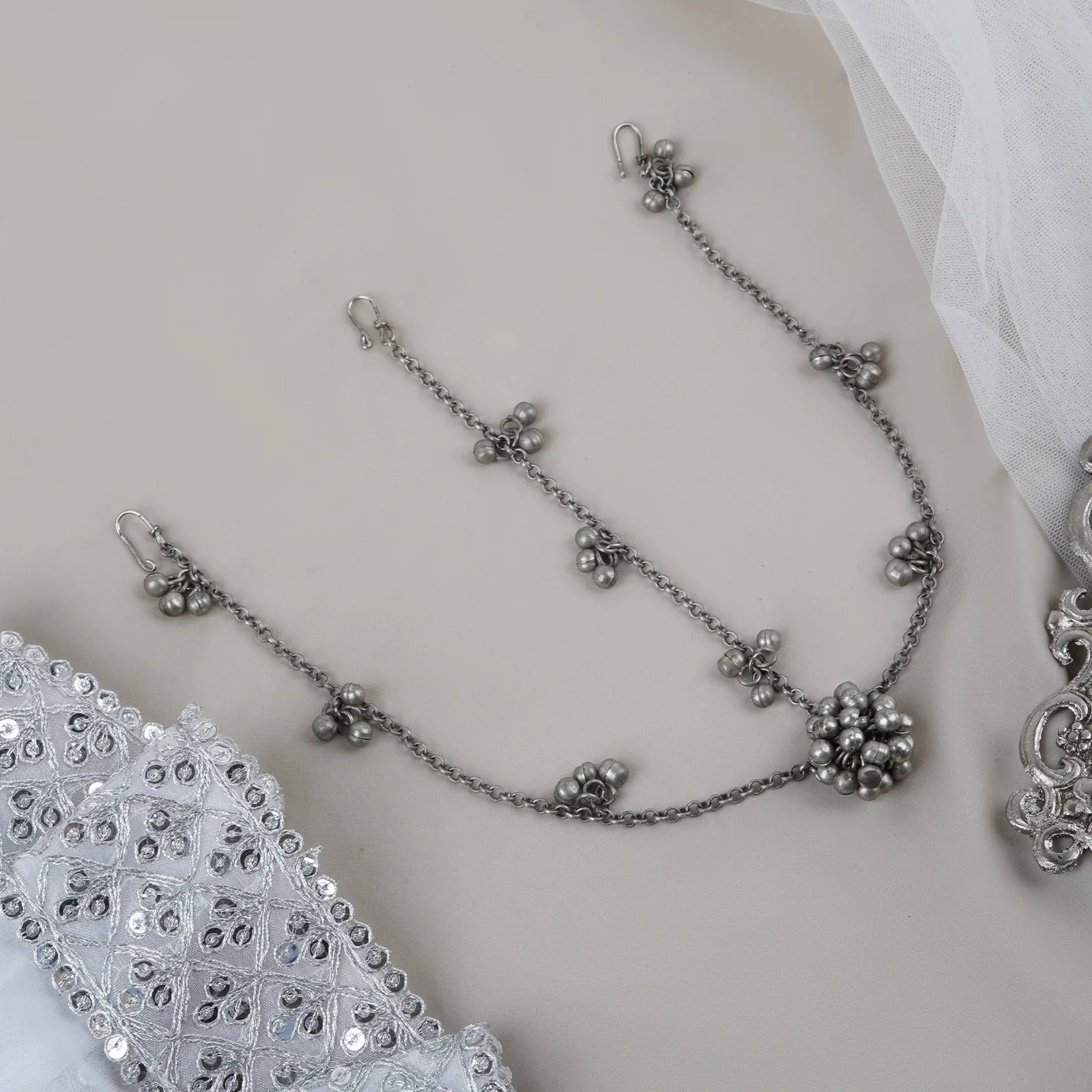 Elevate Your Style To Occasion-Worthy Elegance With The Silver Oxidised Ghungroo Maang Tikka By Vastrabhushan. Meticulously Handcrafted To Perfection, This Piece Features Intricate Detailing And Playful Ghungroo Accents That Add A Chic And Traditional Charm. Perfect For Enhancing Festive Outfits Or Adding A Radiant Touch To Special Occasions, This Maang Tikka Is Designed To Brighten Your Look And Make You Stand Out Effortlessly.