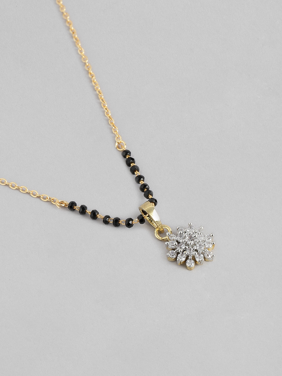 Women's Gold Plated American Diamond & Black Beaded Mangalsutra