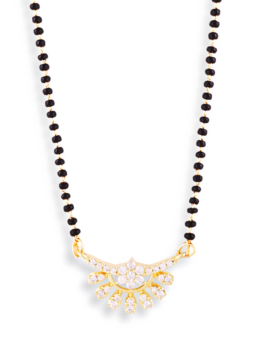Women's Gold Plated Black Beaded American Diamond Mangalsutra