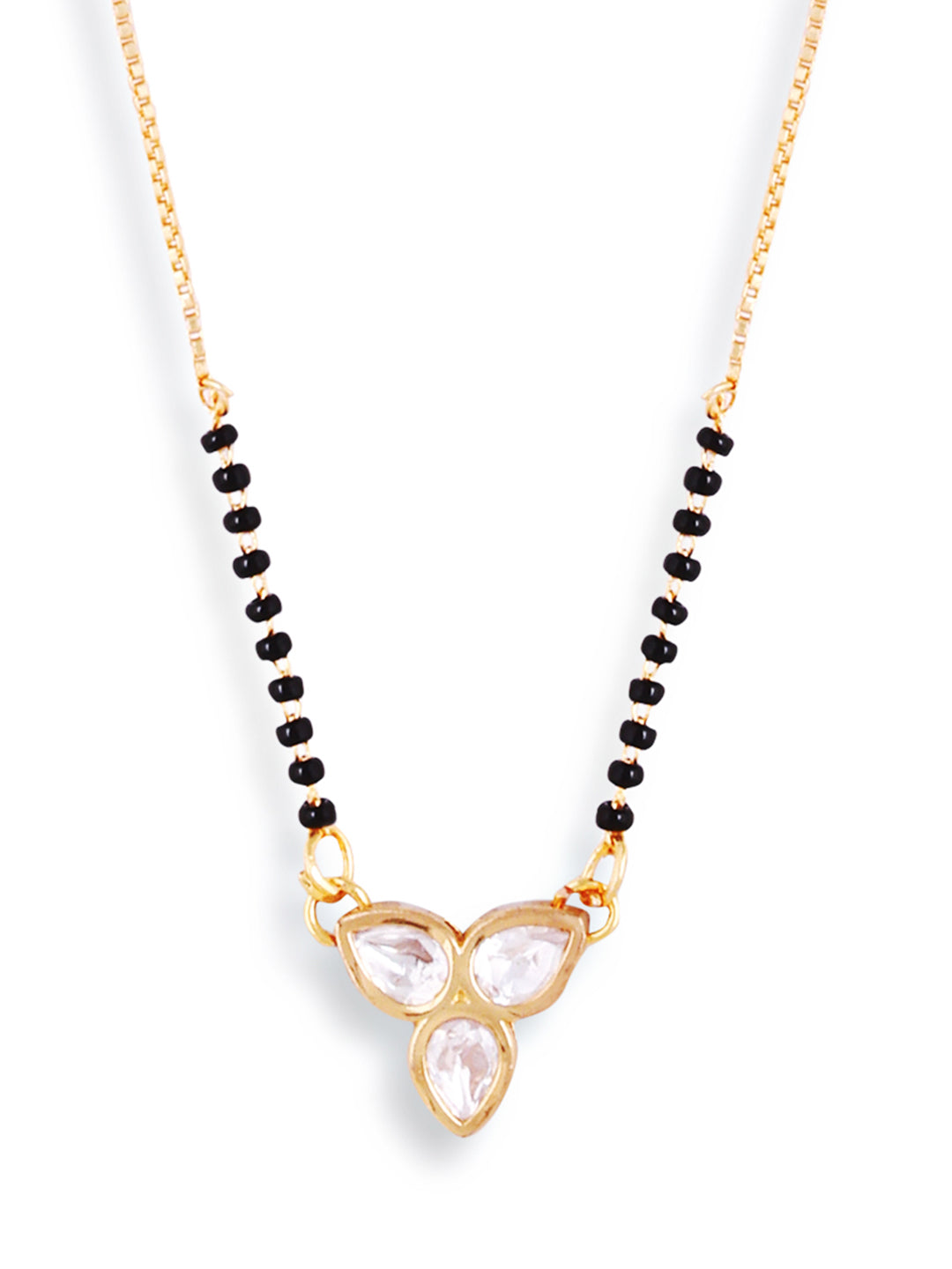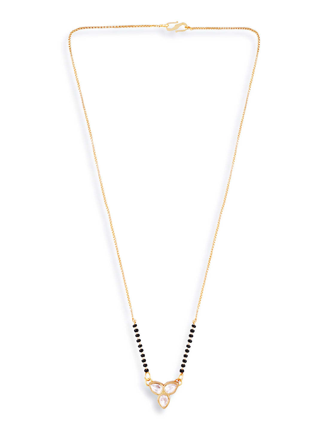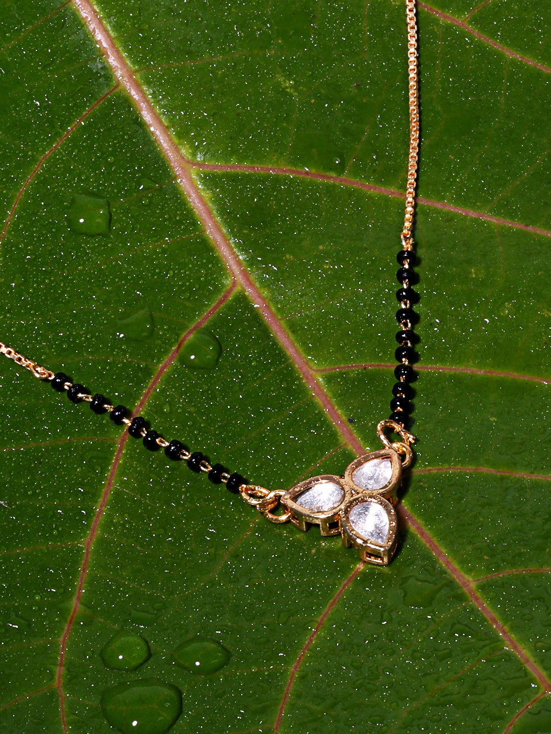 Women's Gold Plated Black Beaded Kundan Polki Diamond Mangalsutra
