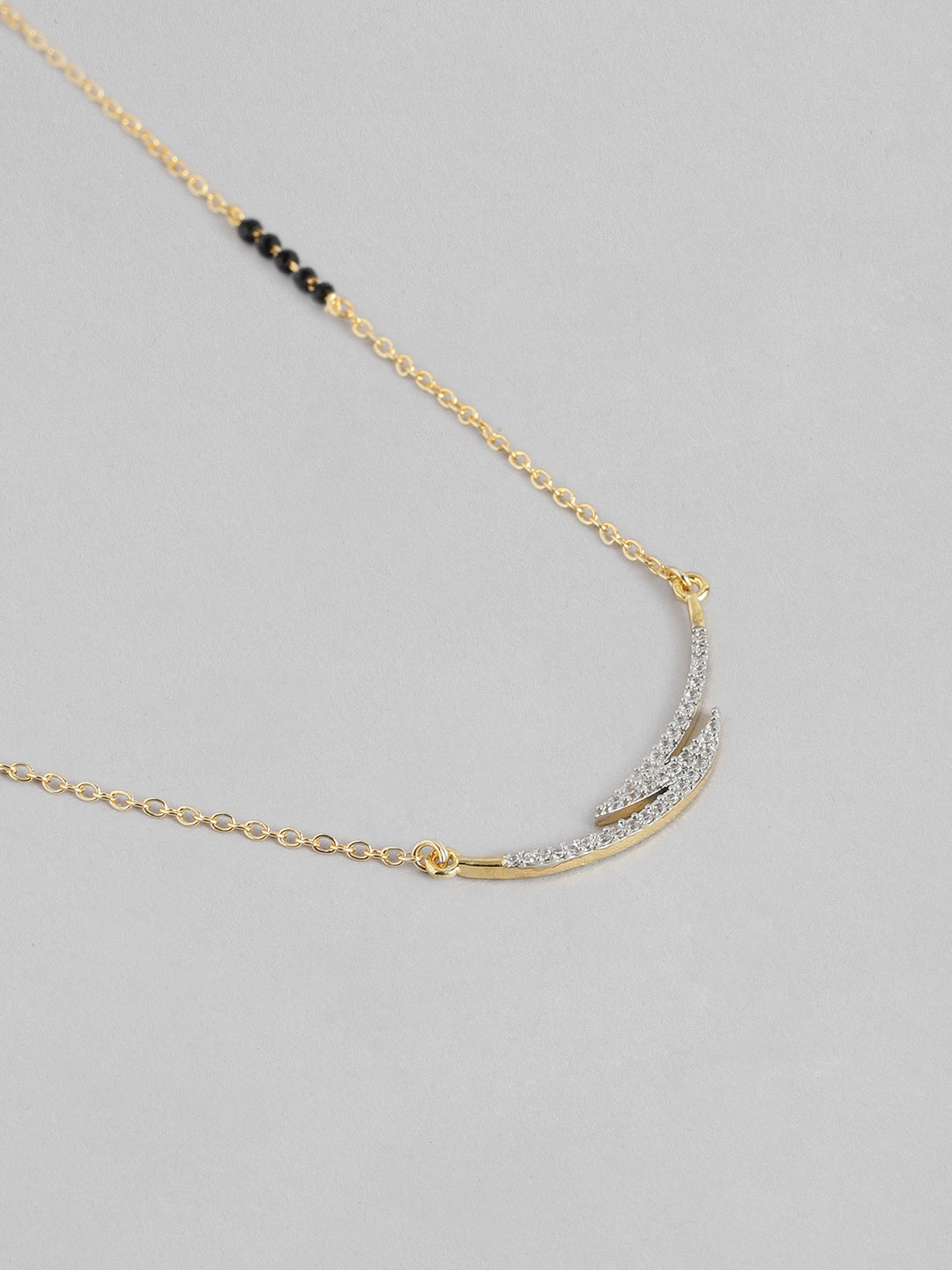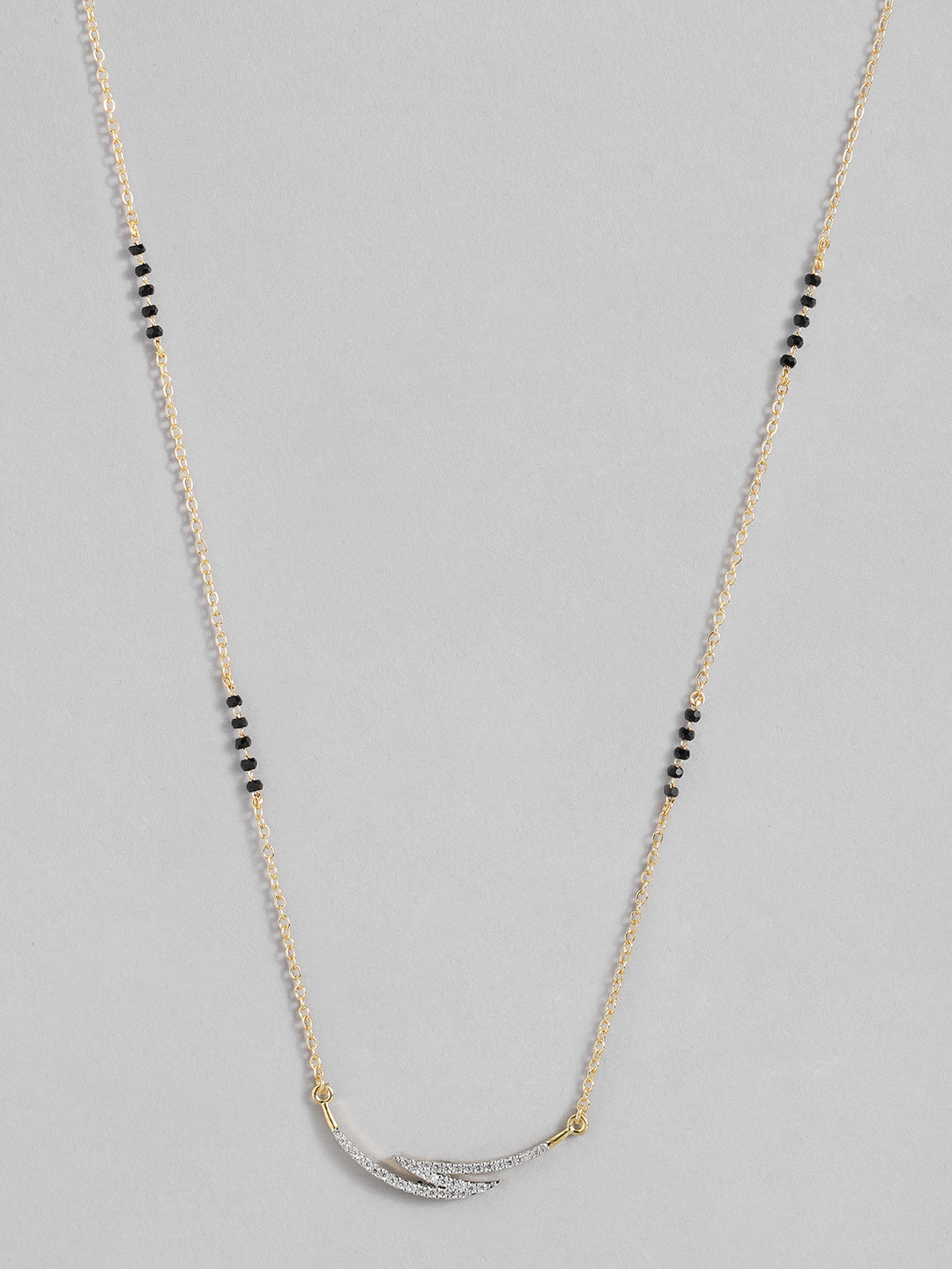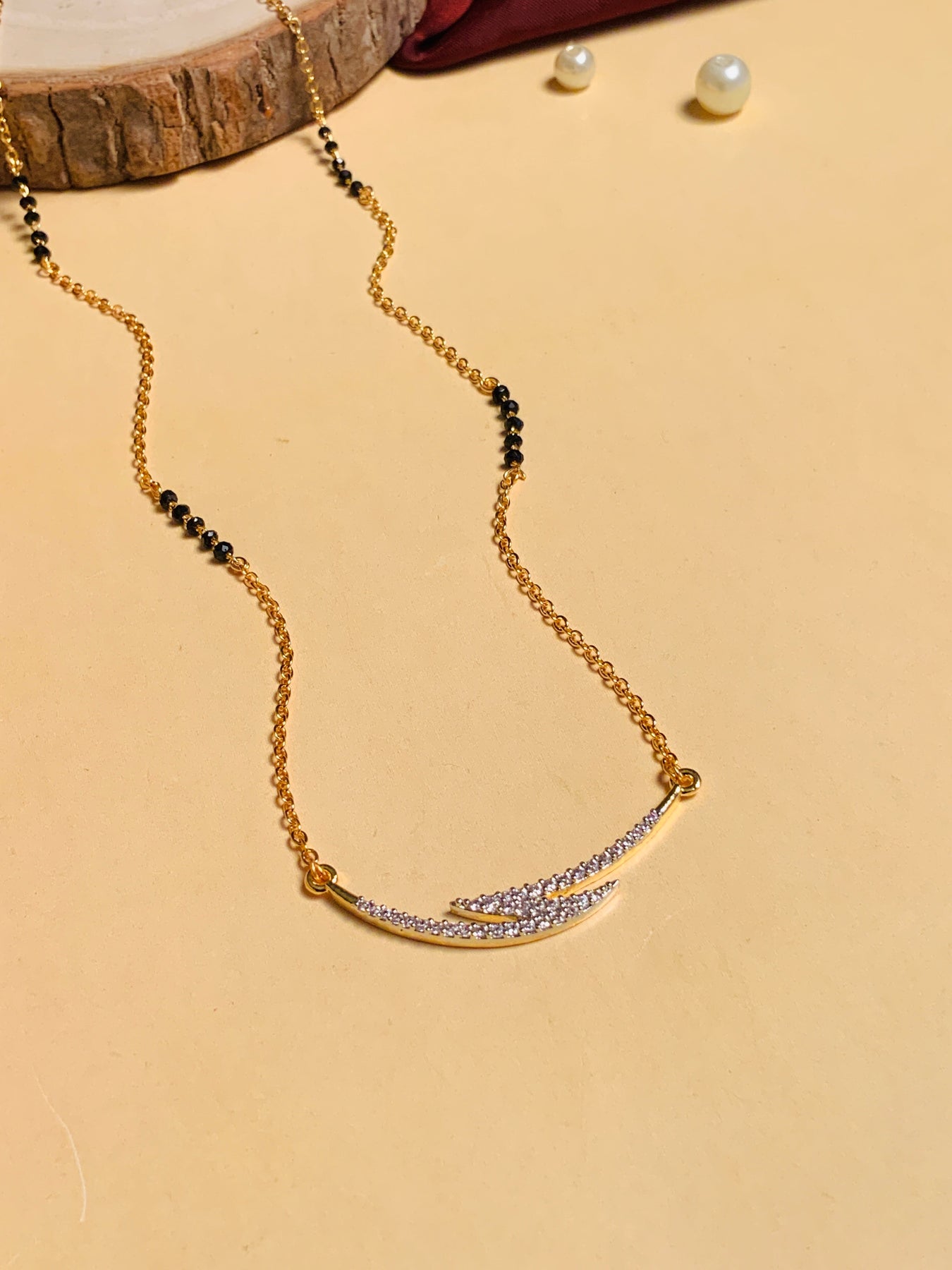 Women's Gold Plated American Diamond & Black Beaded Mangalsutra
