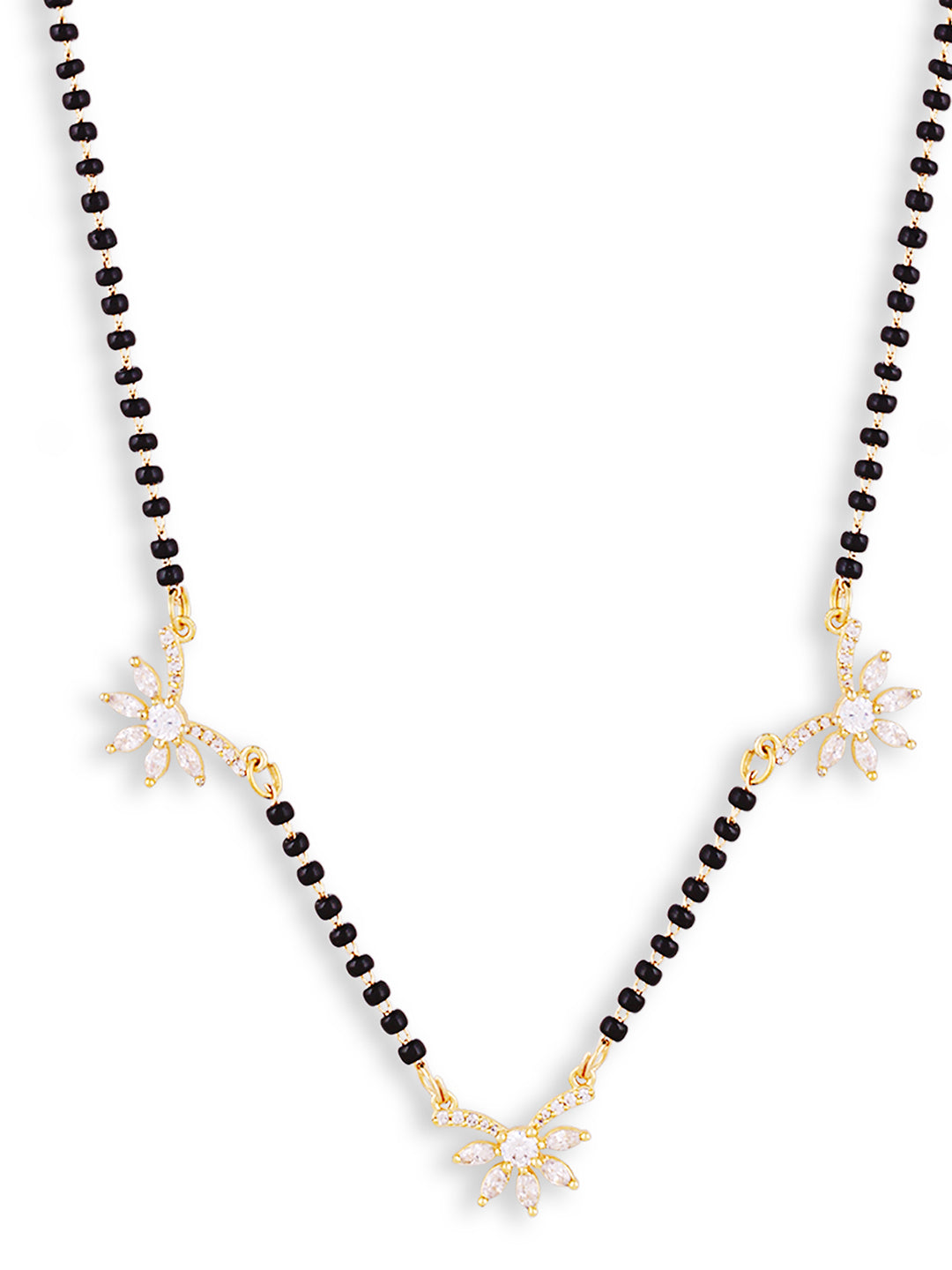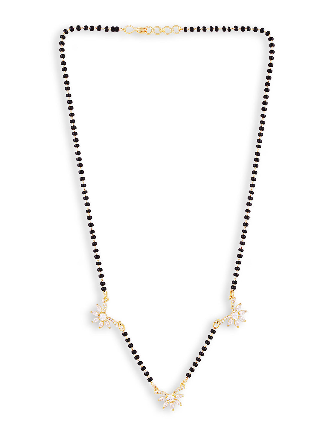 Women's Gold Plated Black Beaded American Diamond Mangalsutra