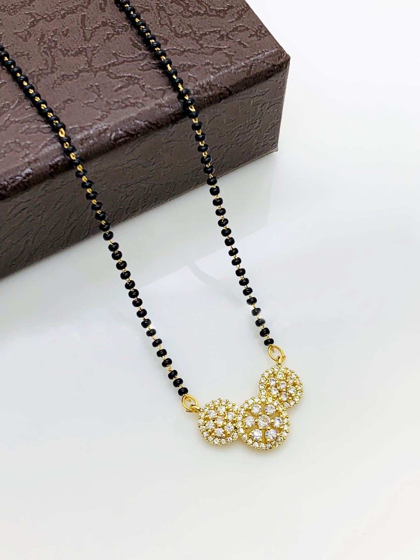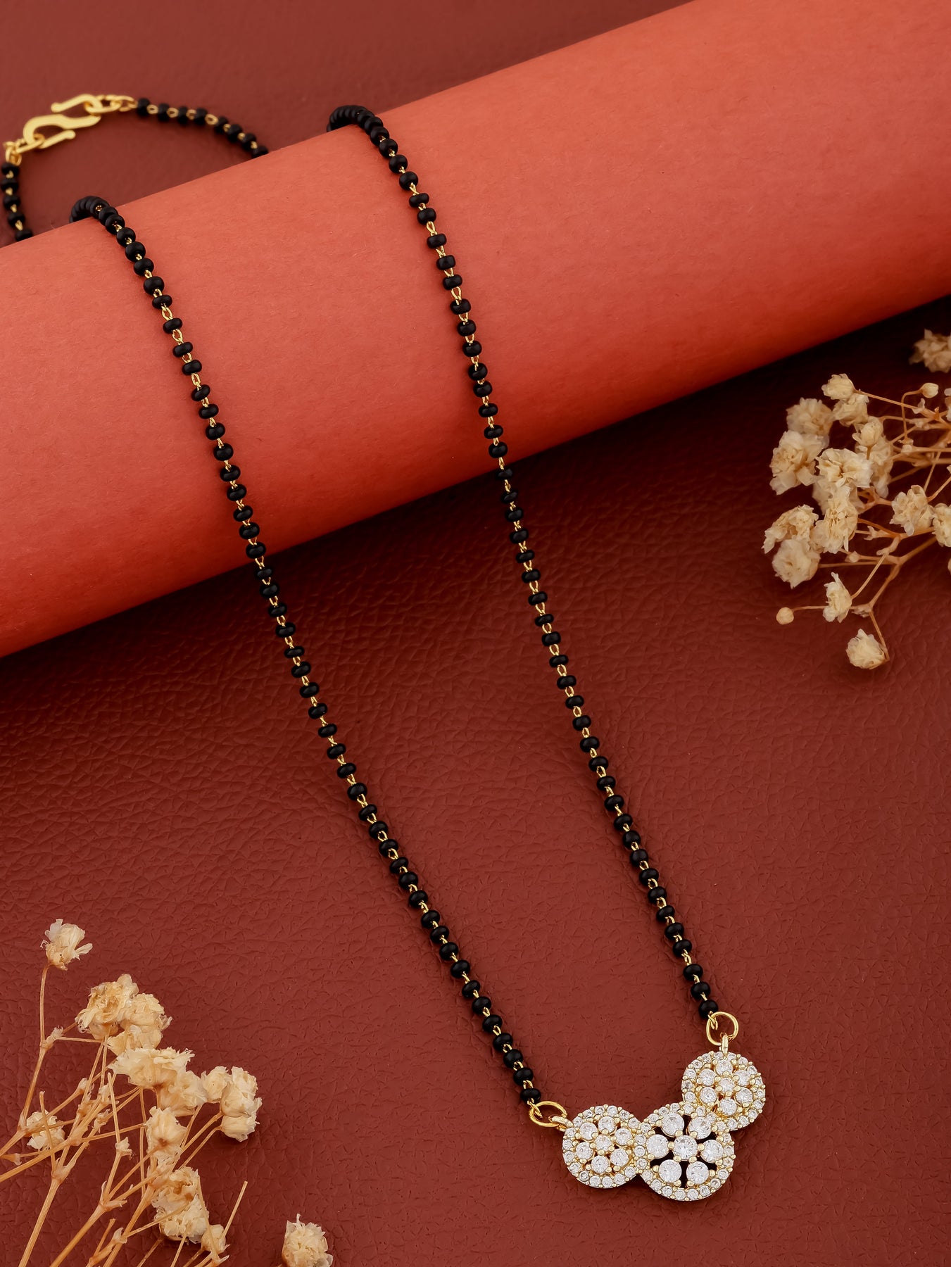 This Exquisite Mangalsutra Is A Perfect Blend Of Tradition And Modern Elegance. Designed For The Modern Indian Woman, It Features A Delicate Gold-Plated Chain Adorned With Classic Black Beads, A Cultural Symbol Of Love, Prosperity, And Marital Bliss. The Black Beads Are Spaced Evenly Along The Chain, Interspersed With Small Gold Accents For A Refined Touch.