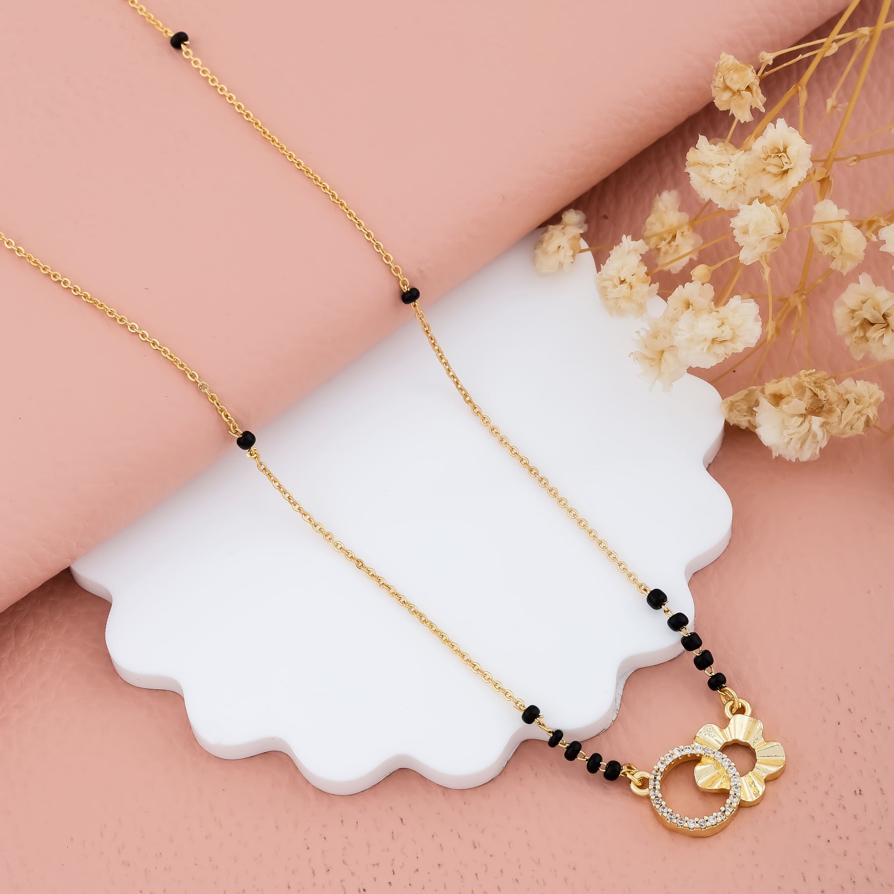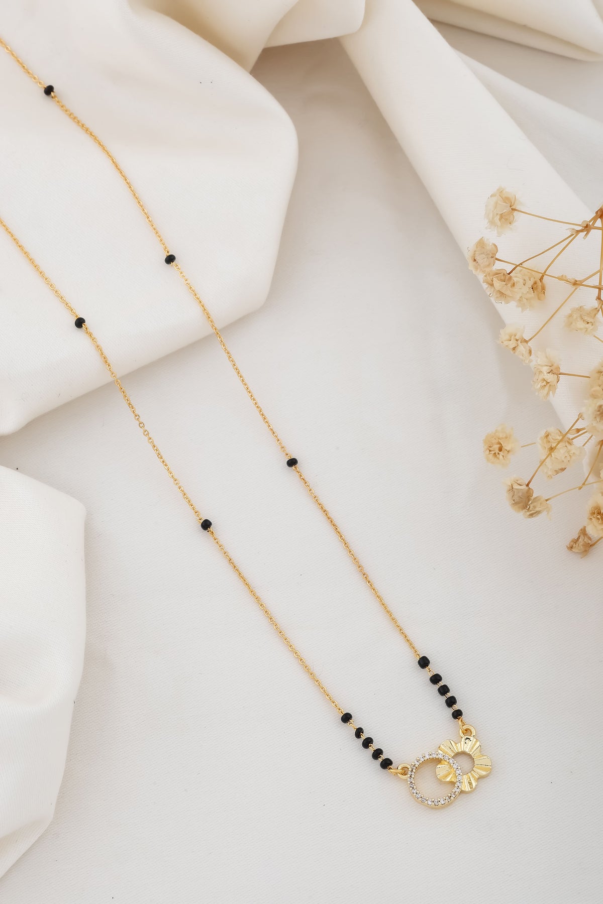 This Exquisite Mangalsutra Is A Perfect Blend Of Tradition And Modern Elegance. Designed For The Modern Indian Woman, It Features A Delicate Gold-Plated Chain Adorned With Classic Black Beads, A Cultural Symbol Of Love, Prosperity, And Marital Bliss. The Black Beads Are Spaced Evenly Along The Chain, Interspersed With Small Gold Accents For A Refined Touch.